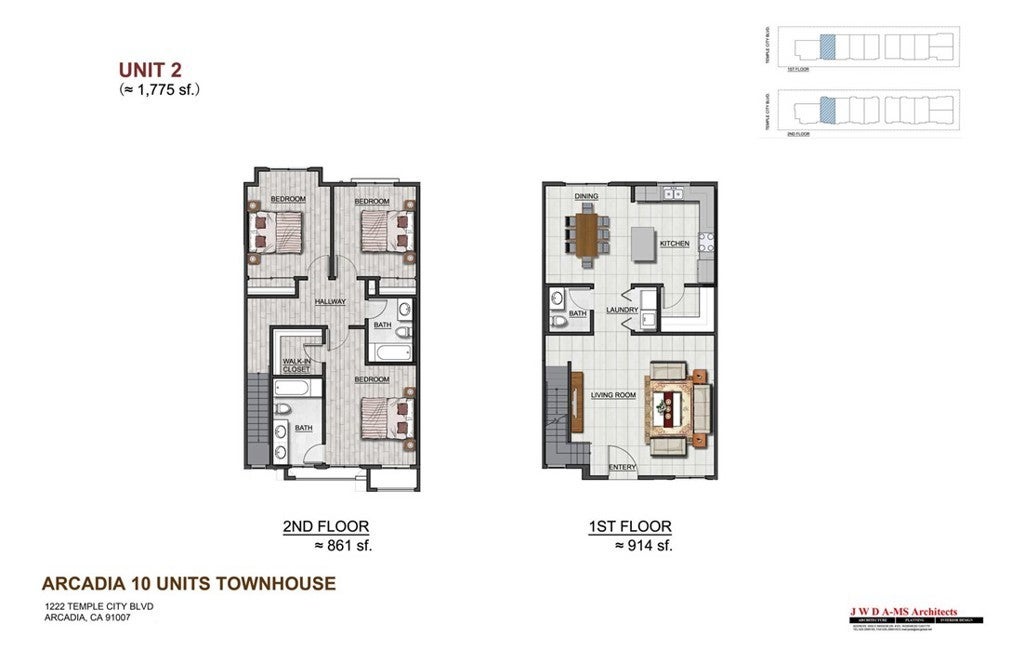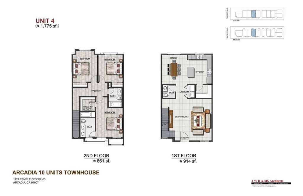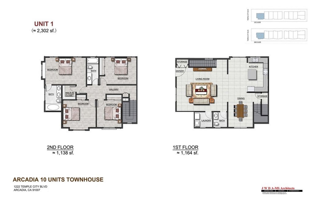 New Construction 5 Units modern design Town House in Arcadia! Great location! This property is located in the city center of Acadia, Close to one of the world's top ten racetracks, shopping malls, Huntington botanical garden, golf courses, banks, parks, Chinese and Western supermarkets, schools, libraries, etc. Quiet neighborhood, very convenient for a primary residence or vacation living. 1222 has 5 Units, total 9,443 sqft. Beautiful floor plans range from 1,757-2,320 square feet per unit. Also from 3 beds 2.5 baths to 4 beds 2.5 baths. Each Unit can be sold separately and has its own Lot#. With modern interior design and high-end materials from Europe, these townhouses are built by a team of exquisite craftsmen. There is shared elevator from the subterranean garage to ground level in a public area, also have electric car charging equipment in the Garage. This will be the best choice for your investment or residence! 1222# A: 2,320 sqft 4 Beds, 2.5 Baths 1222# B: 1,775 sqft 3 Beds, 2.5 Baths 1222# C: 1,757 sqft 3 Beds, 2.5 Baths 1222# D: 1,792 sqft 3 Beds, 2.5 Baths 1222# E: 1,799 sqft 3 Beds, 2.5 Baths