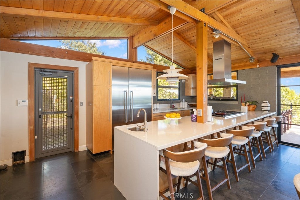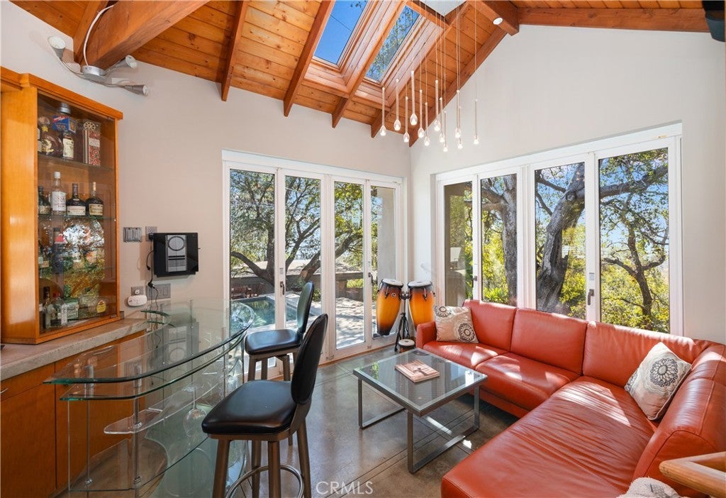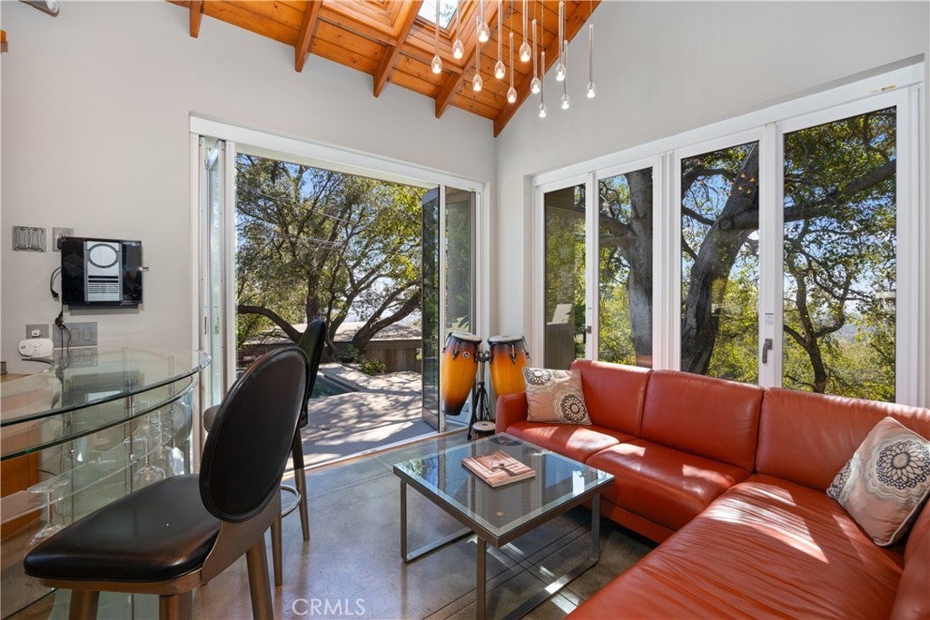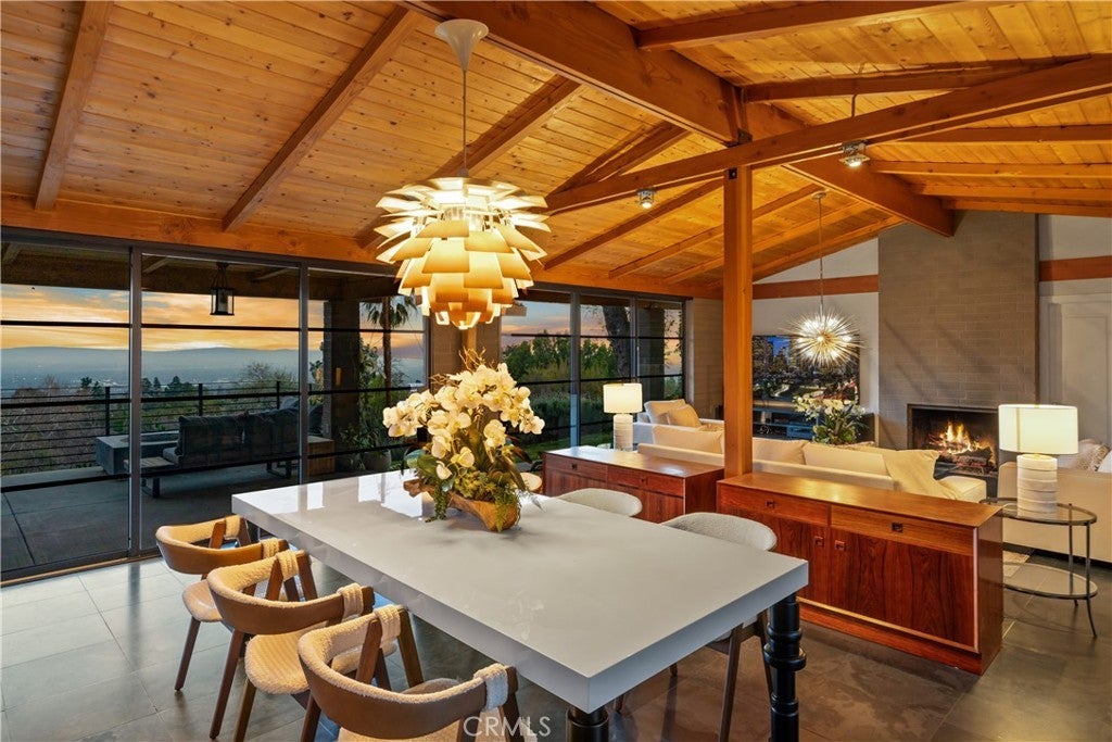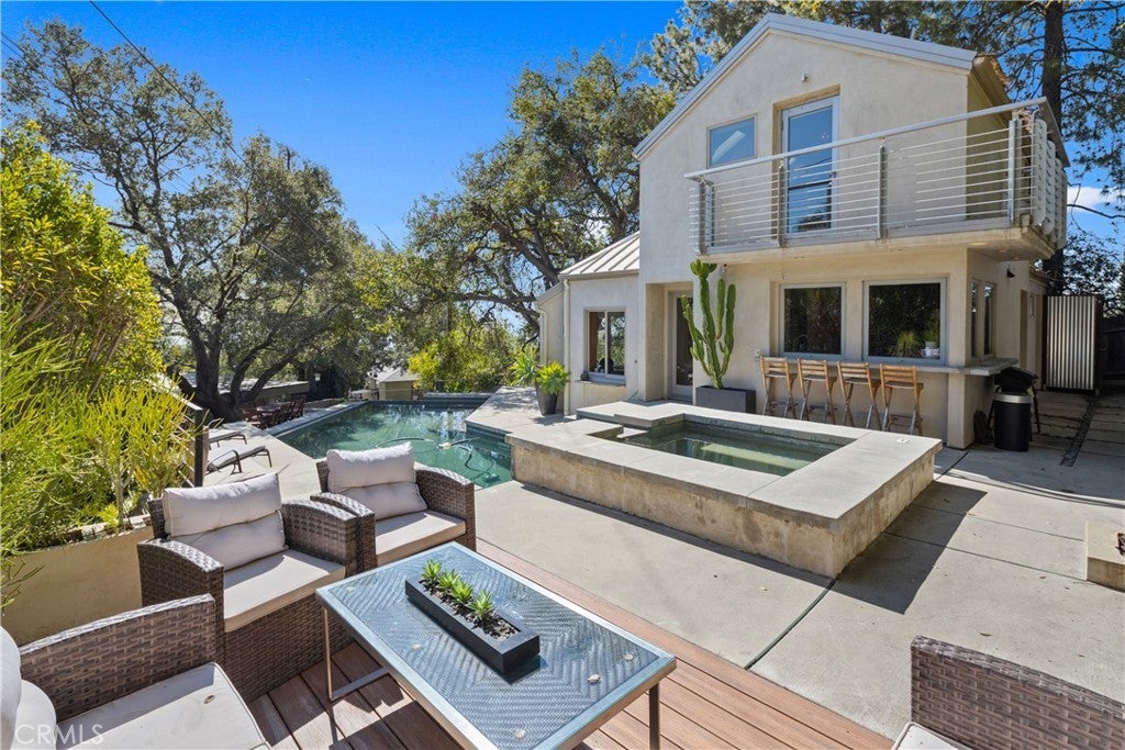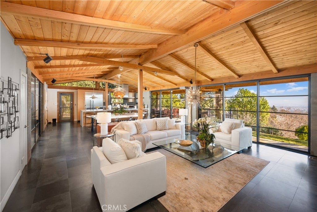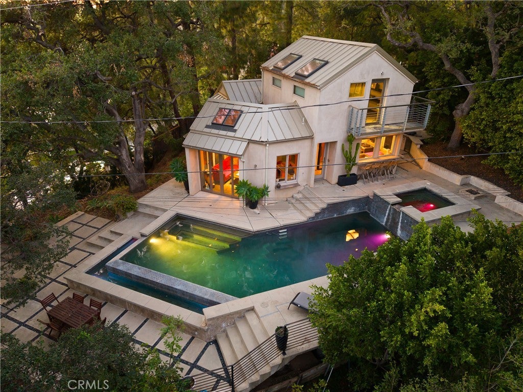 Nestled in the charming and highly sought-after community of Sierra Madre, this exceptional property offers two sophisticated mid-century modern homes on a sprawling lot with breathtaking panoramic views. Designed with architectural elegance and thoughtful details, both residences provide a unique blend of privacy, luxury, and seamless indoor-outdoor living. The primary home is a stunning 3-bedroom, 2-bath retreat that captures the beauty of its surroundings with expansive windows and steel-framed doors that open to a spectacular outdoor balcony. From this vantage point, enjoy sweeping city light views that transform the landscape into a mesmerizing display at night. The spacious family room, dining area, and kitchen are designed for both comfort and entertaining, allowing for a seamless flow of space bathed in natural light. The second home is a beautifully designed 1-bedroom, 1-bath residence that feels like a private sanctuary. With a full kitchen, a generous upstairs loft, and striking architectural details, this detached home is completely gated and offers the feel of an artist’s retreat. Multiple windows and retractable doors bring in an abundance of light, enhancing the connection to the outdoors. The infinity-edge pool adds a resort-like ambiance, making this space a true escape from the everyday. The property also features a two-car carport with ample storage areas, ensuring functionality without compromising design. Set on an expansive lot, this unique offering is a rare opportunity to own a one-of-a-kind property that embraces the beauty of Sierra Madre while providing two independent yet harmonious living spaces. Whether you’re looking for a multi-generational living setup, a guest home, or an inspiring creative space, this estate delivers in every aspect.