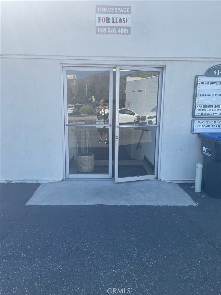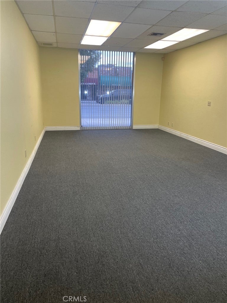 This is a one level two room, 544 square foot office in the heart of Arcadia downtown district. There is a secretarial/reception office with it's own entrance at the north entry of the office and a large office space behind it which is served by an additional single door entrance from the secretarial office. The door allows both offices to be separated and private when needed. Access to the large office is also possible through a separate door entry off the west side hallway. The building is a one level concrete building with a 90 foot frontage on Huntington Drive providing a great presence for your business and clients. The office has carpeting flooring and a very large floor to ceiling window on the south wall providing a streetscape of Huntington Drive. Lots of natural light and high ceilings make the space a very comfortable office. There is a large parking lot at the rear of the property exclusively for tenants and their clients. The abundant parking on Huntington Drive is also perfect for easy entrance and exit for your clients. Adjacent to the north is City free parking as well. The post office is just across from the alley, as well as a new mixed use project under construction and two new restaurants across the street. The Goldline Station is very close. Two double door entryways in the front and the rear of the building serve all access. A large separate mens and women's bathroom is provided along with inner mailboxes and tenant directories on the building. Most tenants are or have been very long term users because the quietness, privacy and building standing in Arcadia. The building also affords tenants the opportunity to be involved in City Holiday sponsored events such as Fourth of July, Halloween etc. Tenant pays utilities.