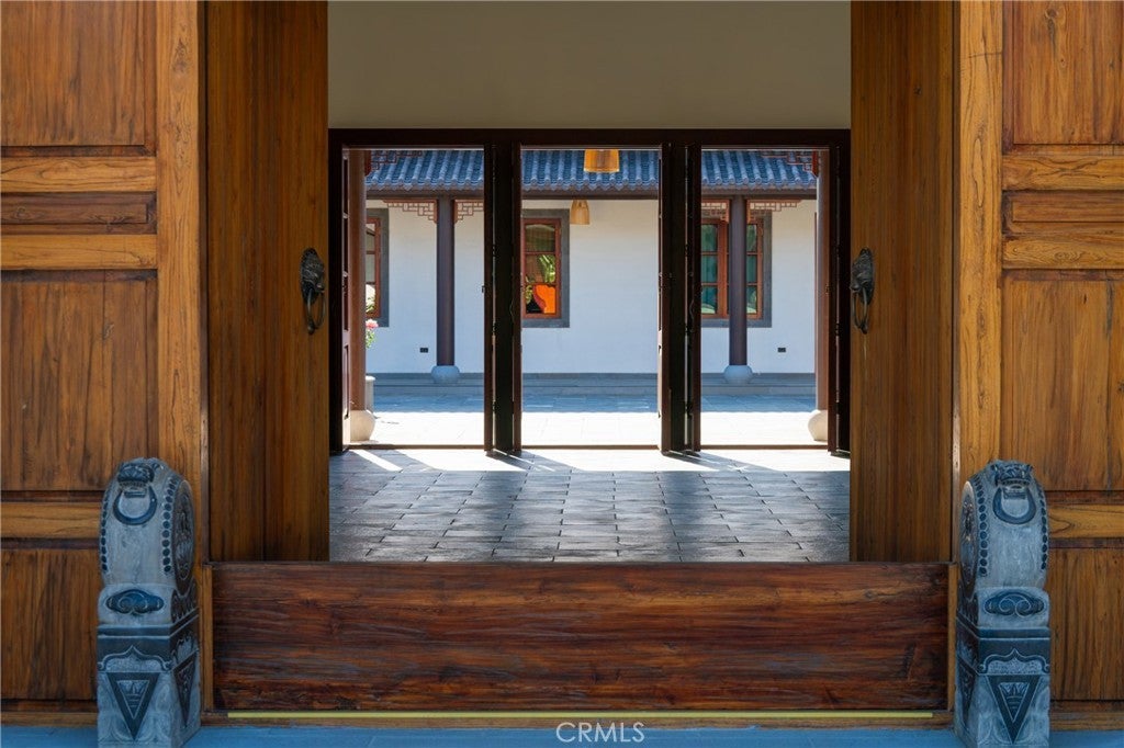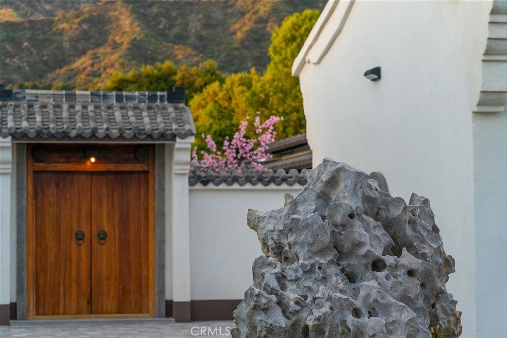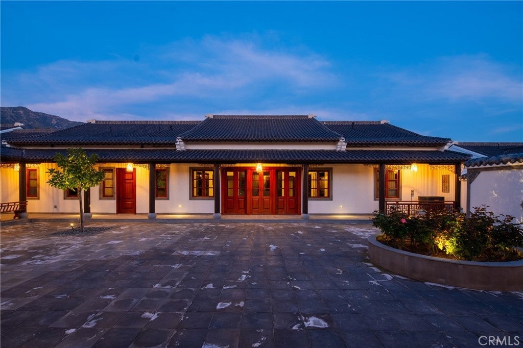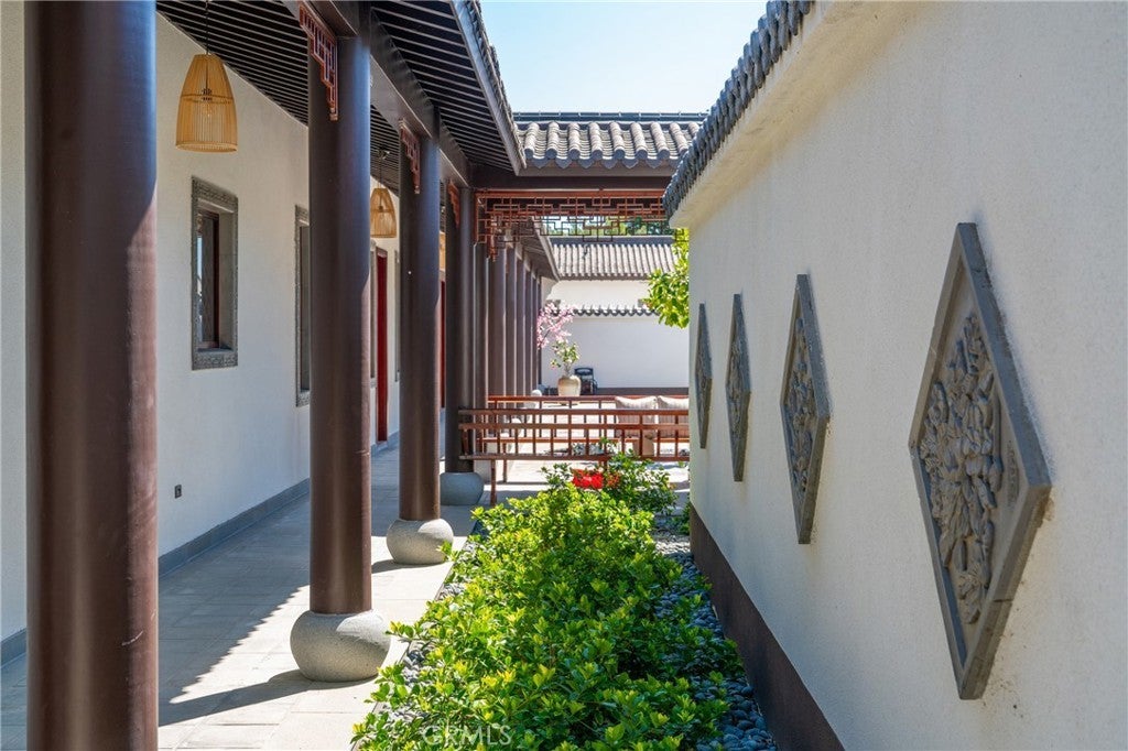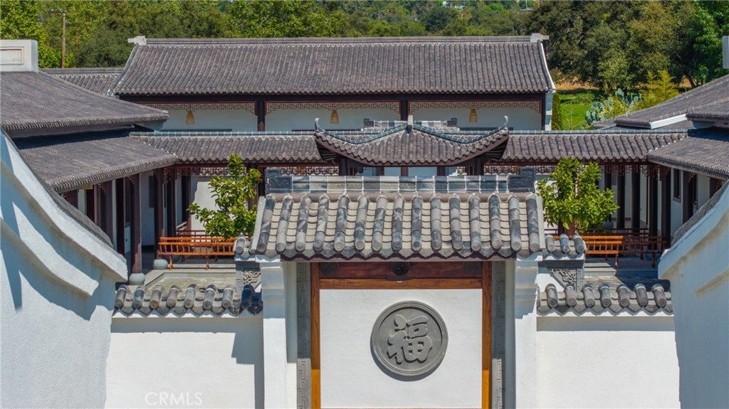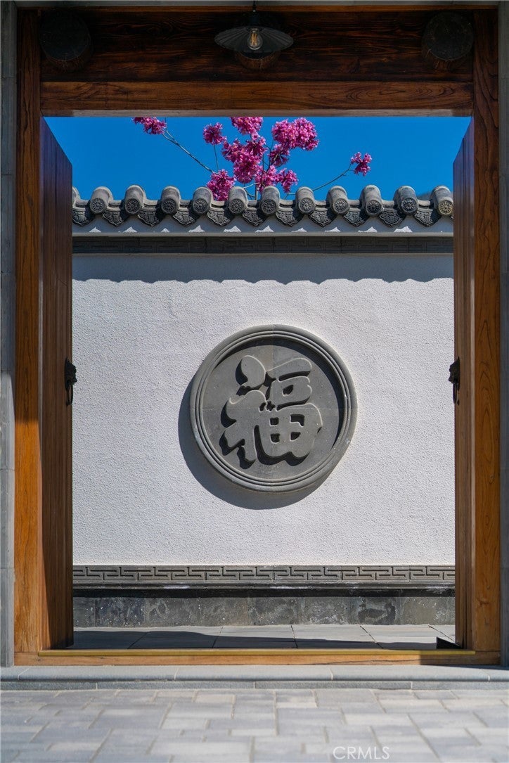 Located in Bradbury’s most prestigious gated enclave, this extraordinary estate spans approximately 4.45 acres with over 17,000 square feet of living space. Inspired by Suzhou Garden aesthetics and traditional Beijing courtyard design, the residence was crafted over eight years in collaboration with the team behind the Huntington Library’s celebrated Chinese Garden, Liu Fang Yuan. The result is a seamless blend of cultural artistry and contemporary comfort, showcasing dark-fired brick flooring, layered gray clay roof tiles, flying eaves, intricate brick carvings, and openwork window screens. The estate follows a traditional three-courtyard configuration across four separate structures, offering a harmonious balance of space, privacy, and functionality. The First Courtyard centers around a symbolic Taihu “Longevity Stone,” with a formal entry that welcomes with symmetry and serenity. The East and West Wings each feature two bedrooms, two bathrooms, a full kitchen, and a private garden—ideal for multigenerational living or guest accommodations. The Second Courtyard, the heart of the estate, includes upturned eaves, pavilions, shaded walkways, and a wraparound veranda. A sculpted screen wall engraved with the Chinese character for “fortune” serves as a symbolic focal point. The expansive East Hall, with 20-foot ceilings and over 1,100 square feet of open space, accommodates grand entertaining, cultural events, or private gatherings. Additional features include tea rooms, lounge areas, a 10-by-82-foot indoor heated pool, and an eight-car garage with EV charging. The Third Courtyard, positioned on a gentle rise, embodies tranquility and prominence, with a serene study, spacious primary suite, walk-in dressing room, and luxurious bath. Openwork screens and carefully placed windows filter natural light throughout, creating a peaceful, contemplative atmosphere. The gardens evoke Suzhou’s poetic landscapes with Taihu stones, an arche Bluestone bridge, and a bubbling spring reminiscent of Jinan’s Baotu Spring. To the south, the architecture curves in homage to Suzhou’s Jinji Lake. Hidden within the estate is a 30.8 kW commercial-grade solar power system, supporting sustainability without compromising its timeless elegance. This architectural heirloom offers unparalleled privacy, master craftsmanship, and cultural depth—truly one of the most significant residences in California.
