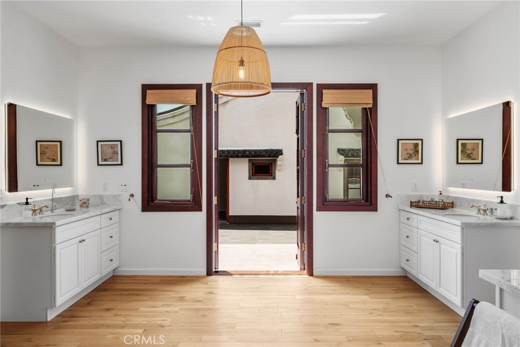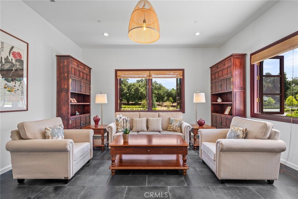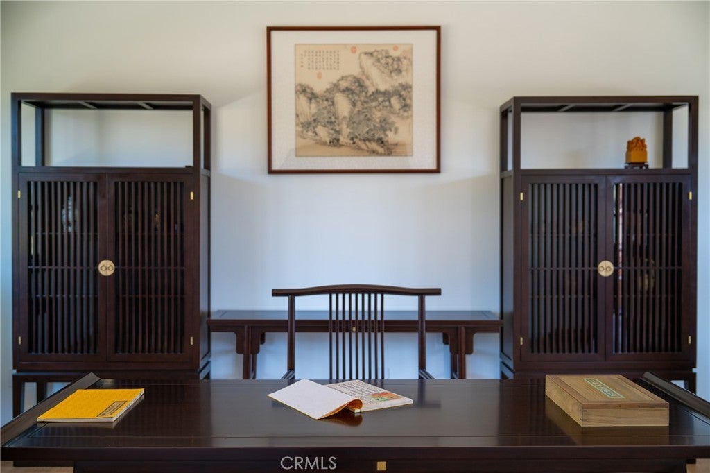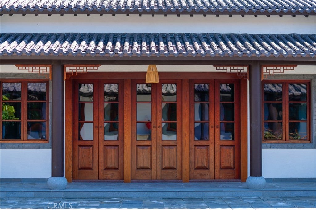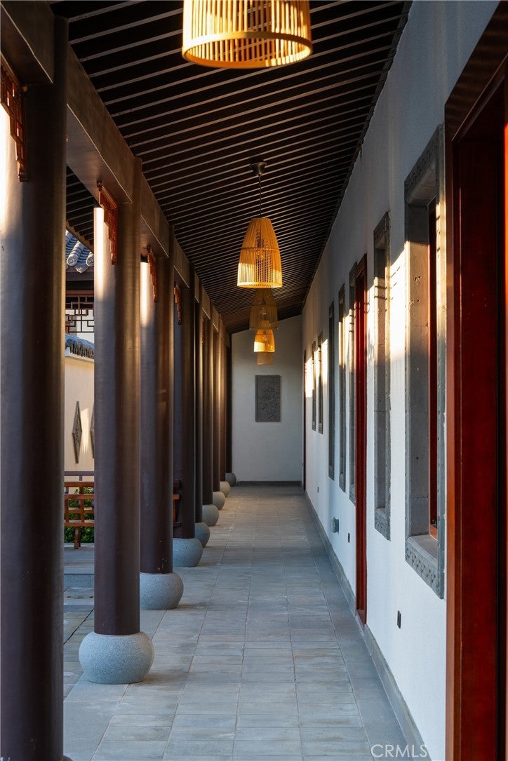 Located in Bradbury’s most prestigious gated enclave, this extraordinary estate spans approximately 4.45 acres with over 17,000 square feet of living space. Inspired by Suzhou Garden aesthetics and traditional Beijing courtyard design, the residence was crafted over eight years in collaboration with the team behind the Huntington Library’s celebrated Chinese Garden, Liu Fang Yuan. The result is a seamless blend of cultural artistry and contemporary comfort, showcasing dark-fired brick flooring, layered gray clay roof tiles, flying eaves, intricate brick carvings, and openwork window screens. The estate follows a traditional three-courtyard configuration across four separate structures, offering a harmonious balance of space, privacy, and functionality. The First Courtyard centers around a symbolic Taihu “Longevity Stone,” with a formal entry that welcomes with symmetry and serenity. The East and West Wings each feature two bedrooms, two bathrooms, a full kitchen, and a private garden—ideal for multigenerational living or guest accommodations. The Second Courtyard, the heart of the estate, includes upturned eaves, pavilions, shaded walkways, and a wraparound veranda. A sculpted screen wall engraved with the Chinese character for “fortune” serves as a symbolic focal point. The expansive East Hall, with 20-foot ceilings and over 1,100 square feet of open space, accommodates grand entertaining, cultural events, or private gatherings. Additional features include tea rooms, lounge areas, a 10-by-82-foot indoor heated pool, and an eight-car garage with EV charging. The Third Courtyard, positioned on a gentle rise, embodies tranquility and prominence, with a serene study, spacious primary suite, walk-in dressing room, and luxurious bath. Openwork screens and carefully placed windows filter natural light throughout, creating a peaceful, contemplative atmosphere. The gardens evoke Suzhou’s poetic landscapes with Taihu stones, an arche Bluestone bridge, and a bubbling spring reminiscent of Jinan’s Baotu Spring. To the south, the architecture curves in homage to Suzhou’s Jinji Lake. Hidden within the estate is a 30.8 kW commercial-grade solar power system, supporting sustainability without compromising its timeless elegance. This architectural heirloom offers unparalleled privacy, master craftsmanship, and cultural depth—truly one of the most significant residences in California.