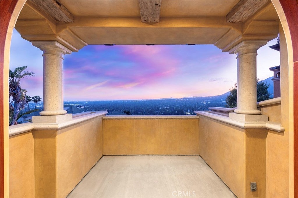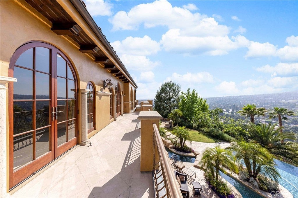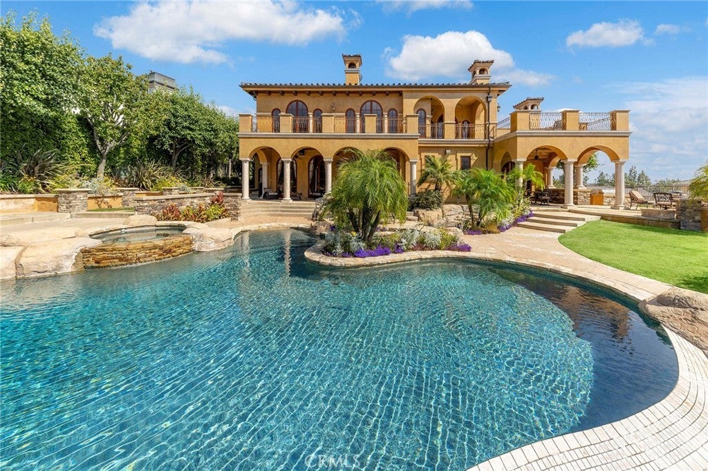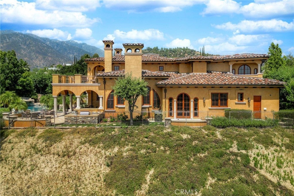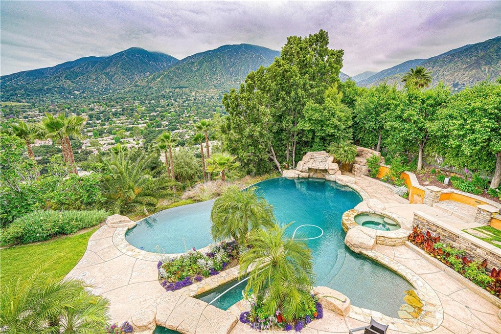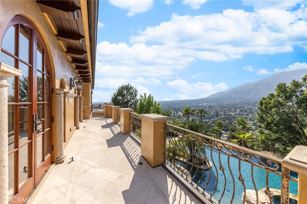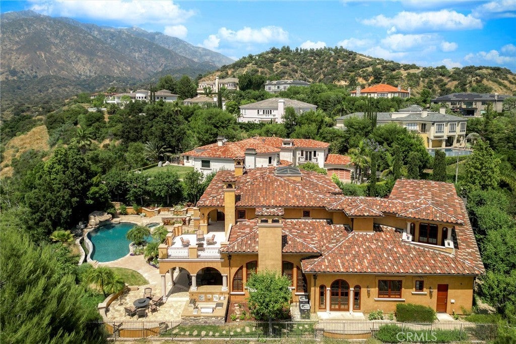 Welcome to an exceptional opportunity to own a custom estate in the exclusive Whispering Pines Summit—a premier gated community in Arcadia, offering 24-hour security, serene mountain surroundings, and access to award-winning schools. With only 49 luxury residences, this neighborhood is designed for the most discerning homeowners seeking privacy, elegance, and prestige. Positioned on a generous 1.02-acre lot (44,431 sq ft), this Mediterranean Revival estate was thoughtfully built in 2007 and spans 6,526 sq ft of refined living space. Gated and privately hedged, a charming Saltillo-tiled veranda leads to an impressive entry, unveiling a home rich in character and quality. The thoughtfully designed floor plan features 5 en-suite bedrooms and a versatile den, with ideal separation of space for multi-generational living or guests. On the main level, you’ll find a private guest suite, a spacious den area, a second en-suite bedroom with a dedicated office, providing flexibility for in-home work or extended family stays. Upstairs, the primary master suite offers a retreat-like experience with panoramic 360-degree mountain and city views from its private balcony, and is enhanced by a built-in Miele coffee station for the ultimate luxury morning routine. An additional corner suite bedroom with master-size proportions and a third en-suite bedroom complete the upper level accommodations. Crafted with premium Texas Oak wood throughout, the home exudes timeless sophistication. Entertain with ease in the formal and informal living areas, a dedicated cigar room, entertainment lounge, gourmet kitchen with Wolf appliances, separate wok kitchen, and a 24-hour temperature-controlled wine cellar. A private elevator ensures easy access to all levels—ideal for seniors or those seeking convenience. Outside, the resort-style backyard boasts an infinity-edge pool overlooking the scenic hills of Los Angeles—perfect for relaxation or entertaining under the stars. Additional features include a whole-house water softening system, surround sound speakers, intelligent lighting controls, and a four-car garage. This exquisite residence offers an unmatched combination of privacy, luxury, and elegance—perfectly suited for those seeking the ultimate Arcadia lifestyle.