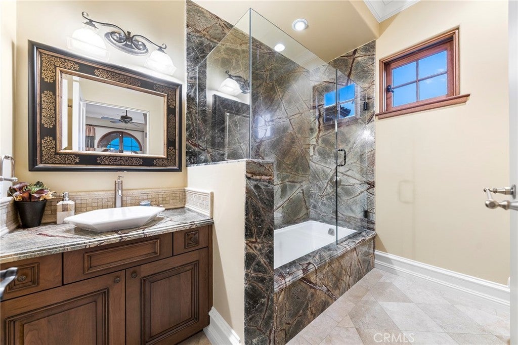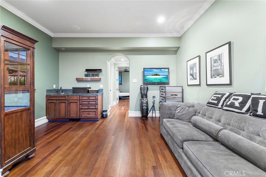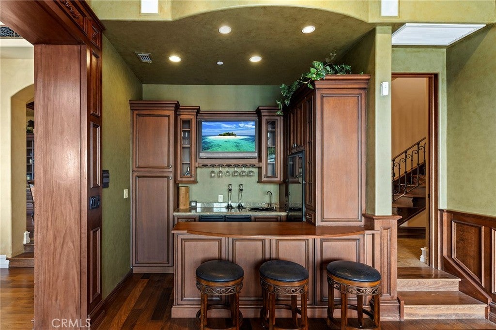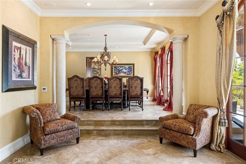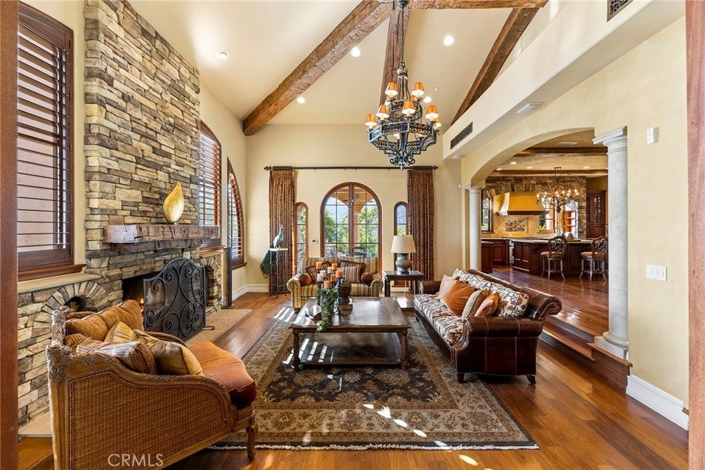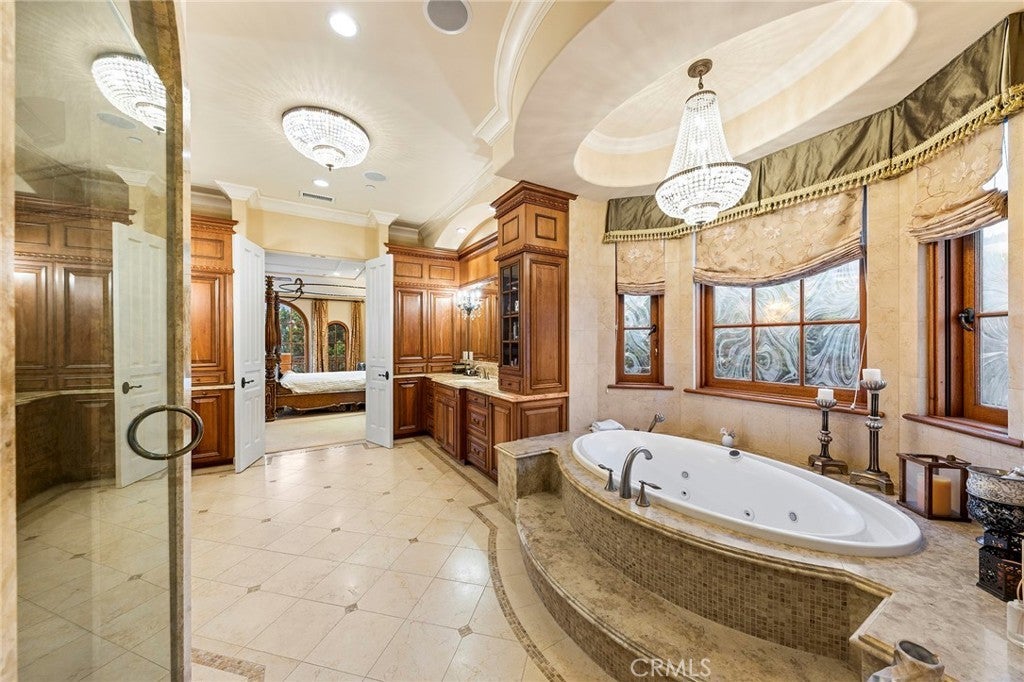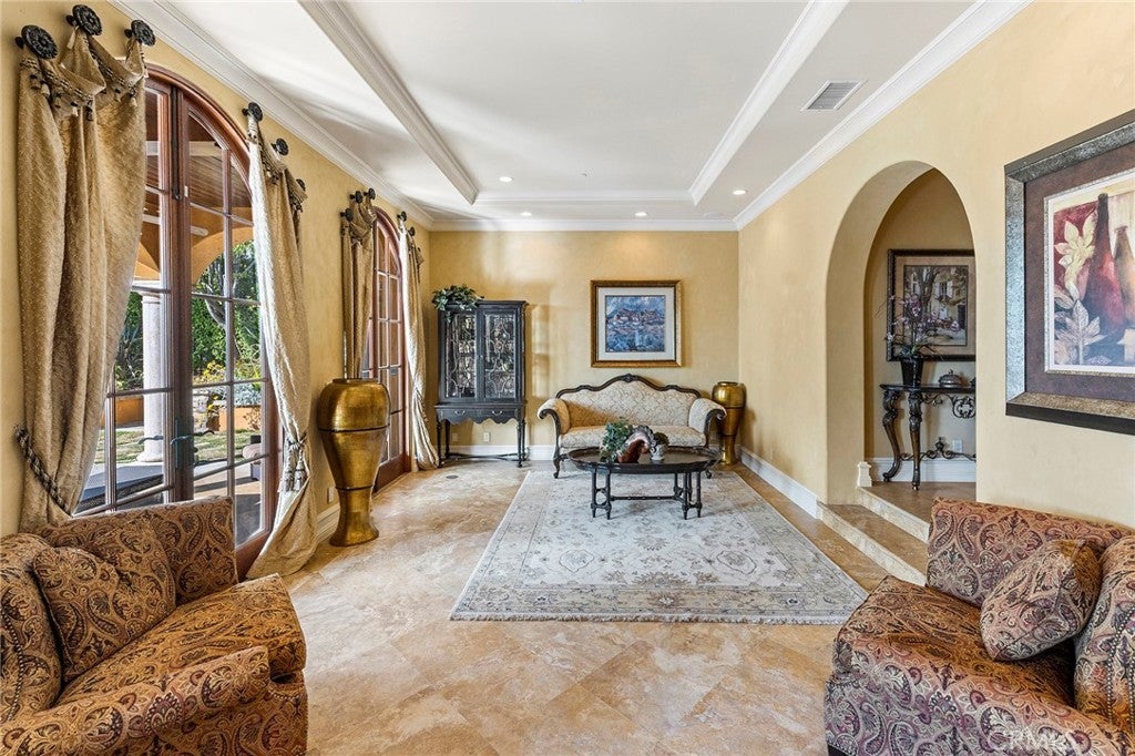 Welcome to an exceptional opportunity to own a custom estate in the exclusive Whispering Pines Summit—a premier gated community in Arcadia, offering 24-hour security, serene mountain surroundings, and access to award-winning schools. With only 49 luxury residences, this neighborhood is designed for the most discerning homeowners seeking privacy, elegance, and prestige. Positioned on a generous 1.02-acre lot (44,431 sq ft), this Mediterranean Revival estate was thoughtfully built in 2007 and spans 6,526 sq ft of refined living space. Gated and privately hedged, a charming Saltillo-tiled veranda leads to an impressive entry, unveiling a home rich in character and quality. The thoughtfully designed floor plan features 5 en-suite bedrooms and a versatile den, with ideal separation of space for multi-generational living or guests. On the main level, you’ll find a private guest suite, a spacious den area, a second en-suite bedroom with a dedicated office, providing flexibility for in-home work or extended family stays. Upstairs, the primary master suite offers a retreat-like experience with panoramic 360-degree mountain and city views from its private balcony, and is enhanced by a built-in Miele coffee station for the ultimate luxury morning routine. An additional corner suite bedroom with master-size proportions and a third en-suite bedroom complete the upper level accommodations. Crafted with premium Texas Oak wood throughout, the home exudes timeless sophistication. Entertain with ease in the formal and informal living areas, a dedicated cigar room, entertainment lounge, gourmet kitchen with Wolf appliances, separate wok kitchen, and a 24-hour temperature-controlled wine cellar. A private elevator ensures easy access to all levels—ideal for seniors or those seeking convenience. Outside, the resort-style backyard boasts an infinity-edge pool overlooking the scenic hills of Los Angeles—perfect for relaxation or entertaining under the stars. Additional features include a whole-house water softening system, surround sound speakers, intelligent lighting controls, and a four-car garage. This exquisite residence offers an unmatched combination of privacy, luxury, and elegance—perfectly suited for those seeking the ultimate Arcadia lifestyle.