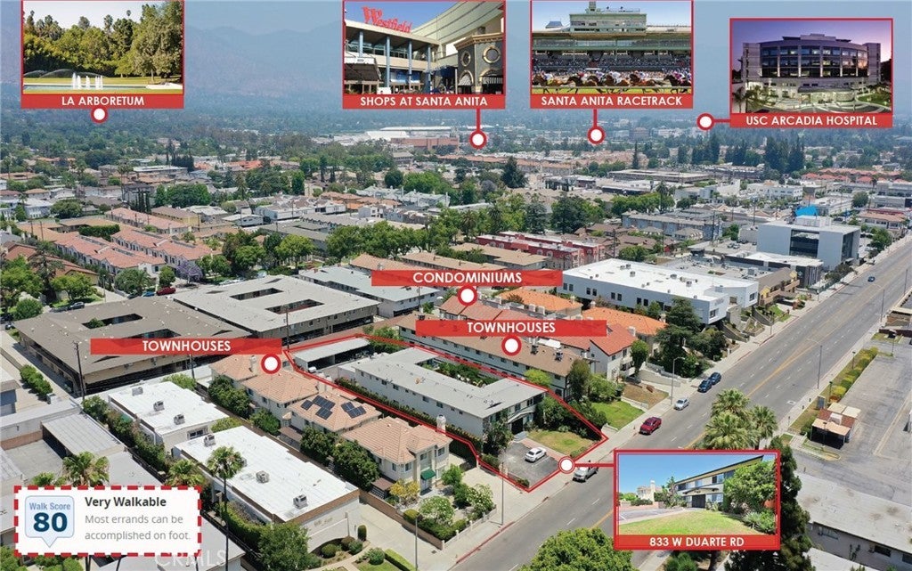Pride-of-ownership 12-unit Value-add in the heart of Arcadia, No Local Rent Control, Excellent unit mix, 2 ADUs Initial plan included, Arcadia School, Convenient location near Santa Anita Mall + Santa Anita Park, shopping + dining, groceries stores, medical offices, schools, library, etc. SELLER MAY CARRY. 833 W Duarte Rd, a Pride-of-ownership 12-unit value-add apartment in the heart of the City of Arcadia, California. There is no local rent control in Arcadia, thus providing maximum upside potential (under California AB1482 – up to 10% maximum annual rent increase). This property is located within the prestigious Arcadia Unified School District. It offers excellent demographics of ±$132,826 average household income within a mile radius! The sale includes initial drawing for 2 additional ADUs to be built above the carport area (not approved – buyer to continue the permitting process). The property is a well maintained 2 story garden style apartments with a center courtyard. The courtyard area used to be a swimming pool that had been filled up with permits. The property has a total of situated on a large 16,481 square feet lot and was built in 1960. It is a garden style two-story apartment with a center courtyard (there was a swimming pool that was filled in - with permits). The property offers excellent unit mix with one (1) large x 3bedroom+3bathroom, one (1) x 2bedroom+2bathroom, one (1) x 2bedroom+1bathroom, and nine (9) x 1bedroom+1bathroom. One unit has a private patio area (sundeck) above carport. The 2 ADUs plan are to build above the carport – by the sundeck area. Each unit is sizable with a functional layout. Several units have been fully upgraded with modern upgrades such as new luxury wood vinyl flooring, granite kitchen countertops, tiled bathroom, and shower door. The property is separately metered for electricity and gas, windows A/C, wall heater, and individual water heater. There are a total of 15 parking spaces which are provided by 2 detached carports in the back (12 carport spaces) and 3 open spaces parking in the front of the building. Arcadia does not have any parking soft story retrofit is requirement. The property has undergone many recent capital improvements which include new exterior painting, new parking gate, new entrance gate, dual pane windows throughout, complete upgrades of several units, and filled in swimming pool.