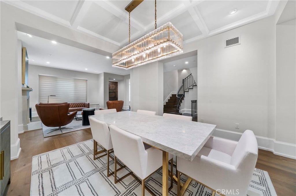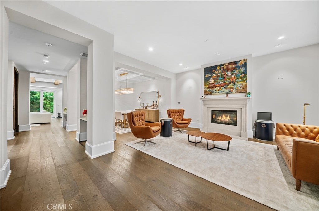 Stunning, sophisticated townhome in luxurious Brentwood community for sale with fully furnished. Built in 2010, a beautiful gated townhouse features private elevator access to all floors, 4 bedrooms and 4.5 bathrooms. First floor: High ceiling living room with a stone fireplace, formal dining room, private office, powder room, open concept gourmet kitchen and family room with coffered ceilings leading to private patio great for entertaining. Second Floor: High ceiling primary bedroom suite with fireplace, balcony, walk-in closet, dual vanities, spa tub, and a glass-enclosed shower with bench seat. Two guest ensuite bedrooms and a laundry area. Third floor: Spacious bedroom ensuite with roof deck balcony. Lower Level: Bonus media/recreation room with direct access to 3-car garage. Conveniently located from farmer’s market, Brentwood’s finest dining, boutiques, and entertainments. Must See to realize the luxury, and vibrant lifestyle on the Westside.