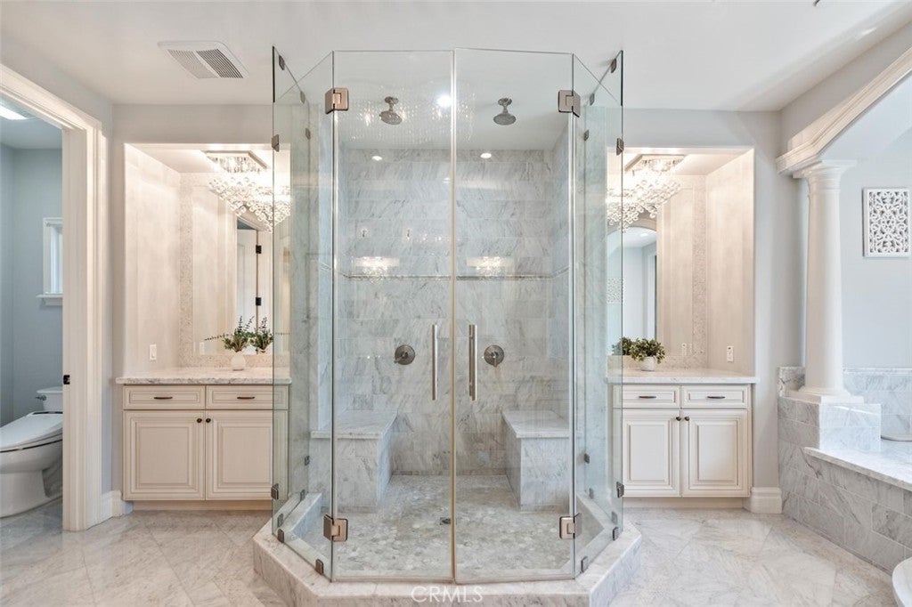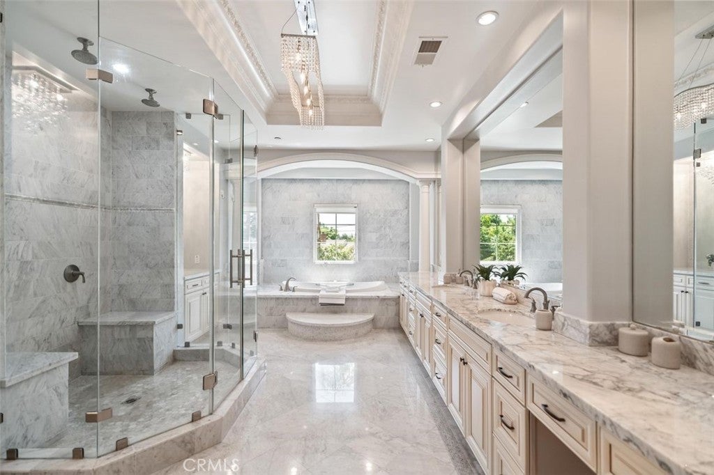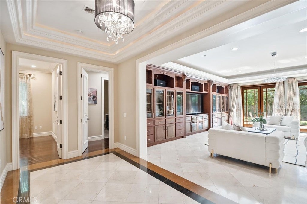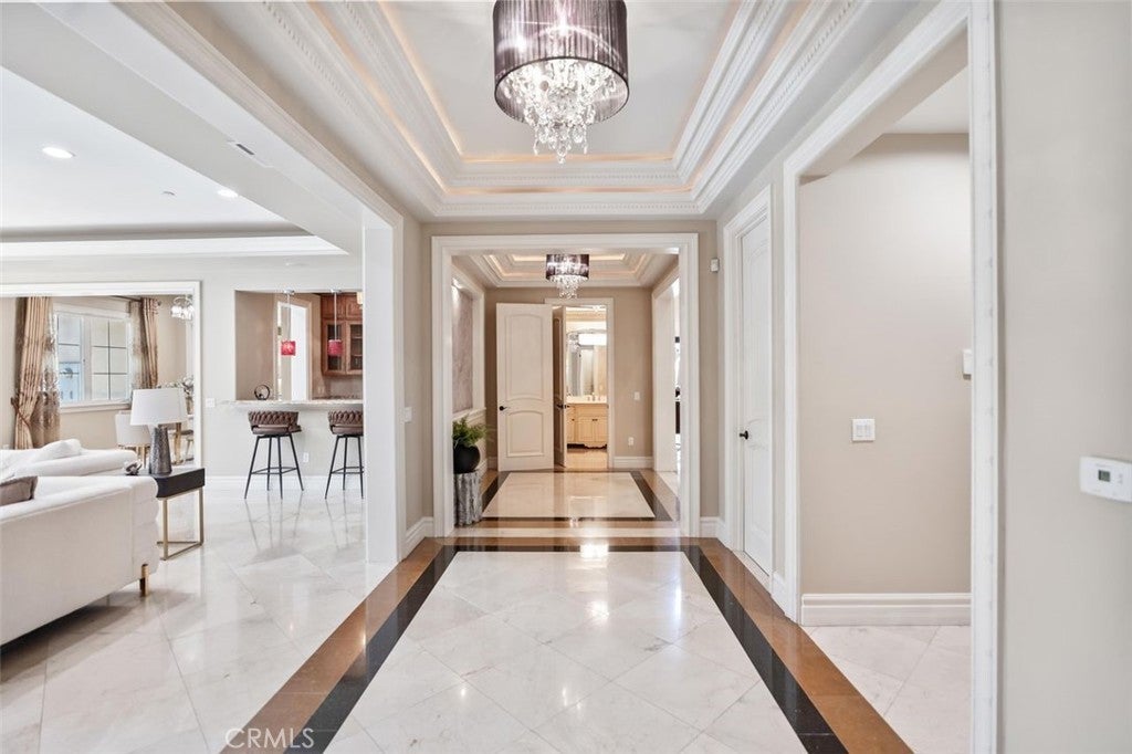 Exquisite and luxurious Custom Estate featuring 6 bedrooms 7 baths, including 2 Master Suites with Jacuzzi Tubs (1 downstairs). The first floor features 2 suites with bathrooms, and laundry room. All suites with wood floors, walk-in closet. Built in 2012 keeps like a new property with many of today’s modern amenities and situated in the award-winning Arcadia School. House is 6,022 SF with a large green landscaped 15,161 SF lot. South facing, Step into Grand Foyer and witness floor to ceiling elegance, Marble floors, marble stairs with custom iron handrails, elaborate crown moldings and wainscoting, exquisite crystal chandeliers. Radiant Formal living room w/ fireplace, Formal dining room w/ elegant faux wall painting, library w/ built-in bookshelves, Gourmet kitchen with SubZero and Wolf appliances, granite counters, lavishly crafted cabinets with lots of modern storage convenience and elegant crystal lighting luminating the area. Separate wok kitchen. Adjacent to kitchen, large walk-in pantry, breakfast nook, wet bar with custom built-in wine cabinets and granite counters. Entertain in huge family room with beautiful built-in media cabinets wire ready with surround speakers and wood framed glass french doors. Upstairs with 2nd family room for more family fun. Built-in intercom & music system, wall mounted LCD for lighting control, alarm & camera security system & more. 3 car attached garage with a lot of built-in cabinets. This home has been beautifully maintained and is move-in ready. Located near School, Transportation, Arcadia Mall, Santa Anita Park, Racetrack and the beautiful Arboretum.