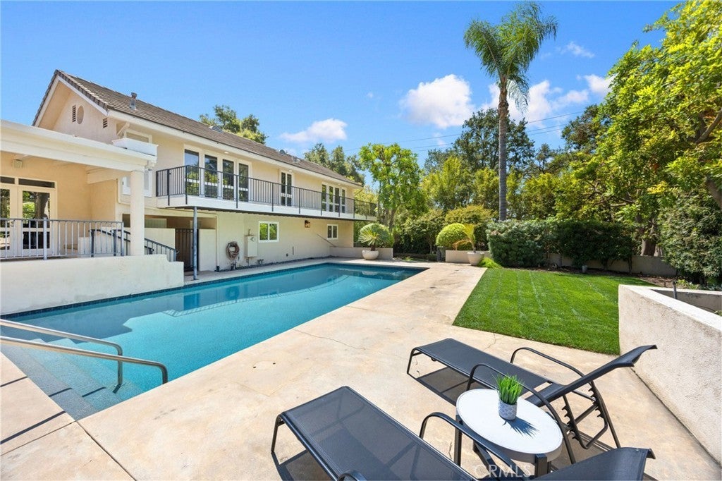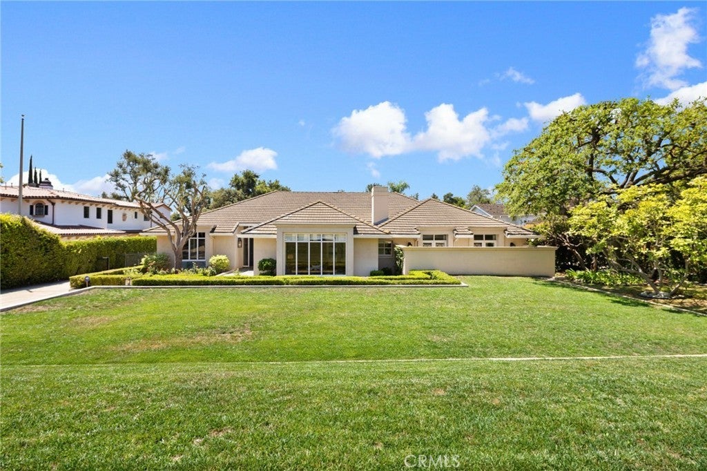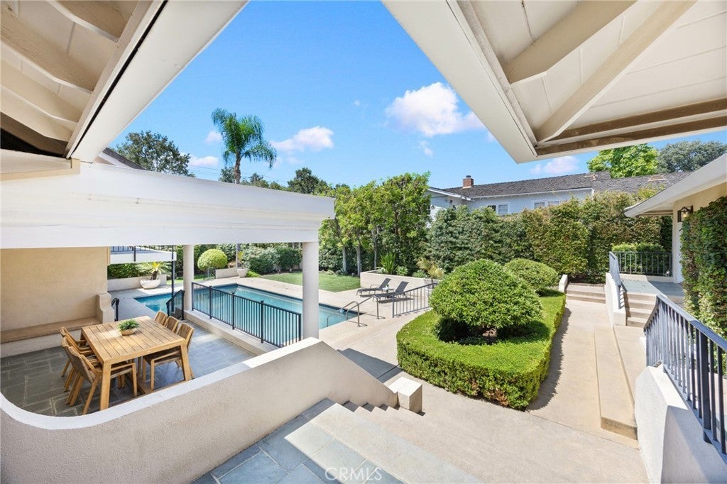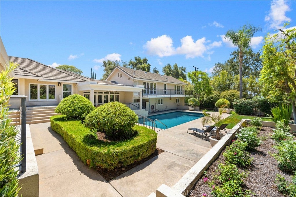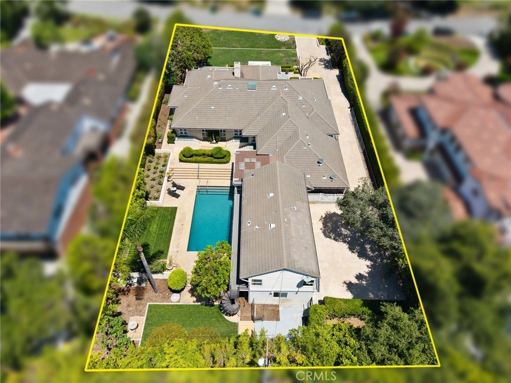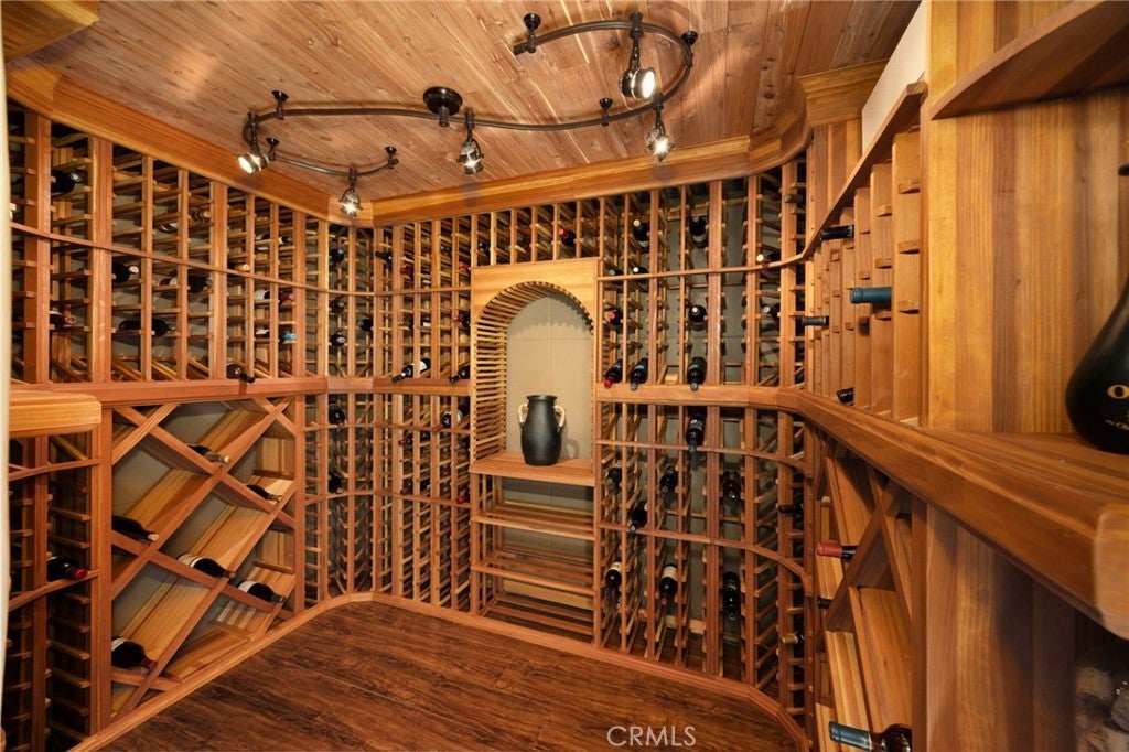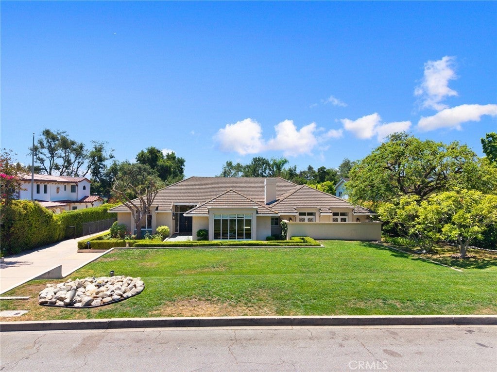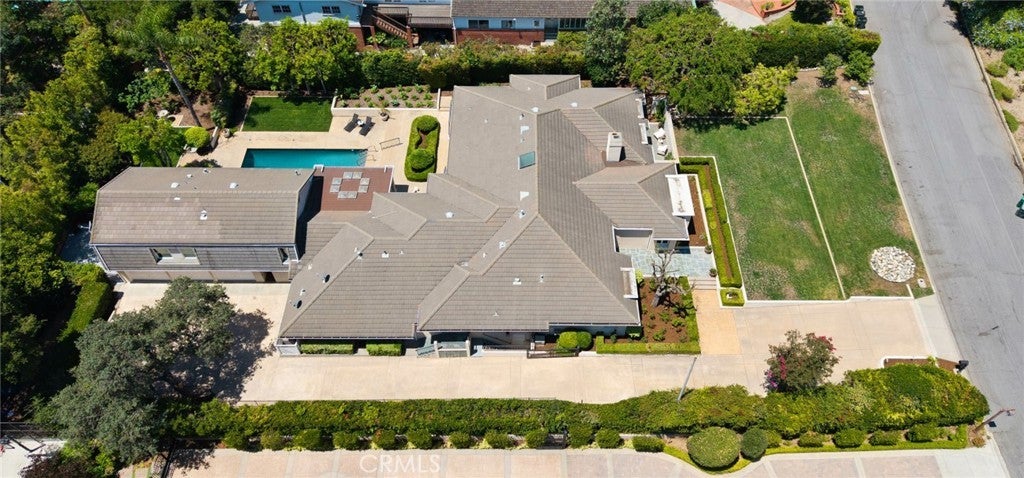 Situated in Arcadia's prestigious Upper Rancho neighborhood, this spectacular estate-property is located on one of Arcadia's most coveted streets, Singing Wood Drive. The sprawling 6,336 sq ft floorplan is primarily on a single level w/ 6 bedrooms (all suites) + an office and 8 total bathrooms. Upon arrival, you will be greeted by lushly landscaped grounds and mountain views. As you enter into this remodeled home with upgrades galore, there is a formal living room with high ceilings, recessed lights, wood floors, a cozy fireplace, and picture windows. Across the hallway is the large formal dining room, which leads to the gourmet kitchen w/ breakfast nook. The open-concept kitchen, which opens to the family room, features a large center island, built-in gas range, oven, microwave, 2 dishwashers and refrigerator, along with abundant cabinetry. This home is truly an entertainer's dream with both the family room and adjacent entertainment room opening to the backyard & patio. The entertainment room has a wet bar, along with a powder room. The main-level of the home also features a spacious office w/ built-in cabinetry. Down the main hallway are 3 bedrooms, including the spacious primary suite w/ retreat area. The primary suite has 2 walk-in closets, including one with extensive built-in cabinetry, a large retreat/sitting area w/ a cozy fireplace, French doors leading to a private patio area, and a large ensuite bathroom with dual sinks, and separate tub & shower. Off of the kitchen, there is a laundry/utility room w/ laundry hookups and guest quarters with a separate entrance off of the driveway. The guest suite has an additional laundry room, which could also be converted to a 2nd kitchen. A few steps above the entertainment room and above the garage are 2 additional expansive suites, which share a large balcony/deck overlooking the pool & backyard. The backyard has a large covered patio/dining area, along with landscaped grounds, a sparkling pool with 2 changing rooms, and a huge enclosed dog run. Down the long driveway is a finished 3-car garage with additional storage. The basement provides much more storage and features a large climate-controlled wine cellar. Additional features of this spectacular home include 4-zone HVAC, 3 water heaters, wired for sound & alarm/camera systems, automatic sprinklers, copper plumbing, updated electrical, and much more. All of this, along with Arcadia's award winning schools. Do not miss this opportunity!