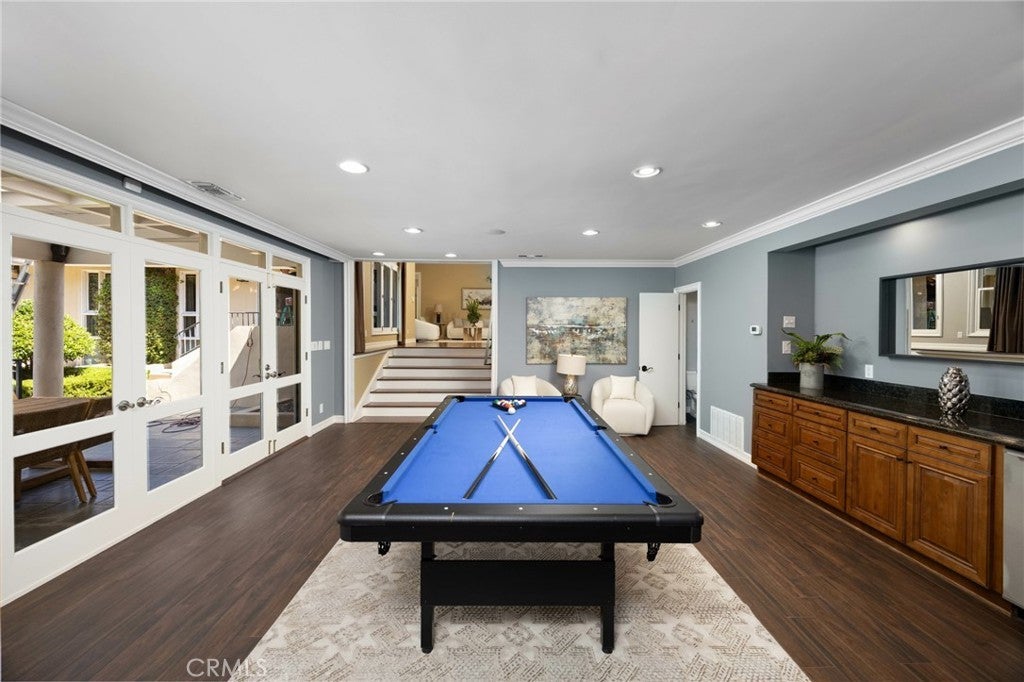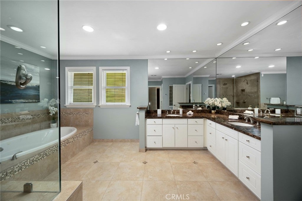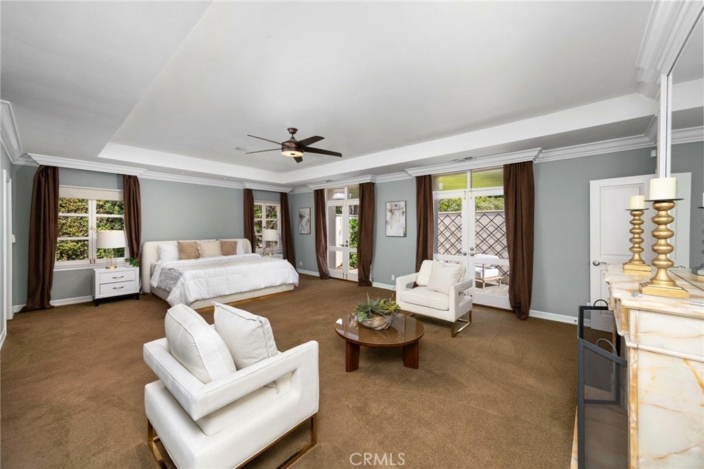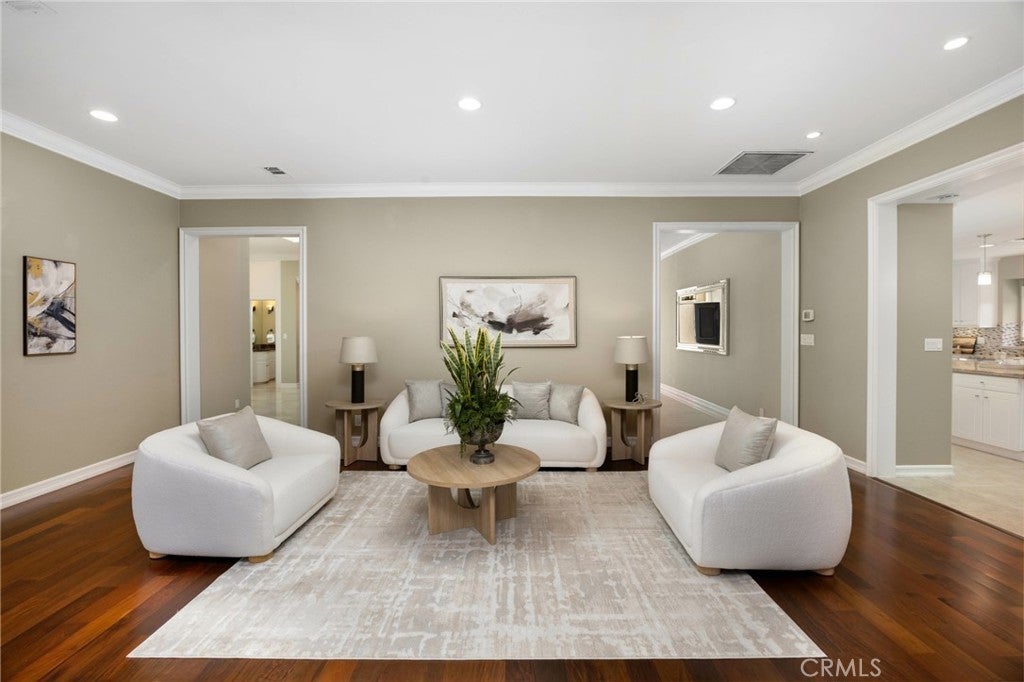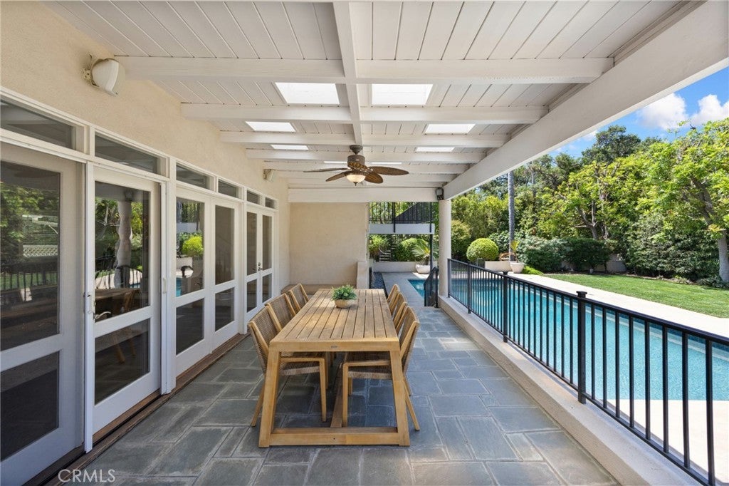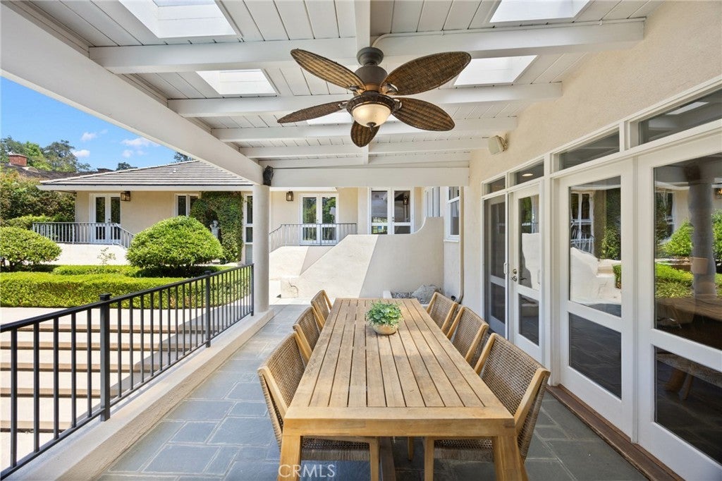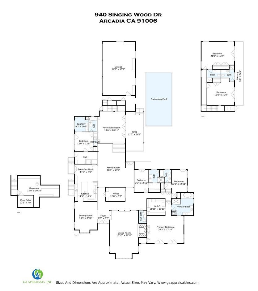 Situated in Arcadia's prestigious Upper Rancho neighborhood, this spectacular estate-property is located on one of Arcadia's most coveted streets, Singing Wood Drive. The sprawling 6,336 sq ft floorplan is primarily on a single level w/ 6 bedrooms (all suites) + an office and 8 total bathrooms. Upon arrival, you will be greeted by lushly landscaped grounds and mountain views. As you enter into this remodeled home with upgrades galore, there is a formal living room with high ceilings, recessed lights, wood floors, a cozy fireplace, and picture windows. Across the hallway is the large formal dining room, which leads to the gourmet kitchen w/ breakfast nook. The open-concept kitchen, which opens to the family room, features a large center island, built-in gas range, oven, microwave, 2 dishwashers and refrigerator, along with abundant cabinetry. This home is truly an entertainer's dream with both the family room and adjacent entertainment room opening to the backyard & patio. The entertainment room has a wet bar, along with a powder room. The main-level of the home also features a spacious office w/ built-in cabinetry. Down the main hallway are 3 bedrooms, including the spacious primary suite w/ retreat area. The primary suite has 2 walk-in closets, including one with extensive built-in cabinetry, a large retreat/sitting area w/ a cozy fireplace, French doors leading to a private patio area, and a large ensuite bathroom with dual sinks, and separate tub & shower. Off of the kitchen, there is a laundry/utility room w/ laundry hookups and guest quarters with a separate entrance off of the driveway. The guest suite has an additional laundry room, which could also be converted to a 2nd kitchen. A few steps above the entertainment room and above the garage are 2 additional expansive suites, which share a large balcony/deck overlooking the pool & backyard. The backyard has a large covered patio/dining area, along with landscaped grounds, a sparkling pool with 2 changing rooms, and a huge enclosed dog run. Down the long driveway is a finished 3-car garage with additional storage. The basement provides much more storage and features a large climate-controlled wine cellar. Additional features of this spectacular home include 4-zone HVAC, 3 water heaters, wired for sound & alarm/camera systems, automatic sprinklers, copper plumbing, updated electrical, and much more. All of this, along with Arcadia's award winning schools. Do not miss this opportunity!