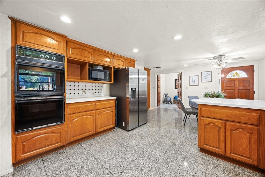 New Price – Reduced by $120,000. Best value! !Nestled in the prestigious Highland Oaks neighborhood of Arcadia and part of the award-winning Arcadia School District, this beautiful and spacious home sits on one of the area’s most serene streets. On the market for the first time in over 40 years, Showcases true pride of ownership. This residence offers approximately 3,248 sq ft of comfortable living space on a Lush and artfully arranged 15,632 sq ft lot. The gracefully landscaped front yard welcomes you to a marble-tiled entry that leads into a sunlit formal living room, complete with a fireplace and a wall of glass that framing sweeping mountains views and the serene front garden. Adjacent is the formal dining room with view of a tranquil atrium. The remodeled gourmet kitchen features quartz countertops, granite flooring, custom cabinetry, and a bright breakfast area that opens to the side yard. The spacious family room includes a built-in bar and French doors leading to a peaceful backyard oasis with a large patio, mature trees, fruit trees, and a sparkling pool—perfect for entertaining. The thoughtful layout featuring four generous bedrooms, including a primary suite with walk-in closet, backyard views, and direct outdoor access. A separate bedroom and bathroom on the opposite side of the home provide ideal guest or in-law accommodations. A cozy den offers space for a home office or a gym. Additional highlights include a leased solar system, newer roof and HVAC, recessed lighting, a separate laundry room, and two-car garage. Located near Santa Anita Park, the Arboretum, Westfield, the 210 Freeway, and top dining and shopping, this home blends comfort, elegance, and the best of California living. A rare opportunity you won’t want to miss!