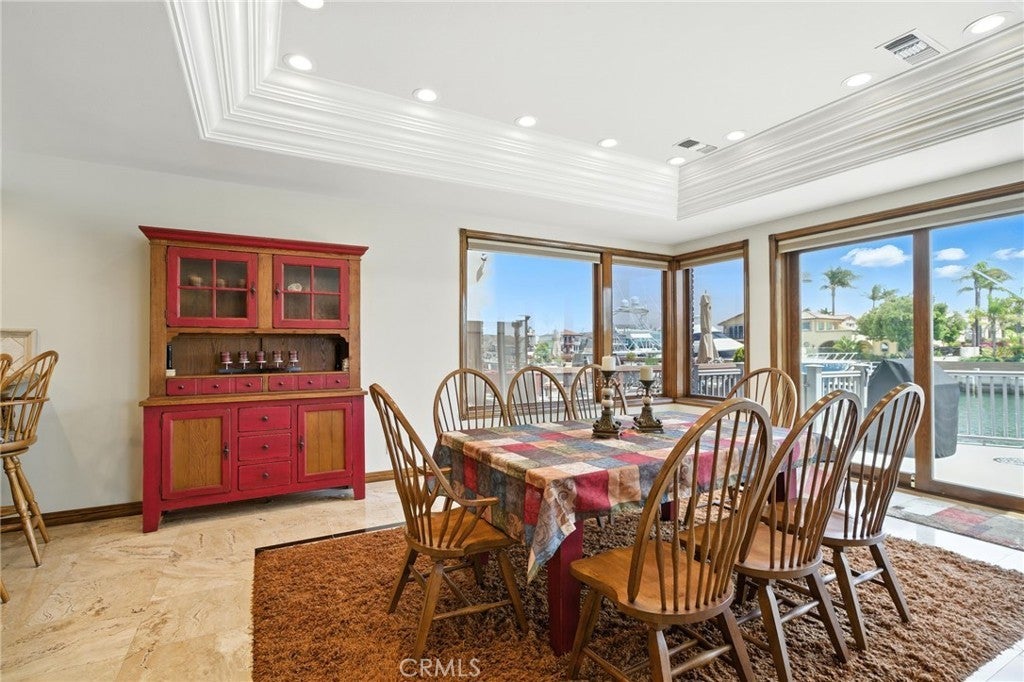 TAKE A LOOK! Welcome to this Entertainers Waterfront Estate in the Channel Islands, thoughtfully designed for gatherings and relaxed coastal living.This 4-bedroom, 5½-bath residence features a rare open floor plan that captures sweeping channel views and offers front-row seating to waterfront activities from boat parades to paddle boarding. A private 50-foot dock enhances the waterfront lifestyle and makes yacht owning optional.A grand foyer with soaring ceilings opens to expansive living and dining areas filled with natural light. Walls of windows create a seamless indoor-outdoor connection, complemented by remote-controlled window coverings and a custom wood-built entertainment center with built in fireplace.The gourmet kitchen is ideal for hosting, featuring a butler’s pantry, double ovens, side-by-side Sub-Zero refrigerator and freezer, and a large semi-circular granite island seating up to eight. Generous dining spaces accommodate large gatherings for indoor and outdoor gatherings. Polished travertine flooring runs throughout the main living spaces. All bedrooms are en suite, offering privacy and comfort. The upper level includes a custom wall-to-wall built-in desk, built-in armoire, and window seat. Additional highlights include Seller owned solar panels. This exceptional property offers an elegant waterfront lifestyle in one of Southern California’s most sought-after coastal communities. Yacht is not included in sale.