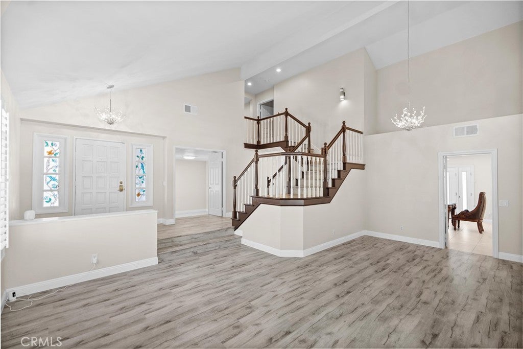 This beautifully maintained 4-bedroom, 3-bath home includes a convenient downstairs bedroom and full bath. Featuring vaulted ceilings, a sliding door opens to a serene backyard, and a spacious family room with a fireplace and wet bar—perfect for both relaxing and entertaining. The luxurious master suite includes a sitting area, fireplace, balcony, and an en-suite bath with a soaking tub and walk-in closet. Additional features include dual A/C units and a 3-car attached garage. Enjoy a private backyard with no neighbors to the west side or behind, mature landscaping, and a large covered patio. Located in a quiet neighborhood with top-rated schools nearby, this home is a true gem in Chino Hills!