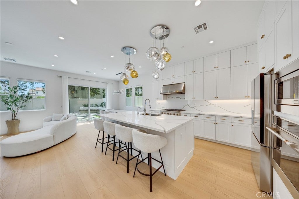 Welcome to the highly sought-after Miren community in Arcadia! This exceptional end-unit residence sits at the end of a private cul-de-sac, offering unmatched privacy and tranquility. As one of the larger floor plan in the community—once rated the best model at the time of development—this home provides the atmosphere and comfort of a luxury single-family residence. Surrounded by mature trees and adjacent to a serene side common area, the setting is both peaceful and picturesque. Inside, you'll find an array of premium upgrades, including: Expansive kitchen with ample cabinetry, upgraded countertops, and a stunning center island. Designer lighting fixtures and high-end flooring throughout. A reimagined step-in shower and a custom-designed walk-in closet in the primary suite. A sumptuous resort-like primary bathroom with views of mature oak trees, offering serene privacy. A newly renovated backyard featuring modern minimalist landscaping, ambient lighting, and shaded areas under a mature tree make this a private sanctuary for relaxation. Originally purchased in 2024 by its first and only owner, this lightly lived-in home shows practically brand new. With no direct comparison in the Miren community, this is a rare opportunity to own a truly luxurious and turnkey residence.