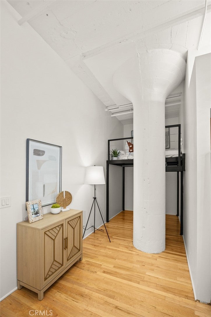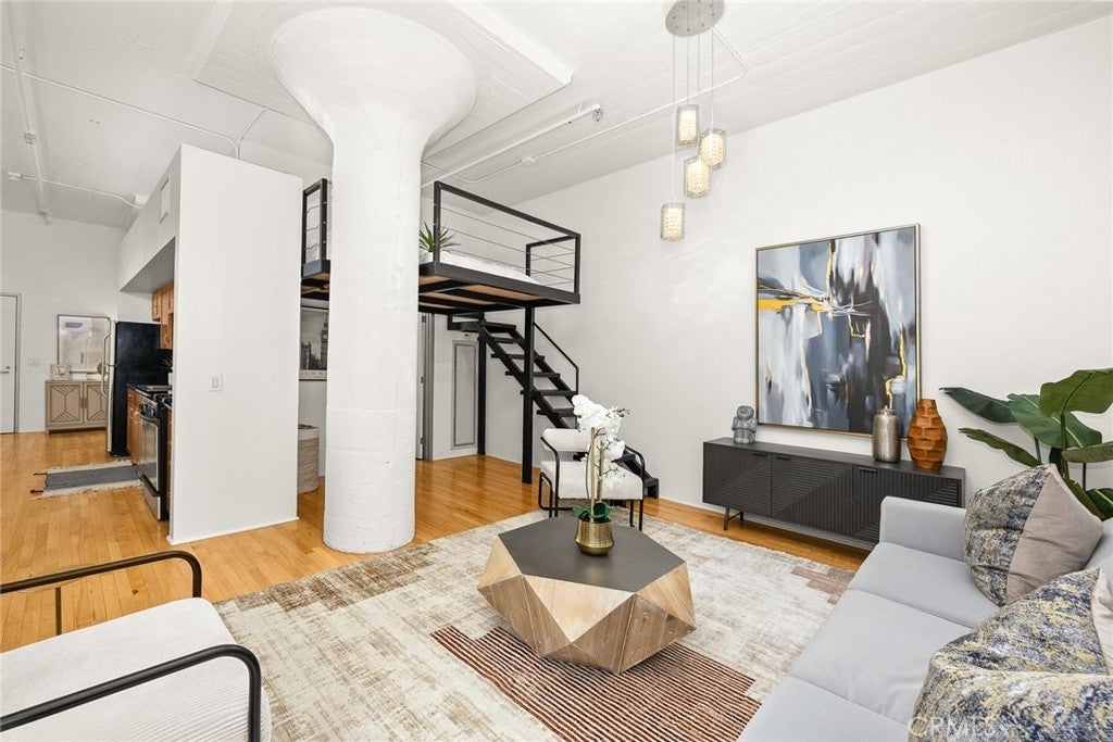 WELCOME TO "LITTLE TOKYO LOFTS”, CENTRALLY LOCATED IN DTLA, SET APART BY ITS DESIGNER RETROFITTED STYLE AND 24-HOUR SECURE BUILDING STANDARDS. THE PERFECT FLEXIBLE LAYOUT FOR LIVE-WORK STYLES, OR REMOTE PROFESSIONALS. THIS ULTRA-COOL LOFT FEATURES 12-FOOT CEILINGS, HARDWOOD FLOORS THROUGHOUT, AN UPDATED KITCHEN AND BATHROOM, WITH CUSTOM LIGHTING, CREATING A LIGHT AND BRIGHT ATMOSPHERE. CONVENIENT LAUNDRY STACKABLE INSIDE. WHAT I LOVE ABOUT THIS STUDIO AND WHAT SETS IT APART FROM ALL THE OTHER UNITS IN THE BUILDING IS THE FOLLOWING: TWO CUSTOM INDUSTRIAL MEZZANINE BEDS, ONE QUEEN AND ONE FULL, WHICH AFFORDS YOU A LOT MORE LIVING SPACE, AND TWO DEDICATED PARKING SPACES, EACH WITH A DEDICATED EV CHARGER. SET WITHIN A GATED, SECURE BUILDING WITH 24-HOUR SECURITY GUARD AND SURVEILLANCE, RESIDENTS ENJOY PREMIUM AMENITIES INCLUDING A RESORT-STYLE POOL, SPA, FITNESS CENTER, BBQ AREA, DOG RUN, AND OPEN-AIR LOUNGE PATIO. WELL APPOINTED 25 GUEST PARKING SPOTS ANOTHER GENEROUS COMMUNITY AMENITY. DON’T MISS THIS FINE OPPORTUNITY.