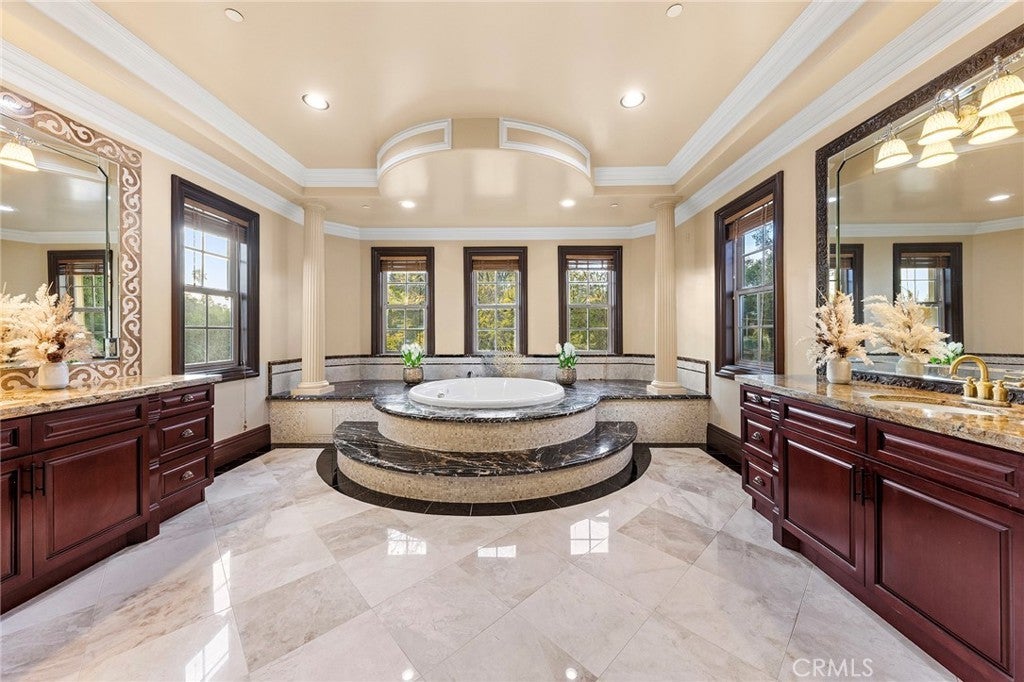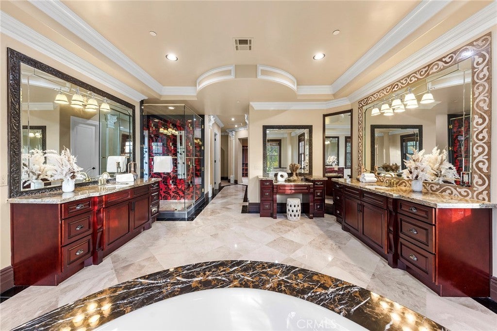 Welcome to this French Chateau nestled in the most prestigious Arcadia neighborhood, where timeless elegance meets modern luxury. From the moment you enter through the wrought-iron gates into a peaceful Courtyard that showcases the extraordinary scale of this lovely home. With almost ~11,000 sqft of Luxury Living Area in an almost ~30,000 sqft Flat Lot, a voluminous atmosphere awaits, with a dramatic 28 feet soaring Foyer and a Double Staircases plus a unique grand Living Room of same soaring Ceiling. Highlights of this French Mansion include 7 generous bedrooms, 9 bathrooms, a stunning living room, a chef's kitchen adjacent to the beautiful Family Room, a gorgeous Dining Room and an inviting Library/Office plus a Pool House. The primary Suite upstairs features Marble Fireplace, Sitting Area, Dual Closets and Bathrooms that lead to the private Patio and Private Staircase directly accessing to the beautiful Backyard. The picture perfect Backyard with an expansive Outdoor Terrace, views of the Pool & Spa, and perfectly manicured Gardens. Step outside to your own private oasis, where an exotic backyard invites you to relax and entertain. The pristine Pool and Spa are complemented by a top-of-the-line outdoor BBQ area, creating the stunning setting for unforgettable gatherings. With ample space for alfresco Dining and Entertaining, this Backyard is a true Retreat, offering an unparalleled Southern California lifestyle in the heart of the most popular city in Southern California. This extraordinary property provides a peaceful and private sanctuary to experience ultimate Luxury Living in one of the most desirable neighborhoods, surrounded by the most coveted world-class Dining, Santa Anita Shopping Mall, the Race Track plus the Arcadia Awarded Winning Blue Ribbon School District.