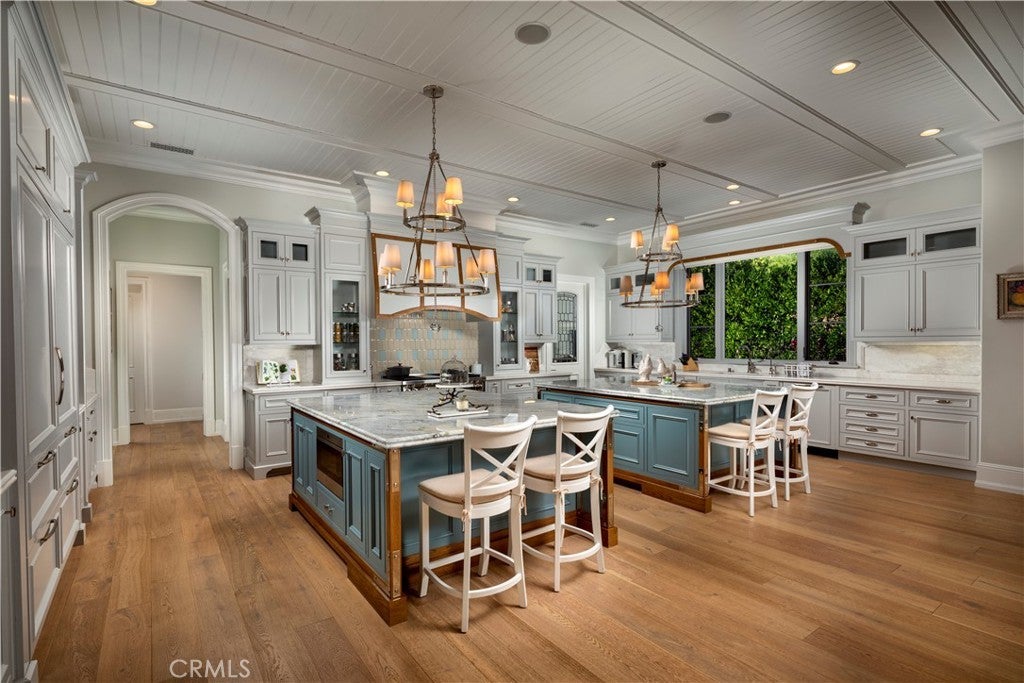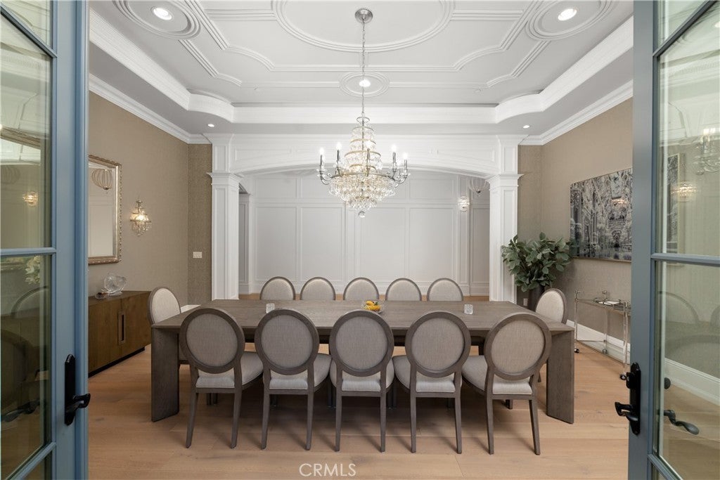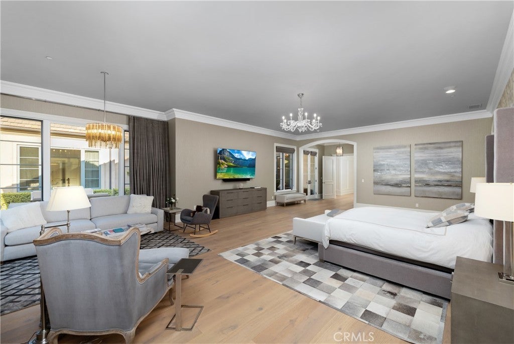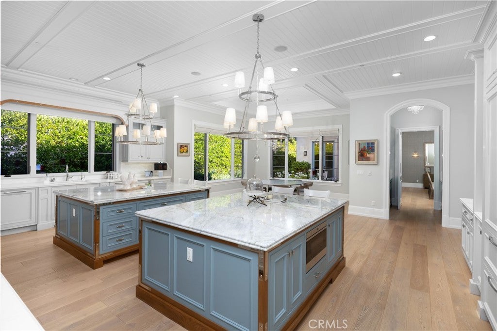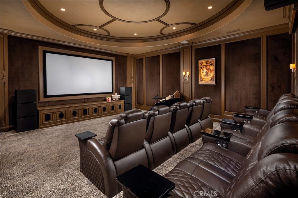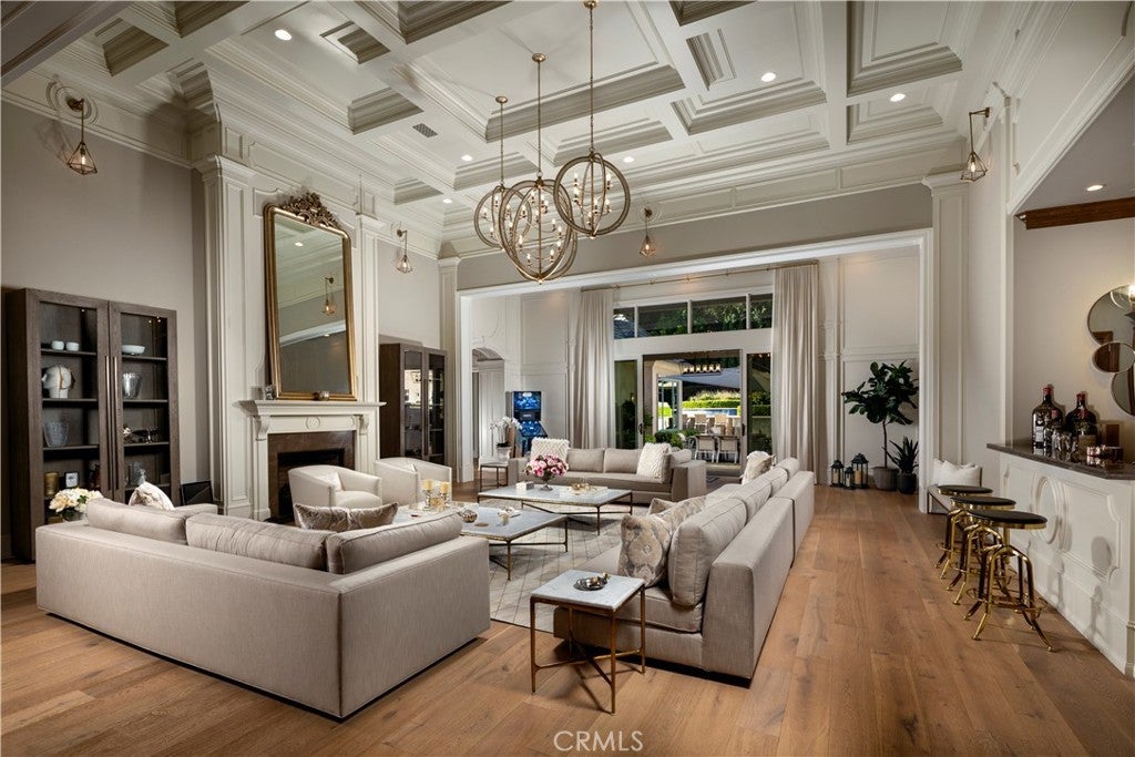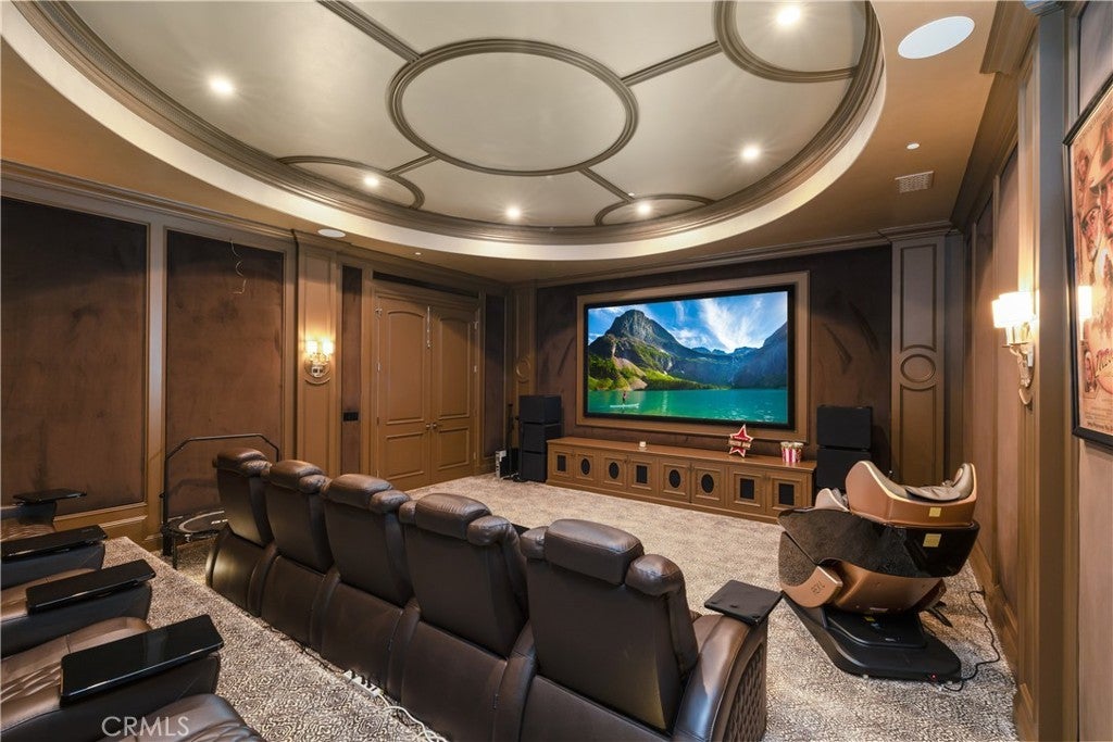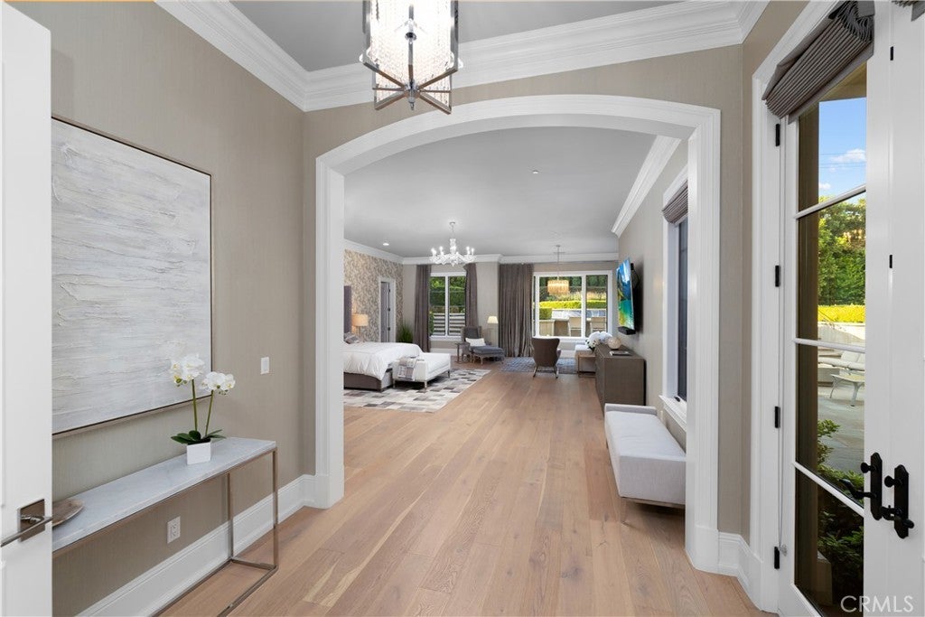 A Rare 10,422-Square-Foot French Estate in Prestigious Santa Anita Oaks, Set within Arcadia’s esteemed Upper Rancho Area of Arcadia, this extraordinary French-inspired estate presents over 10,000 square feet of rare single-level living on nearly an acre of beautifully landscaped grounds. Designed by the reputable Robert Tong and built by Mur-Sol Construction, this residence embodies timeless elegance, modern luxury, and superior craftsmanship. Behind its stately façade behind multiple large hedges and gated circular driveway, interiors unfold with grand proportions, soaring ceilings, and exquisite detailing throughout. The magnificent family room, crowned by a Cathedral High coffered ceiling and illuminated by a Gold Czech crystal chandelier, serves as the dramatic centerpiece of the home. Formal living and dining rooms offer refined settings for entertaining, while a richly appointed paneled study, an expansive home theater, and a private fitness room with sauna provide a wealth of lifestyle amenities. Throughout the home, custom designer draperies add sophistication and warmth to every space. At the heart of the estate, the gourmet kitchen impresses with dual marble-topped islands, professional-grade appliances, and bespoke cabinetry, paired with a fully equipped secondary wok kitchen for seamless entertaining. Six ensuite bedrooms, including a serene and extremely large primary suite with a spa-inspired bath of imported marble and European finishes, provide privacy and comfort for family and guests. The estate’s outdoor setting is equally remarkable, designed as a private resort retreat. Mature oak trees and lush landscaping frame a vast grassy lawn, an entertainer’s saltwater pool and spa, and an elegant stone terrace with outdoor fireplace. A circular driveway and a four-car attached garage ensure both prestige and convenience, with parking capacity for more than ten additional cars on the grounds. Enhancing the property’s value and efficiency are paid-off solar panels, offering sustainable living without compromise. Distinguished not only by its scale but also by its rare single-story design, this residence offers a lifestyle of enduring elegance, comfort, and exclusivity—all just moments from Arcadia’s award-winning schools, parks, dining, and cultural destinations.