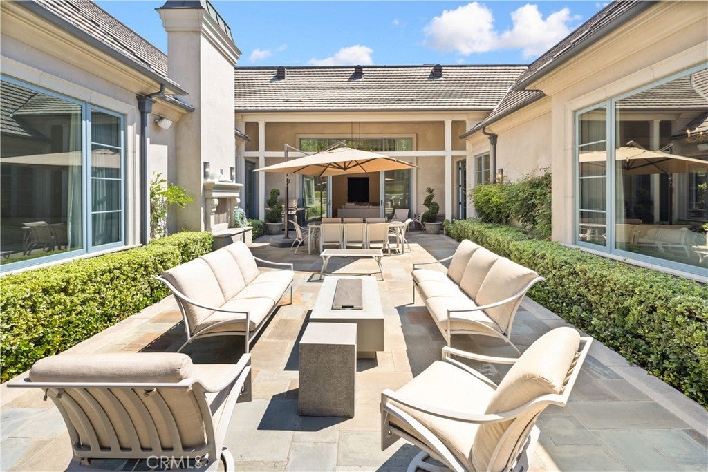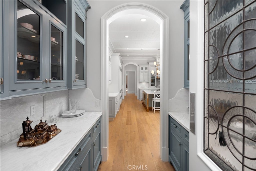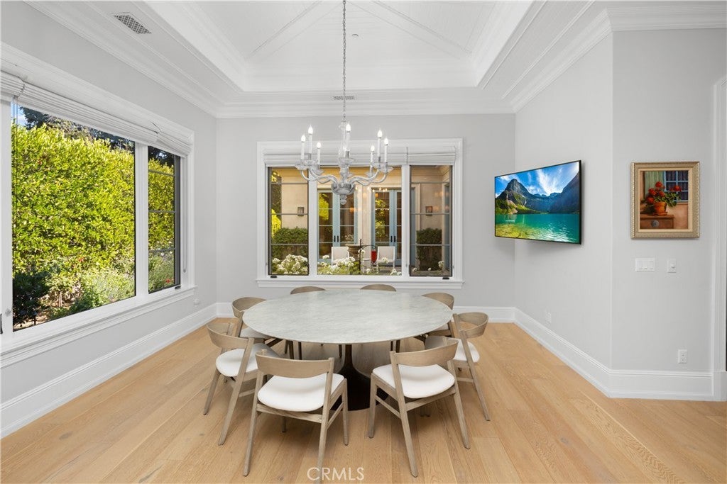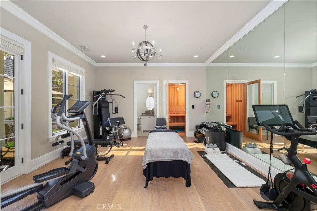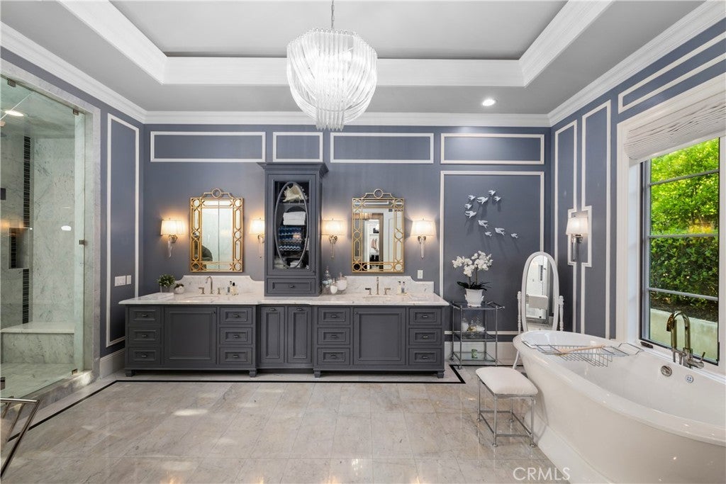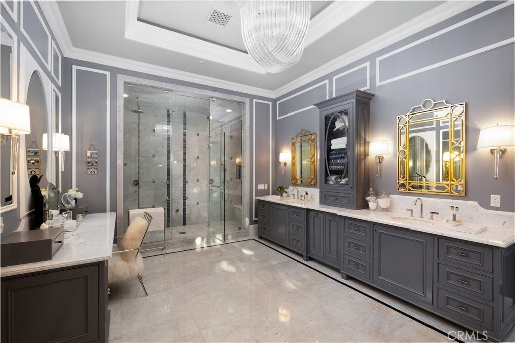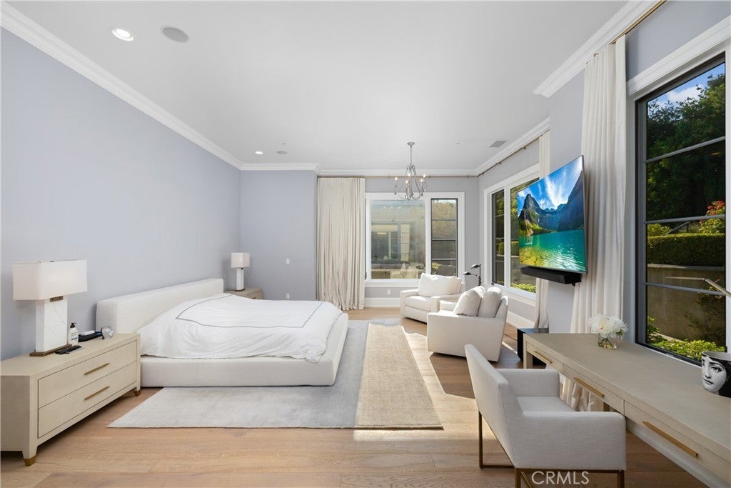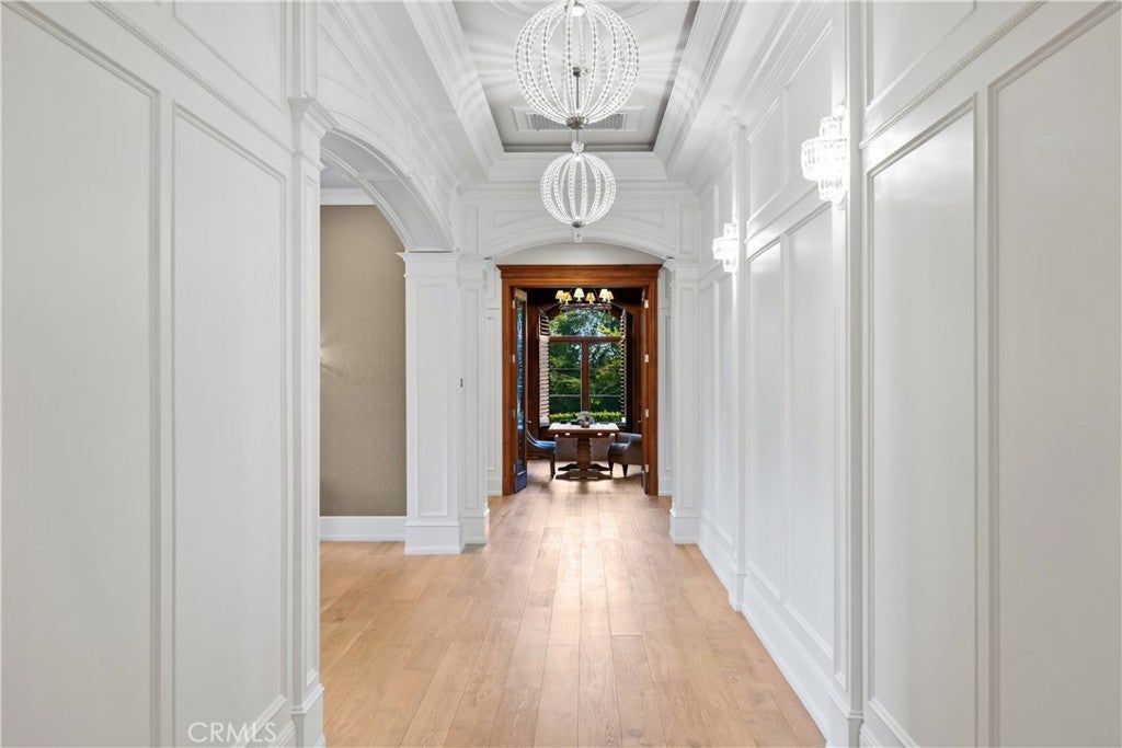 A Rare 10,422-Square-Foot French Estate in Prestigious Santa Anita Oaks, Set within Arcadia’s esteemed Upper Rancho Area of Arcadia, this extraordinary French-inspired estate presents over 10,000 square feet of rare single-level living on nearly an acre of beautifully landscaped grounds. Designed by the reputable Robert Tong and built by Mur-Sol Construction, this residence embodies timeless elegance, modern luxury, and superior craftsmanship. Behind its stately façade behind multiple large hedges and gated circular driveway, interiors unfold with grand proportions, soaring ceilings, and exquisite detailing throughout. The magnificent family room, crowned by a Cathedral High coffered ceiling and illuminated by a Gold Czech crystal chandelier, serves as the dramatic centerpiece of the home. Formal living and dining rooms offer refined settings for entertaining, while a richly appointed paneled study, an expansive home theater, and a private fitness room with sauna provide a wealth of lifestyle amenities. Throughout the home, custom designer draperies add sophistication and warmth to every space. At the heart of the estate, the gourmet kitchen impresses with dual marble-topped islands, professional-grade appliances, and bespoke cabinetry, paired with a fully equipped secondary wok kitchen for seamless entertaining. Six ensuite bedrooms, including a serene and extremely large primary suite with a spa-inspired bath of imported marble and European finishes, provide privacy and comfort for family and guests. The estate’s outdoor setting is equally remarkable, designed as a private resort retreat. Mature oak trees and lush landscaping frame a vast grassy lawn, an entertainer’s saltwater pool and spa, and an elegant stone terrace with outdoor fireplace. A circular driveway and a four-car attached garage ensure both prestige and convenience, with parking capacity for more than ten additional cars on the grounds. Enhancing the property’s value and efficiency are paid-off solar panels, offering sustainable living without compromise. Distinguished not only by its scale but also by its rare single-story design, this residence offers a lifestyle of enduring elegance, comfort, and exclusivity—all just moments from Arcadia’s award-winning schools, parks, dining, and cultural destinations.