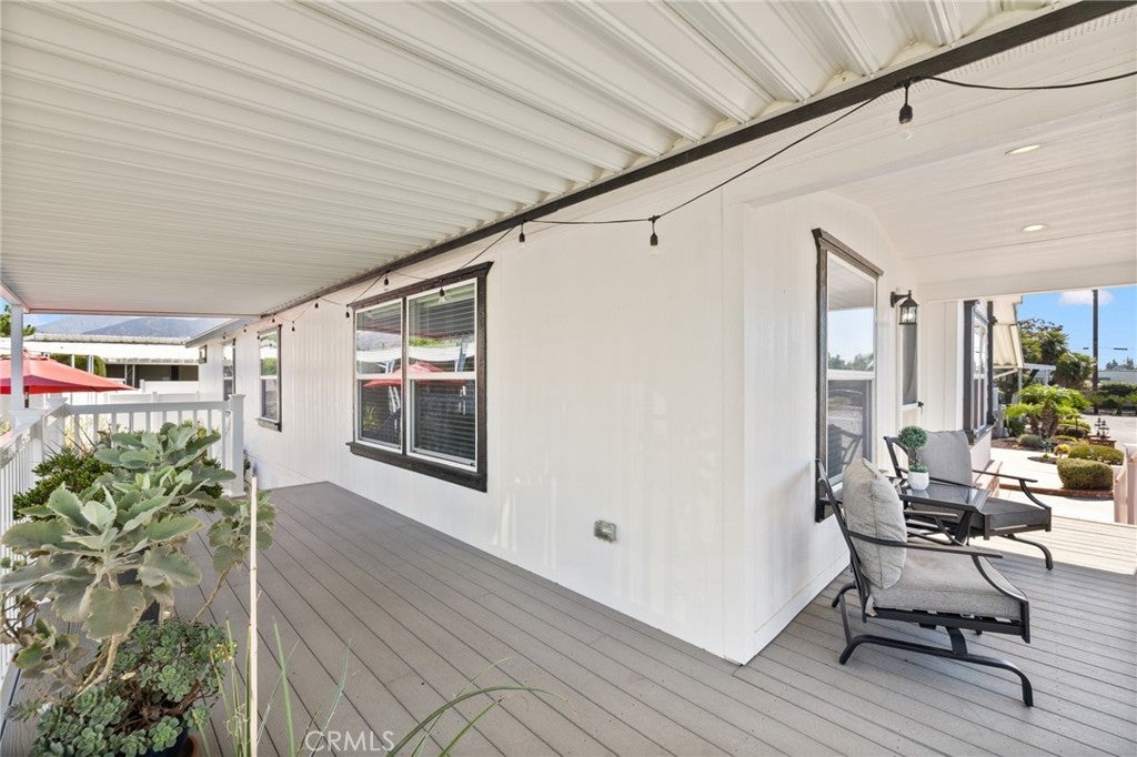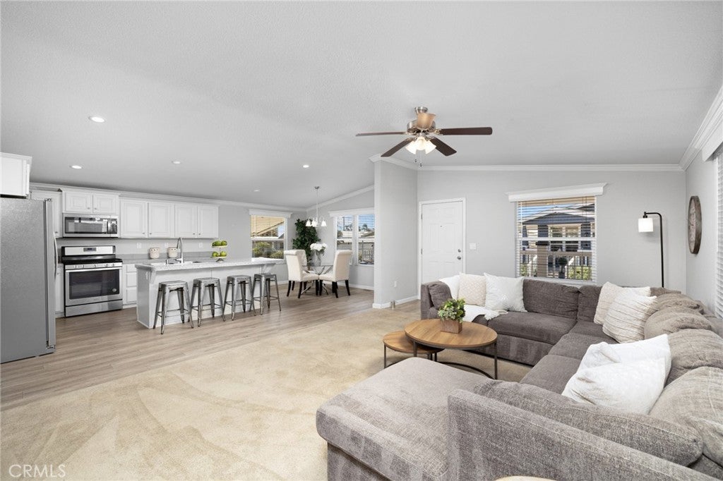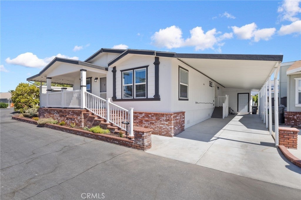 Located in The Fountains - Senior Living Community 55+ embodies an exceptional blend of comfort, community, and natural beauty. This stunning 2019 Fleetwood manufactured home combines modern comfort with timeless style. Featuring 3 bedrooms, 2 bathrooms, and 1,610 sq. ft. of single-level living space, it’s thoughtfully designed for convenience and function. The vaulted, open-concept living area creates a bright and welcoming atmosphere, perfect for both relaxation and entertaining. The chef-inspired kitchen showcases stainless steel appliances, a large center island, abundant counter space, and seamless integration with the dining and living rooms. The spacious primary suite offers a walk-in closet and private bath, while a large laundry room with sink adds both functionality and storage. Additional highlights include central A/C and heating for year-round comfort, elegant crown molding, stylish window coverings, an expansive wraparound porch with vinyl railing, and a full-length covered carport. The side yard features a concrete patio, an ideal spot to relax and enjoy the beautifully landscaped surroundings. Life at The Fountains, a desirable 55+ community, means more than just a beautiful home. Residents enjoy exceptional amenities, including a clubhouse, sparkling pool and spa, fitness center, library, and game room, providing endless opportunities to stay active, social, and engaged. This move-in ready home offers the perfect blend of comfort, community, and lifestyle in the heart of La Verne.