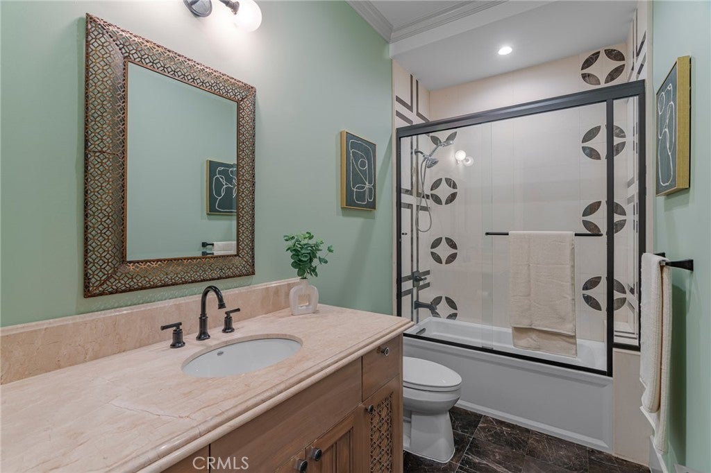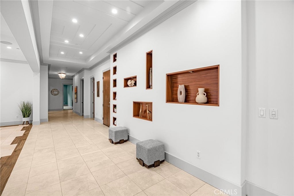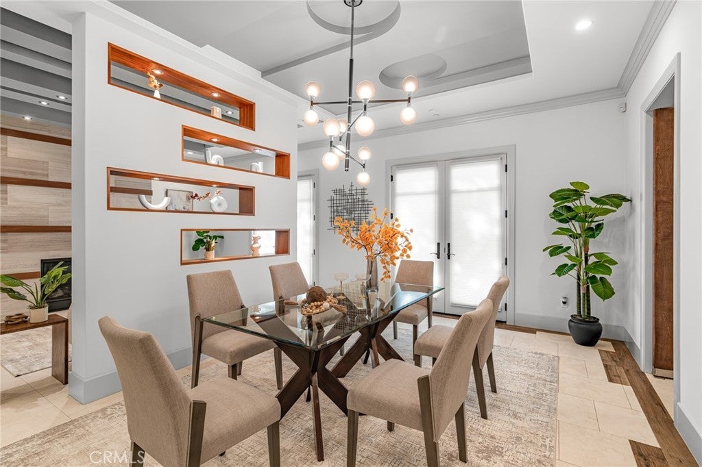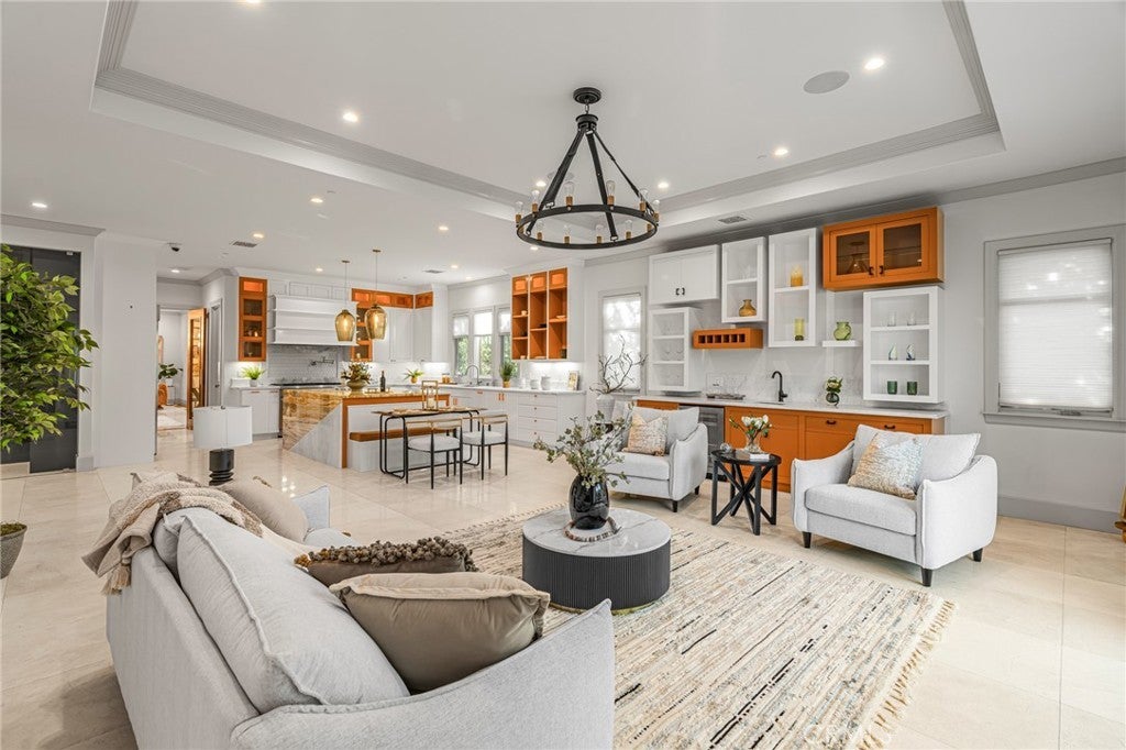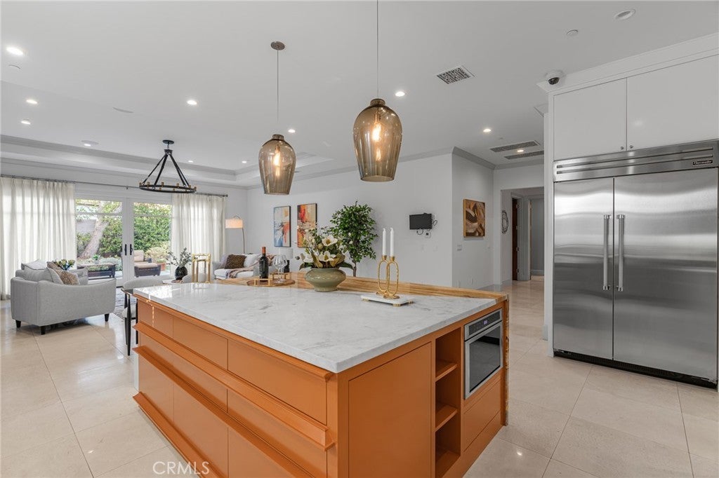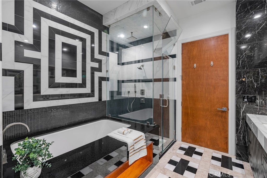 Located in the prestigious Santa Anita Village area of Arcadia, this hard-to-find single-story custom estate offers a perfect blend of timeless elegance and modern luxury. The grand foyer opens to a stunning great room with honed and polished marble floors, complemented by a separate library featuring exquisite custom cabinetry and millwork. The expansive gourmet kitchen boasts a marble waterfall island with an attached breakfast nook bench, walk-in pantry, and a separate sous-chef kitchen. A spacious family room with a wet bar flows seamlessly to the beautifully landscaped yard, while an enclosed, glassed wine cellar and custom home theatre with wood and silk paneling provide unparalleled opportunities for entertainment. Additional highlights include a limestone and walnut fireplace in the living room with retro ceiling details, three guest bedrooms each with en-suite bathrooms, and a luxurious master suite with a spa-style bath featuring marble surfaces, an air-jetted tub, steam shower, and large walk-in closet. This home is equipped with a built-in security system, central vacuum system, and water softener, along with high-end appliances, designer lighting, and artisan cabinetry. The tranquil backyard patio is perfect for relaxing or gathering with family and friends. Conveniently located near parks, dining, shopping, the public library, and award-winning Arcadia schools.