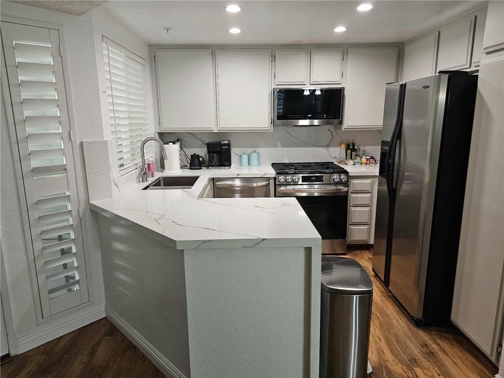 This is what you're waiting for! It is conveniently located near parks, hiking trails, shopping, dining, and easy freeway access. 2-bedroom 2-baths lower-level condo located in the highly desirable Crystal Canyon Community of North Azusa! Recently upgraded kitchen with quartz counter tops, stainless steel sink, new kitchen appliances with breakfast counter/bar and recess lighting. Entry opens to a bright, open concept living room and kitchen, designed for both relaxation and entertainment. Home features laminated flooring, dual-pane windows with elegant shutters, and tasteful finishes. Master bedroom boasts direct patio access, a separate vanity with shower/tub combo, and an impressive three closet space for ample storage! The second bedroom makes an ideal guest room or home office, complete with a north-facing window overlooking the San Gabriel Mountains. Inside laundry area with new Samsung smart multi-steam, moisture sensor clothes washer & dryer. Newer central air and heat for year-round comfort. Two single-car garages (attached!) – a rare and valuable feature in this community. The second bathroom features a well-maintained shower/tub combo, ideal for guests. Community amenities include private tennis courts, pool & spa, and pet-friendly grounds – perfect for an active and convenient lifestyle. This is a rare find with unmatched features you won’t want to miss. Schedule your visit today and experience for yourself why this home is the one you’ve been waiting for!