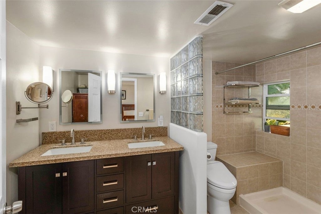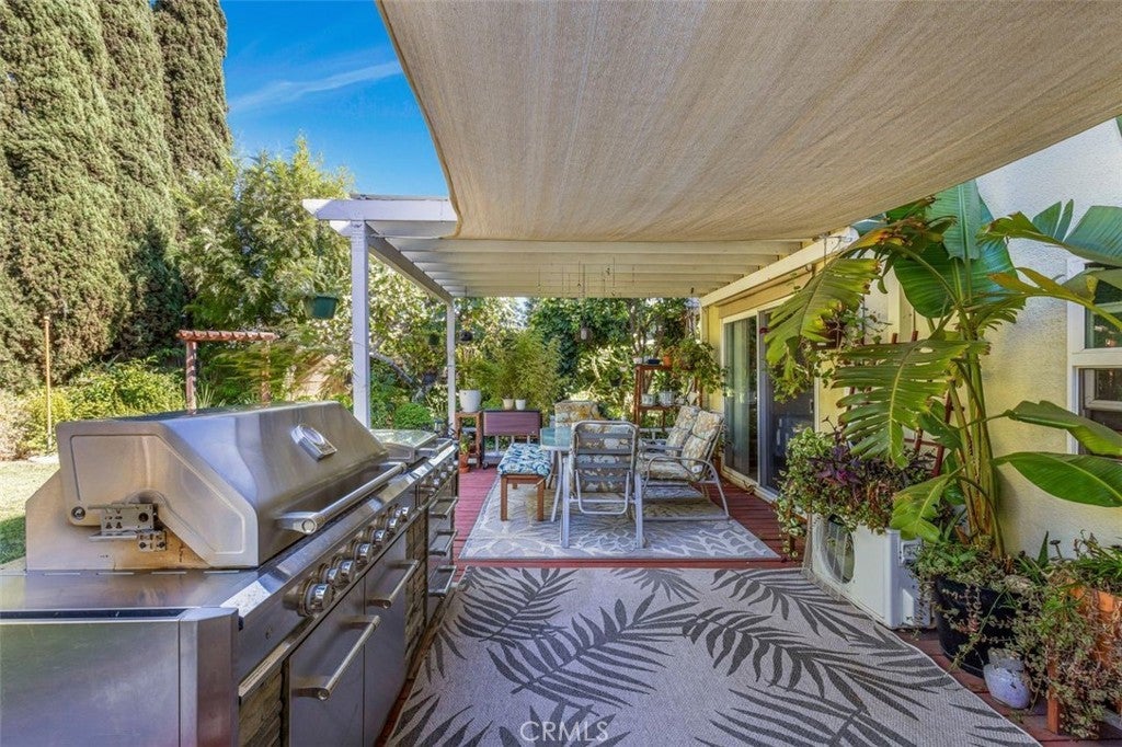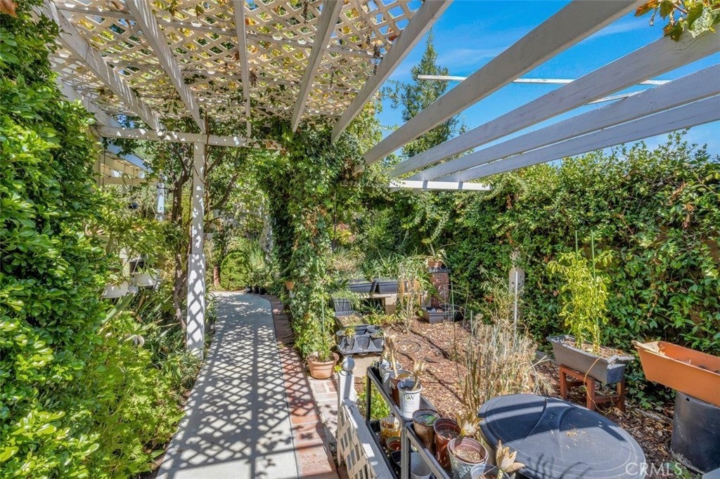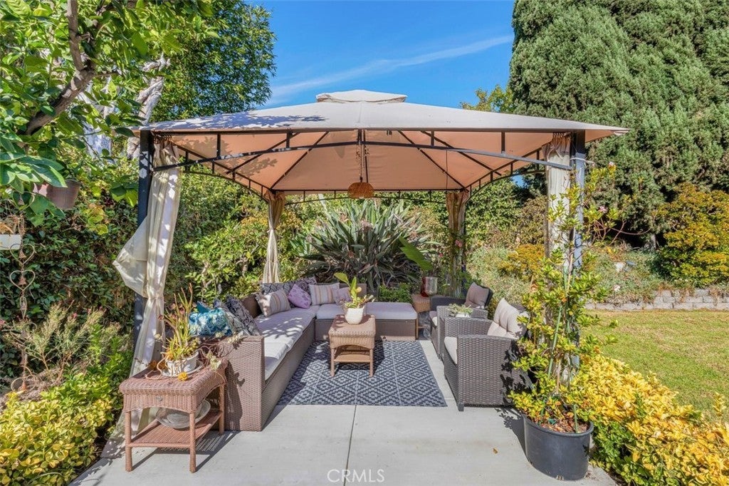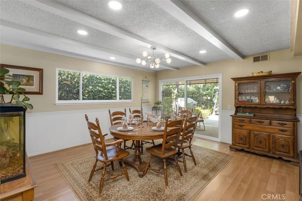 Welcome to this stunning two-story Mid-Century Ranch-style residence, ideally situated in a highly sought-after neighborhood within a top-rated school district. With inviting curb appeal, a spacious three-car garage, and a thoughtfully designed layout, this 5-bedroom, 3.5-bath home offers the perfect balance of comfort and sophistication. Step inside to a welcoming foyer that opens to a bright and airy living room, complete with a beautiful fireplace, custom built-in display cabinetry, and a large picture window that floods the space with natural light. The main level features a primary suite with direct backyard access through expansive sliding glass doors, while upstairs includes an additional en-suite bedroom along with generously sized rooms ideal for family, guests, or a home office. The bathrooms have been tastefully updated with dual sinks, modern tile shower stalls, and a relaxing whirlpool bathtub. A separate laundry room adds convenience and functionality. The gourmet kitchen showcases granite counters, stainless steel appliances, and ample cabinetry, seamlessly flowing into the dining area with sliding glass doors that open to the backyard. Step outside to private retreat where a beautifully landscaped backyard provides tranquility and space for gatherings. Mature fruit trees, lush plantings, and vibrant gardens surround multiple outdoor living areas, including a built-in BBQ, shaded patio, and cabana-style seating - perfect for entertaining or unwinding in total privacy. This exceptional property blends timeless Mid-Century charm with modern upgrades, offering an inviting retreat both inside and out - waiting for you to call it home.