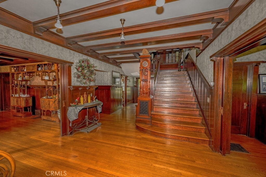 Beamed Ceilings, Built-in Features, Ceiling Fan(s), Separate/Formal Dining Room, Eat-in Kitchen, Elevator, High Ceilings, In-Law Floorplan, Multiple Staircases, Bedroom on Main Level, Dressing Area, Entrance Foyer, Galley Kitchen, Multiple Primary Suites, Primary Suite, Walk-In Closet(s)