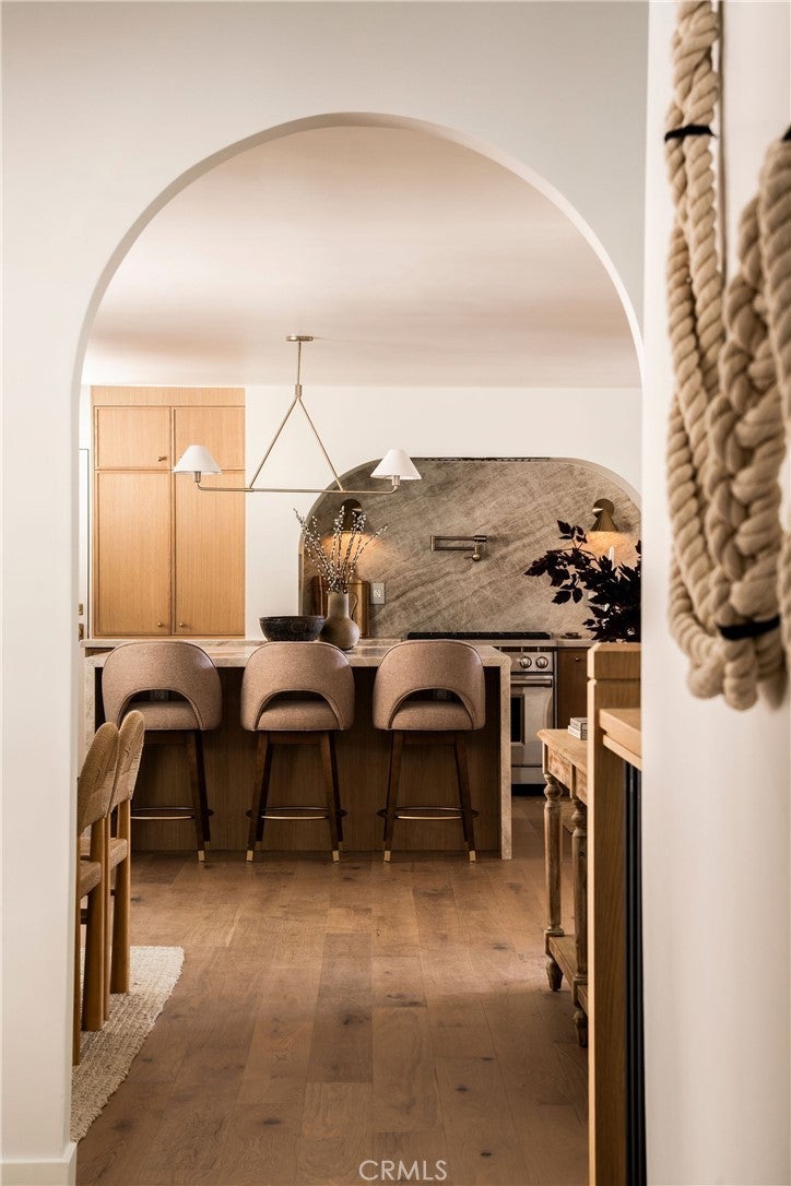 Tucked into a serene, coveted pocket of Beautiful NW Pasadena, 521 Fremont Drive is a true masterpiece that beautifully blends timeless modern luxuries and organic elegance. Perched away from the street & surrounded by lush landscaping, this thoughtfully crafted 4 bed, 4 bath (+ guest house) refuge delivers the rare sense of privacy & seclusion coupled w/ striking views of greenery & nature all around you. Solid Mahogany doors welcome you in where you will instantly be met w/ peaceful energy & intentional beauty in all directions. Nearly every inch of the property has been meticulously reimagined down to the studs, w/ new systems, hand-crafted finishes & too many special upgrades to list here! The chef’s kitchen is a true showpiece that feels like the heartbeat of the home, centered around an oversized island topped in hand-selected Taj Mahal quartzite, a custom-built arched hood, White oak Boxy cabinetry, & luxurious Wolf & Sub-Zero appliances. Hand-crafted spice shelves are nestled within beautiful carved arch niches. Warm White oak hardwood floors flow throughout the home's impeccable layout! The bright open living room features a Venetian plaster fireplace & majestic views of the grounds below. Beyond the four spacious bedrooms & four bathrooms, the home offers a versatile lower level family room / rec room & a separate office that leads to one of the many balconies & continues onto the backyard. Each bathroom is a sanctuary of its own, finished w/ premium vanities & an array of designer tile including honed marble, tumbled stone, & imported Italian porcelain. Every detail—from the solid brass hardware to the handmade sconces & Carrara marble finishes—has been curated w/ joy, & thoughtfulness! A separate 1 bed 1 bath guest house is just steps away provides a magical treehouse feel & serves as an ideal retreat for visitors, extended family, or passive income. It features an adorable kitchenette w/ Boxy cabinetry, designer tile-work & quartz countertops & a gorgeous ensuite bathroom! The home’s exterior has undergone a full transformation & feels like your own piece of serenity! Custom-built redwood & steel patio railings & fencing complete the property’s polished look. Swanky outdoor lighting is provided by high-end brass fixtures & LED railing lights, creating a glow throughout the usable grounds. Direct gated access to the adjacent Brookside park offers a seamless connection to nature & easy access to endless exclusive events at the Rose Bowl.