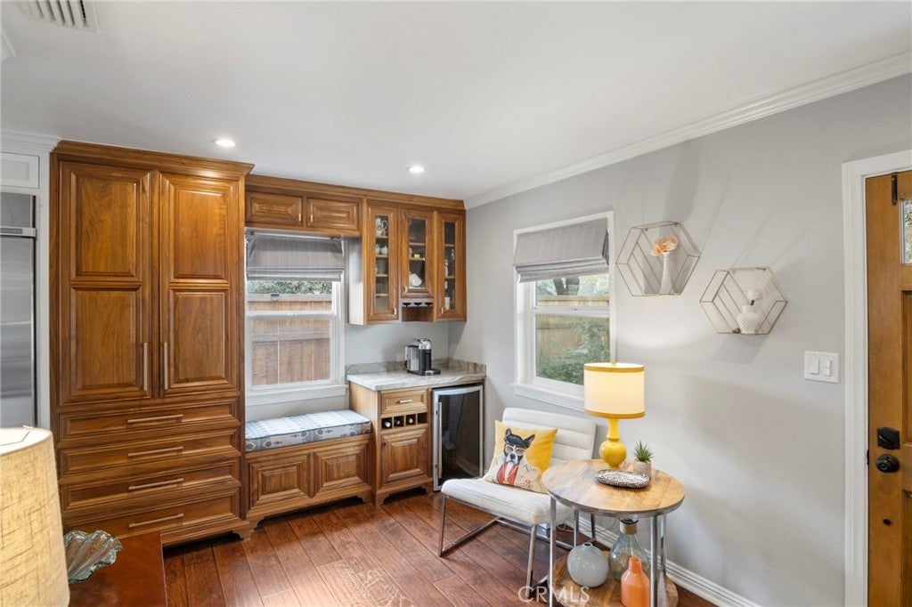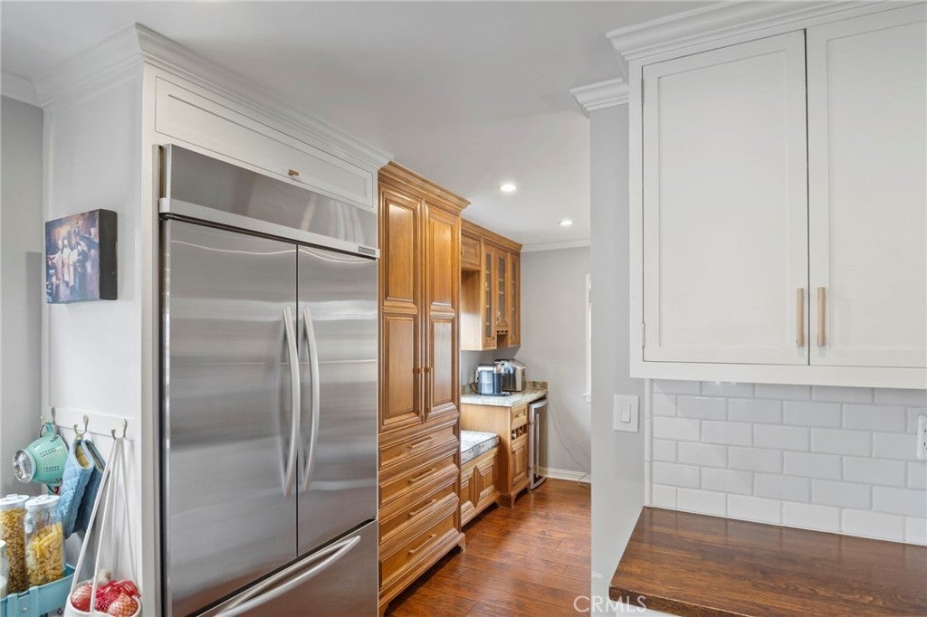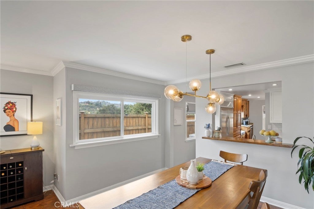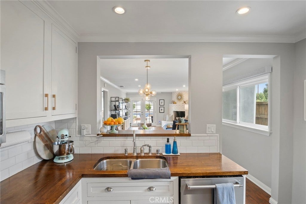 Tucked away at the end of a peaceful cul-de-sac in desirable North Glendora, this beautifully remodeled home offers the perfect blend of comfort, style, and outdoor living. Featuring 3 bedrooms, 2 updated bathrooms, and a sparkling private pool with brand-new vinyl fencing, this property is a true Southern California gem. Step inside to a bright, open floor plan that flows seamlessly into an entertainer’s dream backyard—just in time to enjoy the end of summer and welcome the cozy vibes of fall. The modern kitchen boasts crisp white cabinetry, solid wood butcher block countertops, a classic subway tile backsplash, stainless steel appliances, a wine/beverage mini-fridge, and a versatile dry bar that doubles as a coffee station. Both bathrooms have been thoughtfully remodeled, and new lighting fixtures have been added throughout the home. Enjoy mountain views from your in-ground pool, relax under the retractable awning, or gather around a fire pit on the patio for unforgettable evenings. Additional highlights include laminate wood flooring, crown molding, wainscoting, recessed lighting, a wood/gas-burning fireplace, multiple French doors, and a dedicated laundry room with extra storage. Located in the highly rated Glendora School District and just a short walk from Glendora High School, this move-in-ready home is waiting for its next family to call it home.