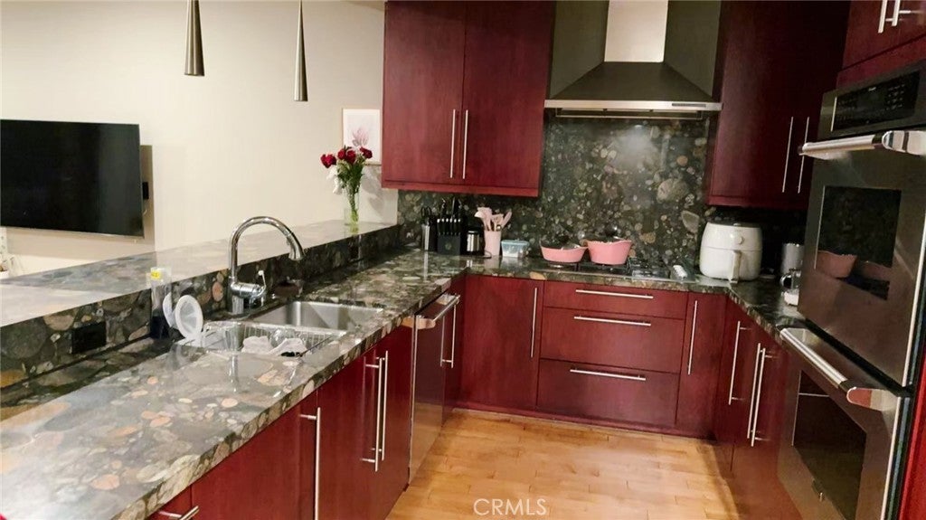 Nestled in the vibrant heart of downtown Los Angeles, this striking three-bedroom, three-bathroom house offers a unique blend of urban living and artistic flair. Step inside and you're immediately greeted by the warmth of rich wooden floors that flow throughout the home, leading you through an open, airy layout. The living room is a sanctuary of style, with spacious proportions and a design that thoughtfully frames the city below. The gourmet kitchen is a perfect example of this style, boasting sleek countertops and modern appliances. The master suite features an en-suite bathroom with double sinks and a large shower and a generously sized closet. But the true showstopper is the breathtaking top-down view of the downtown LA skyline. This unparalleled panorama can be enjoyed from the spacious living room, making it the perfect backdrop for both quiet evenings and lively gatherings. Lease term is at least 1 year.