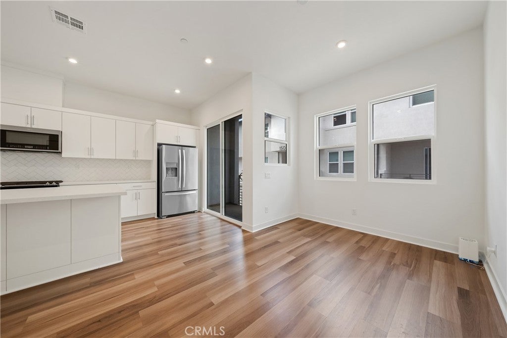 Welcome to this stunning contemporary residence, masterfully crafted by Toll Brothers and nestled within Anaheim’s highly coveted gated community of 100 West. Here, modern sophistication blends seamlessly with resort-style living, offering residents access to a sparkling pool, soothing waterfall spa, lush landscaped greenbelts, a dedicated dog park, BBQ stations, and the security of a gated entrance. The home itself features 4 bedrooms and 3.5 bathrooms, including a convenient first-floor suite ideal for guests, extended family, or a live-in nanny. The second floor embraces an open-concept design with a chef’s kitchen at its heart, highlighted by a grand center island, stainless steel appliances, abundant cabinetry, a large pantry, and ample counter space, all flowing gracefully into a bright, sun-filled living area. The third floor is devoted to the serene primary suite, complete with a spacious walk-in closet and spa-inspired bath with dual mirrored vanities, a glass-enclosed shower, and a rainfall showerhead. The fourth-floor rooftop deck provides a private open-air retreat, perfect for entertaining under the stars or enjoying quiet morning reflections. Fresh interior paint and new carpeting elevate the home’s turnkey appeal, while its prime location just minutes from Disneyland, the Honda Center, Angel Stadium, world-class shopping, dining, top medical centers, and major transportation hubs ensures unmatched convenience. More than a home, this residence is a refined sanctuary where every detail invites comfort, elegance, and a life well lived.