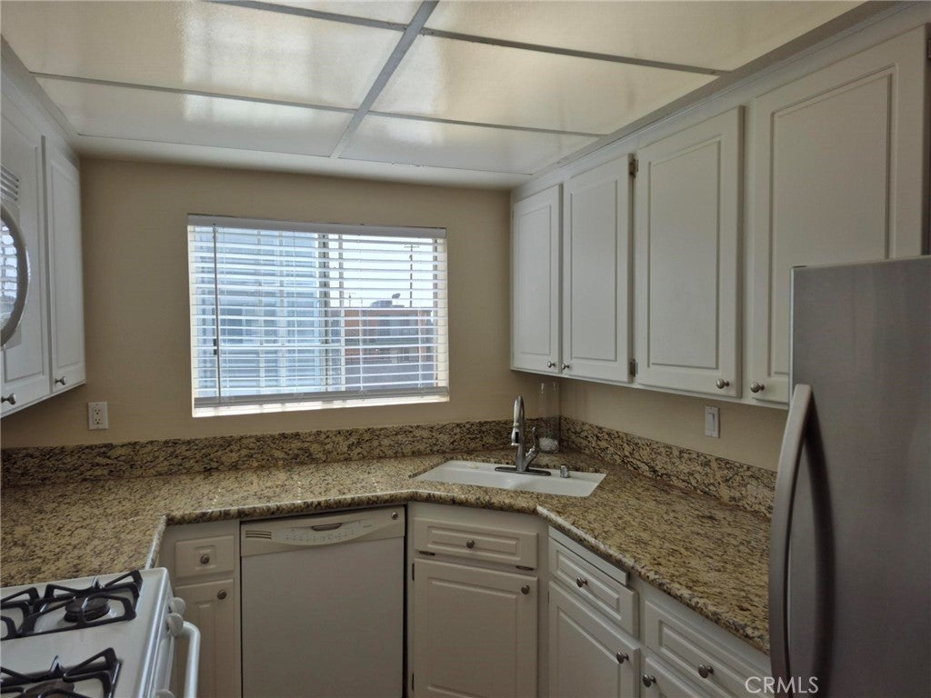 SINGLE STORY BOTTOM FLOOR UNIT w/ NO INTERIOR STEPS... LARGEST UNIT IN QUIET REAR-MOST AREA OF COMPLEX... KITCHEN HAS GRANITE COUNTER TOPS... EITHER BATHROOM CAN BE CONFIGURED AS THE MASTER BATHROOM... LARGE MASTER BEDROOM... HIGH CEILINGS W/ FANS AND CROWN MOLDING... LARGE INTERIOR LAUNDRY ROOM... ATTACHED GARAGE IS DIRECTLY UNDER REAR OF UNIT... LARGE STORAGE ROOM w/ LIGHT INSIDE GARAGE... ANOTHER STORAGE ROOM INSIDE PATIO... PLUS ONE ADDITIONAL ASSIGNED PARKING SPACE... EXTERIORS AND BALCONYS OF COMMUNITY CURRENTLY BEING UPDATED AND PAINTED.