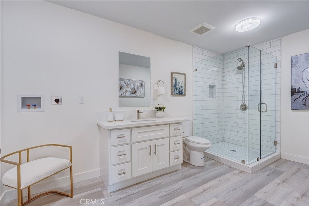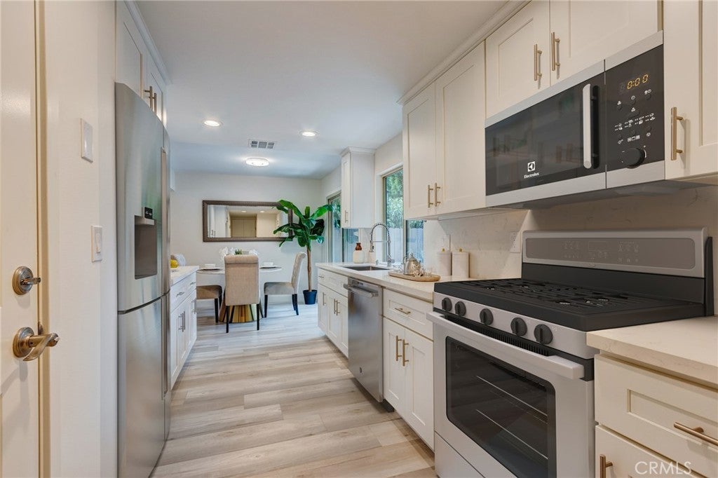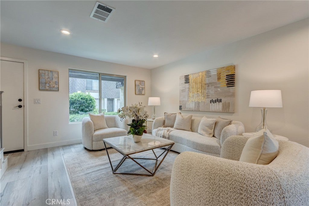 Welcome to your brand new home featuring all new construction from the ground up which has never lived in, nestled in a gated, tranquil neighborhood of only 16 units, offerring peace of mind and modern comforts. The home features: new plumbing, new electrial, new double-paned windows, reinforced walls, new HVAC, new kitchen with white shaker-style cabinets and Carra white quartz countertops, new luxury vinyl plank flooring. Upon entering this beautiful home you'll find a cheerful, welcoming atmosphere with a large living room and dining area which open to a private patio, a secluded oasis for enjoying the fresh air and creating a versatile space for both intimate meals and lively gatherings. Wake up with the warm, natural light that floods both bedrooms each morning. Never worry about parking or inclement weather with a secure 1-car garage with direct access to your home and a covered parking space with additional storage. Step out of your front door into a charming, walkable neighborhood with a variety of delicious dining options, serene parks and shopping, offering a vibrant yet peaceful lifestyle in the heart of Arcadia.