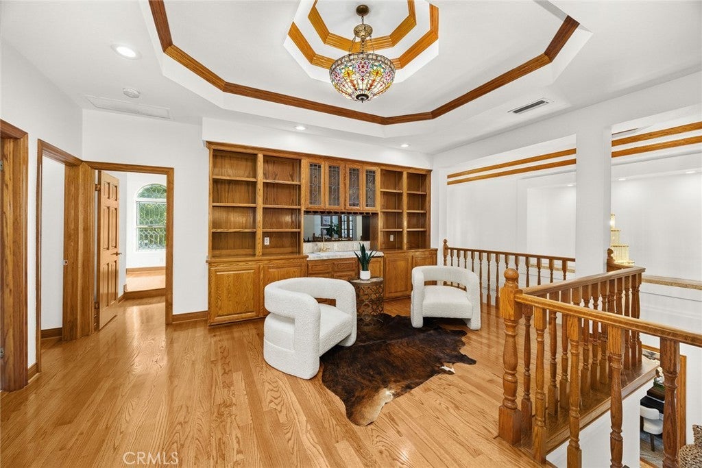 Wet Bar, Built-in Features, Ceiling Fan(s), Crown Molding, Separate/Formal Dining Room, Eat-in Kitchen, High Ceilings, Open Floorplan, Quartz Counters, Recessed Lighting, Bedroom on Main Level, Beamed Ceilings, Brick Walls, Cathedral Ceiling(s), Central Vacuum, Dressing Area, Dry Bar, In-Law Floorplan, Storage, Sunken Living Room, Two Story Ceilings