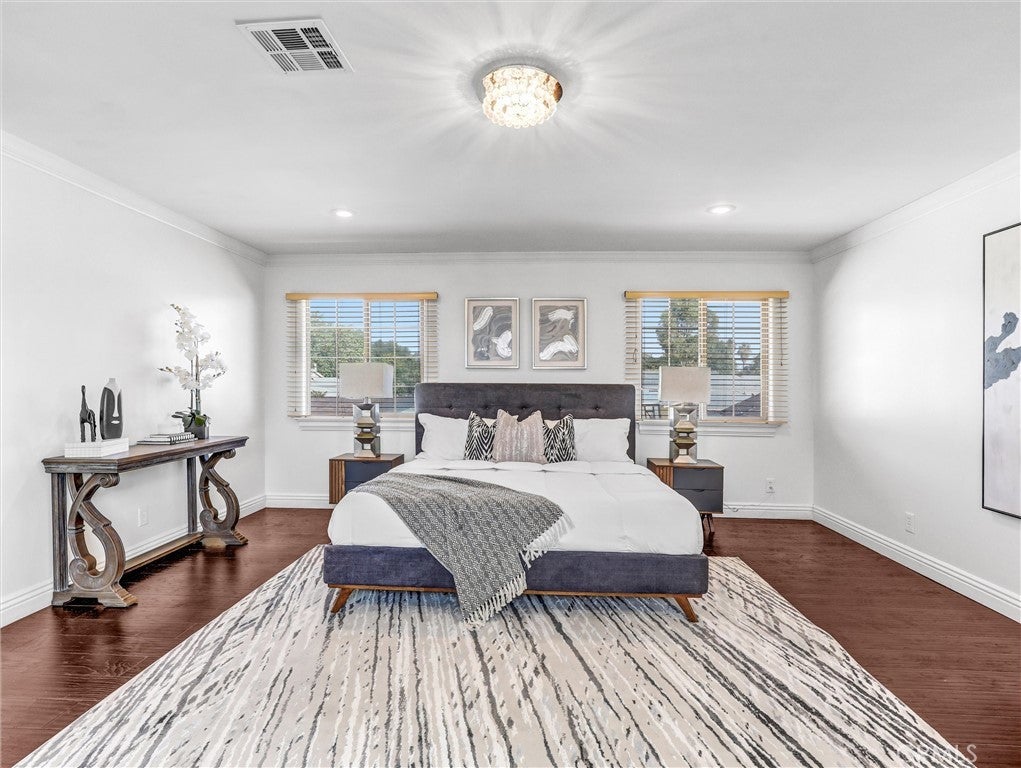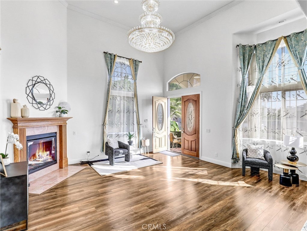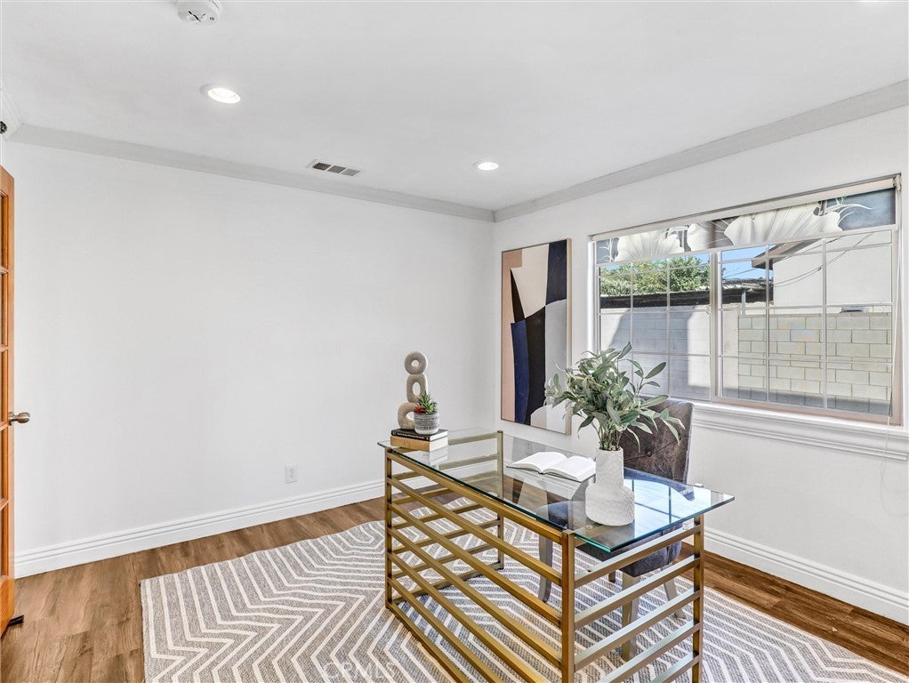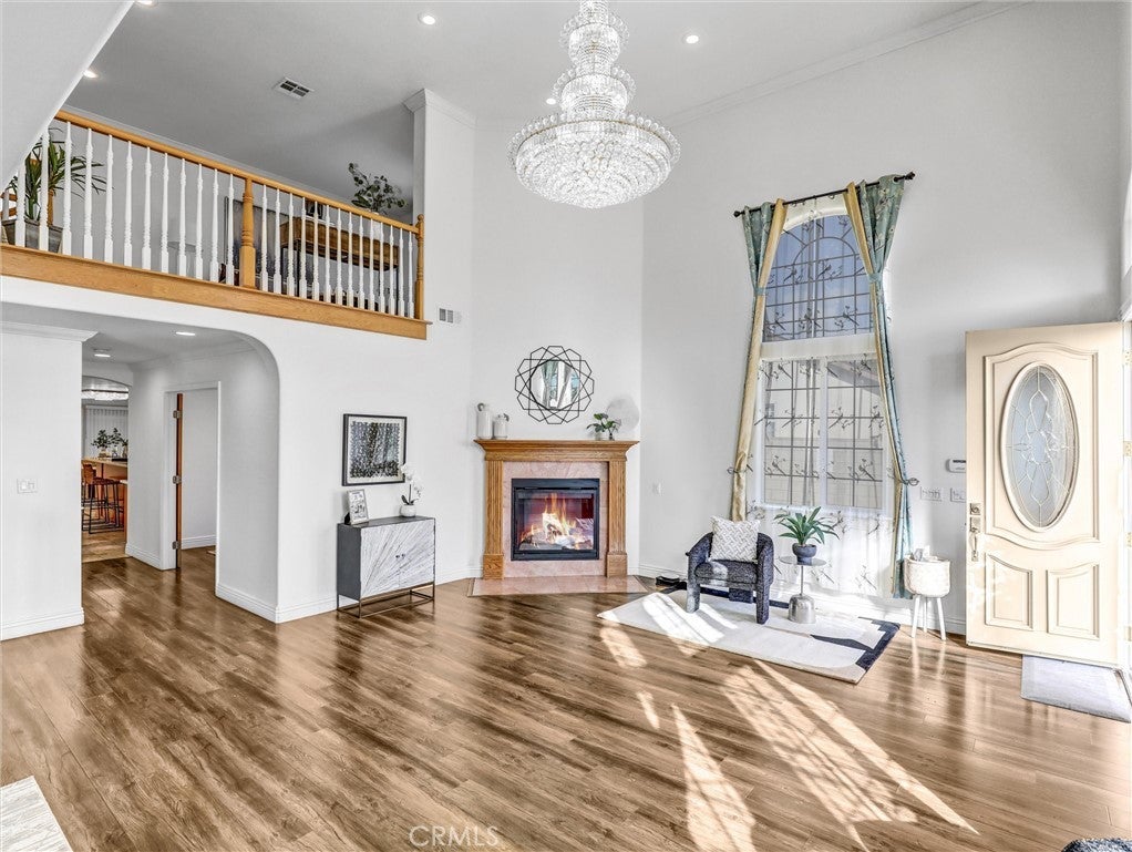 Built in 2013, this beautifully maintained detached PUD offers 4 bedrooms, 4 bathrooms and PAID OFF SOLAR PANELS, plus an office that can easily serve as a 5th bedroom. The modern kitchen features sleek cabinetry, generous counter space, and quality newer appliances. The bright, high-ceiling living room is highlighted by a striking custom 38-bulb LED chandelier with multiple color settings, creating an inviting atmosphere. On the first floor, you’ll find two spacious bedrooms, including a junior suite, along with a versatile office conveniently located next to a full hallway bath—ideal for guests or multi-generational living. Upstairs, a large loft provides a cozy relaxation area, accompanied by two additional suites, including the primary suite. Additional highlights include a 3-car garage, 4 private parking spaces, and dual tankless water heaters and A/C units and Gabrielino High School! This large PUD WITH NO HOA combining modern comfort, efficiency, and an unbeatable location is truly a rare find!
