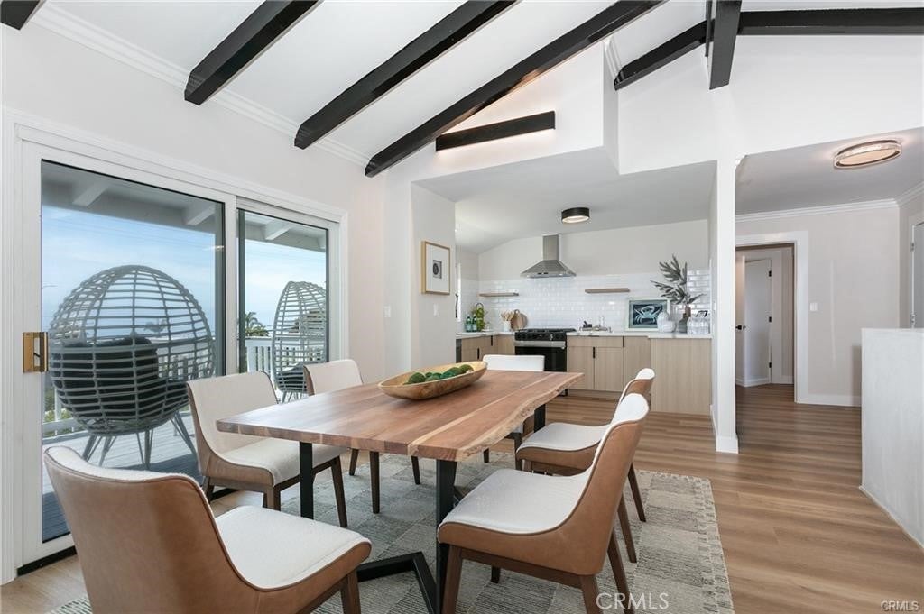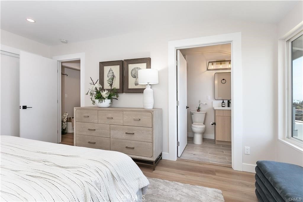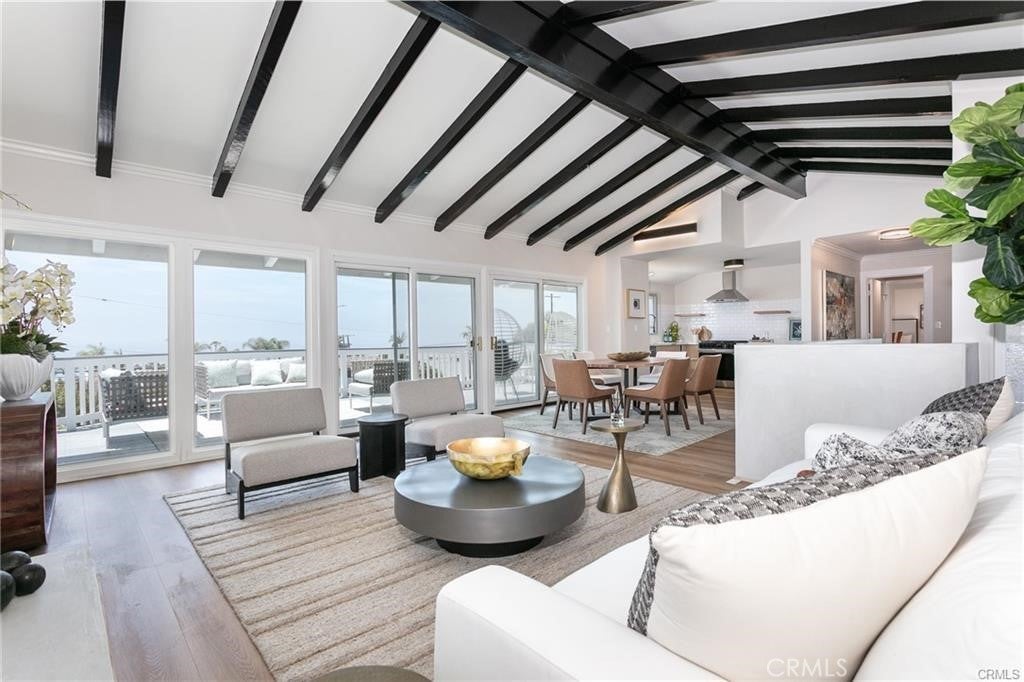 Located in the desirable South Shores neighborhood, this upgraded and remodeled home offers a relaxed coastal lifestyle just minutes from the cliffs of Rancho Palos Verdes, Trump National Golf Club, Cabrillo Beach, and Downtown San Pedro, seafood markets, waterfront dining, and unique local shops. The home welcomes with a landscaped front yard, brick-paved driveway, and an attached two-car garage with EV charging. Recent upgrades include fresh interior and exterior paint, luxury vinyl plank flooring, modern lighting, central A/C, and full copper repipe. The living room features vaulted ceilings with exposed beams, large windows for natural light, and a fireplace. Sliding doors open to a balcony with peek-a-boo ocean views and stunning sunset skies. The upgraded kitchen is equipped with stainless steel appliances (oven, range, dishwasher), quartz countertops, and subway tile backsplash. The dining area flows seamlessly from the living space, ideal for everyday meals or casual entertaining. Each bedroom offers its own upgraded ensuite bath for privacy and convenience. The main-level primary suite is paired with a powder room. The lower level includes two additional bedrooms and a spacious family room—perfect for media, office, or guest use, complete with a second fireplace and backyard access. The private backyard features a new paved patio, fruit trees, white vinyl fencing, and a new wrought iron gate—perfect for dining, lounging, or creating a peaceful garden retreat. No HOA. Also listed as residential sale. MLS#AR25189302.