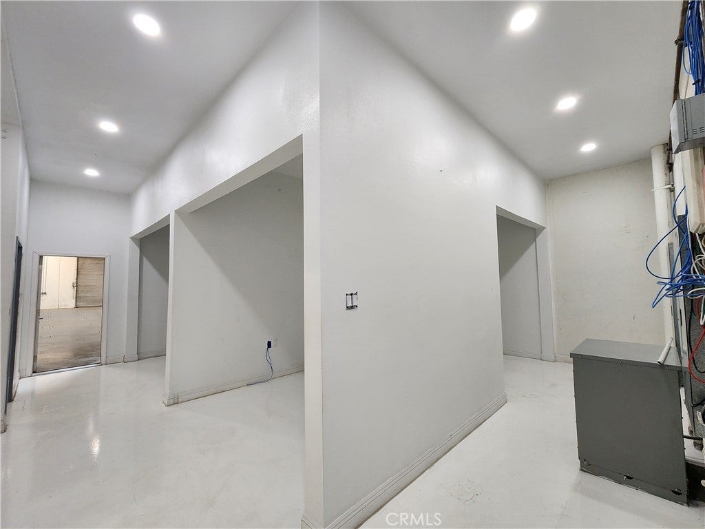 Commercial warehouse with office space. Reception area and 2 office rooms. Additional 3 office spaces, bathroom and kitchen. Mezzanine office space upstairs approximately 900 SqFt. Warehouse 20' clear height. Interior Lowdock, 4'. Two rollup doors, 14'. 6 designated parking spots, 1 handicap spot, plus shared parking.
