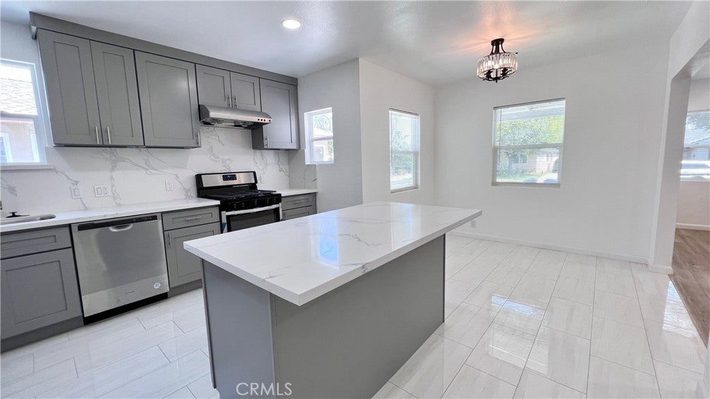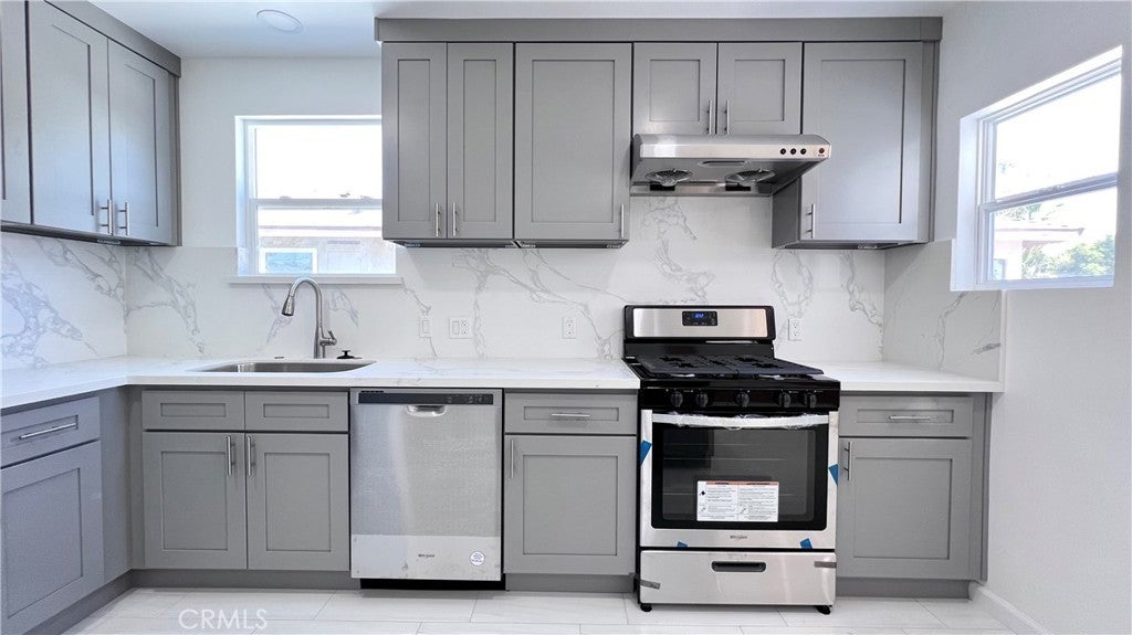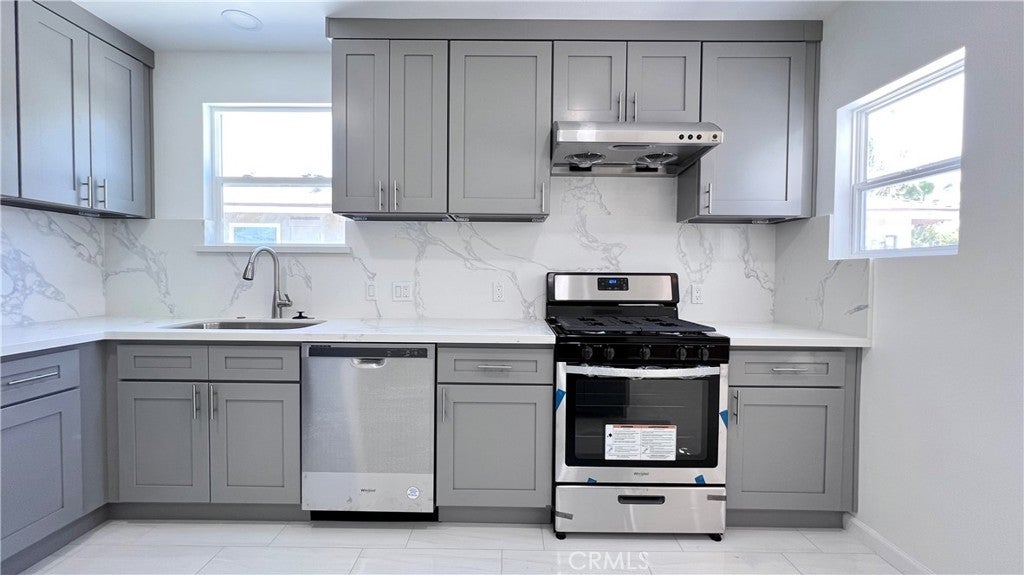 Dishwasher, Gas Oven, Gas Range, Refrigerator, Range Hood, Dryer, Washer