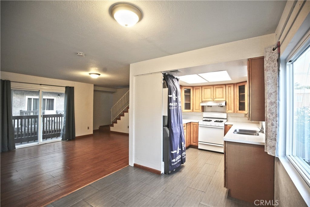 Welcome to this beautifully maintained townhouse located in prime Alhambra. This charming home features an open-concept floor plan with 2 bedrooms and 2 bathrooms and 896 square feet of comfortable living space. The bright and inviting living room opens to a newly refinished balcony through sliding glass doors. The dining area seamlessly connects to the updated kitchen, which showcases elegant quartz countertops and modern cabinetry. The spacious primary suite includes a walk-in closet, an additional closet, and a private en-suite bathroom. The second bedroom is well-sized and conveniently located near the newly remodeled hallway bathroom, featuring a sleek glass-enclosed shower. Additional highlights include fresh interior paint, laminate wood flooring throughout, and dual-pane windows that enhance energy efficiency and comfort. The in-kitchen stackable laundry space adds convenience, while detached two-car garage provides ample parking and storage. Situated in an excellent location, this home is close to Downtown Alhambra, the library, schools, and restaurants with easy access to Downtown Los Angeles and Pasadena. This move-in ready townhouse perfectly combines modern updates, comfort, and convenience in one of the Alhambra neighborhood.