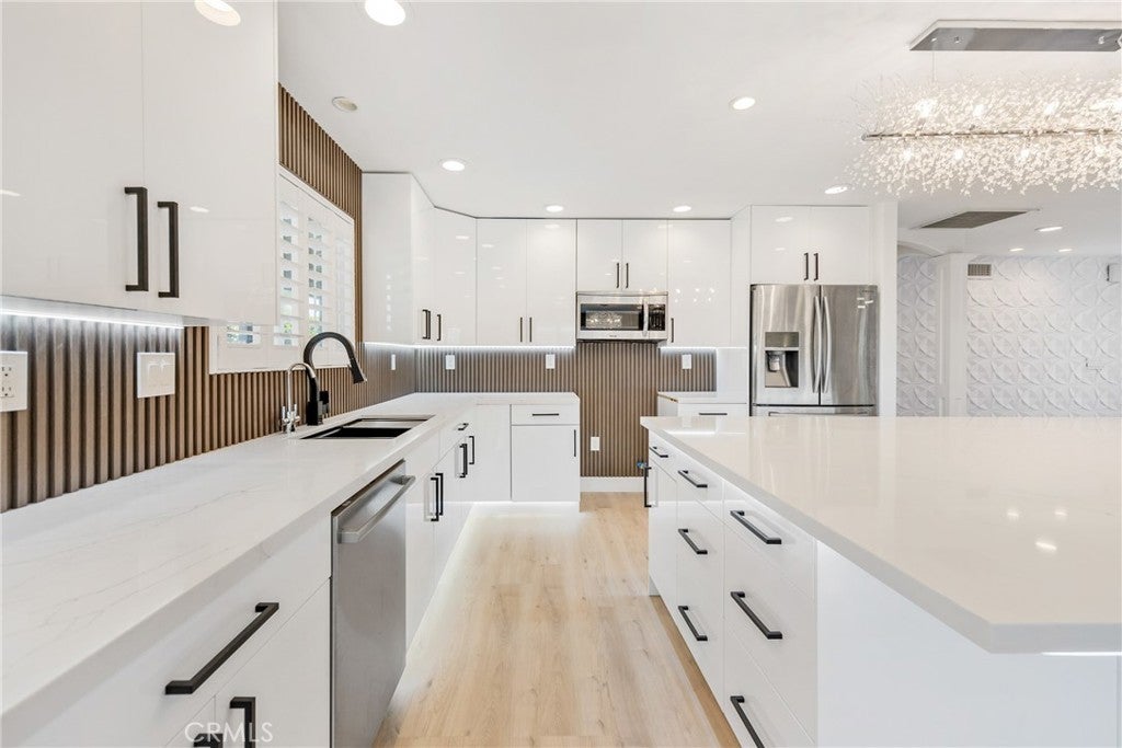 Welcome to 1459 W James Way, a meticulously remodeled Anaheim residence offering an array of modern amenities and luxurious upgrades throughout. This stunning home has been completely redone, presenting the perfect blend of style, comfort, and functionality. This home combines luxury living with thoughtful design and practical amenities and features 5 bedrooms and 4 bathrooms within 3,080 sqft of living space on a 10,035 sqft lot. Upgrades include: vinyl laminate waterproof floors throughout, remodeled kitchen with quartz countertops, high gloss European cabinets, reverse osmosis drinking water system with instant hot water faucet, full surrounding security system with DVR, dual water heaters, dual ac units, Dual Nest Wifi Thermostats, wi-fi garage door opener, 3-car garage and RV parking, whole house carbon water softener system, remodeled bathrooms with floating vanities, new toilets, and sensor LED lights on the stairs. Additional upgrades include new chandeliers and wall paneling adding elegance and modern flair. Entertain effortlessly with the heated swimming pool, surrounded by a security fence for safety. Located in a desirable Anaheim neighborhood just minutes away from Disneyland, Anaheim Packing district, shopping centers and 5 minutes to top ranked Fairmont Prep Academy. Don't miss the opportunity to make this exceptional property your new home. **Tenant pays all utilities. Pets welcome with some restrictions and additional deposit**