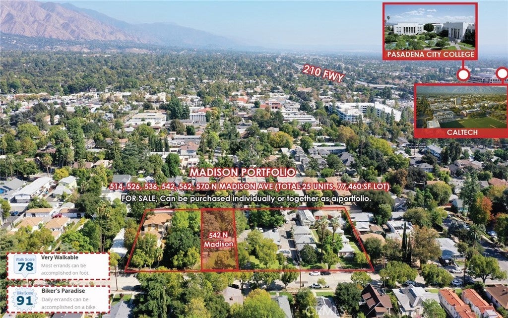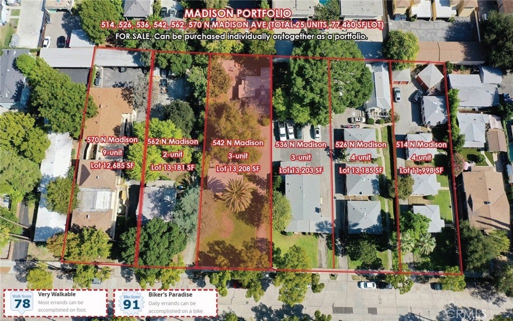 3 Houses on a large Lot - several blocks north of Old Town Pasadena, Large ±13k SF Lot, highly desirable layout, Easy to Rent and Manage. Three HouseS on a lot in the City of Pasadena. Situated only several blocks north of Old Town Pasadena, 2 blocks west of Los Robles Ave, and just within walking distance of many dining, shopping, and other attractions in Pasadena. It is situated on a quiet residential street surrounded by single family houses. This property is being sold together with 5 adjacent buildings to its north and south that are own by same seller – can be purchased together or individually (514 N Madison, 526 N Madison, 536 N Madison, 562 N Madison, and 570 N Madison). The property is extremely rare with highly desirable layout providing tenants with single family residential feel. The middle house (#542) is the largest one with 2bedroom+2bathroom, the front house (#548) is a 2bedroom+1bathroom, and the back house (#544) is 1bedroom+1bathroom. This offering is perfect for an owner user that can occupy any one of the 3 houses (currently tenant occupied – seller is selling it as-is with tenant in place). The middle house is charming with original hardwood flooring, smooth ceiling, built-in cabinets, ceiling fans in bedroom and living room. The back house has been updated with modern flooring, new kitchen and stainless steel appliances, and new bathroom. The property has 13,208 SF lot size providing plenty of open spaces and parking (est. 6 parking spaces or more). Because of this configuration, there is a clear and huge upside for new owners to add 2 or more ADUs (buyer to verify). Parking is provided via 6 open space spread out on the lot. Each unit has individual water heaters and separately metered for electricity and gas. Each unit has its own laundry hookups.