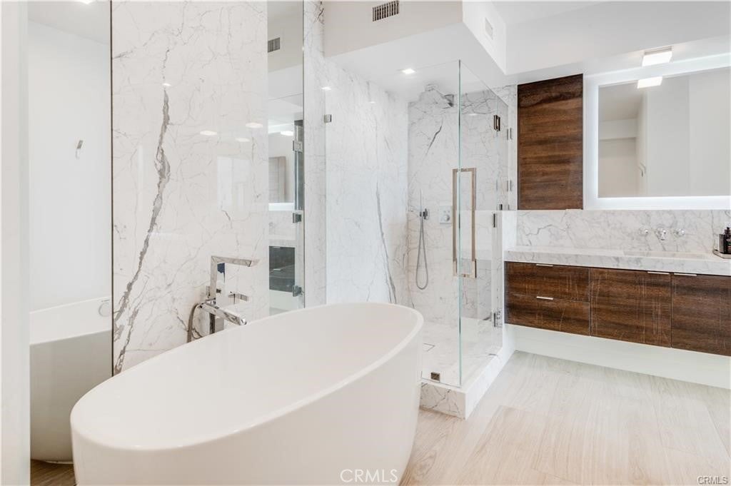 Lavishly Luxurious Condo with Breathtaking Ocean Views! Idyllically situated in a three-unit building, this 3BR/2BA, 1,950sqft first-row residence offers a feast for the senses with gorgeous contemporary architecture and lush tropical landscaping. Recently built in 2017 and thoughtfully designed by renowned designer, Kimberly Colletti, the interior captures the essence of chic modern living with an open concept floorplan, oversized windows, premium finishes, beautiful wood flooring, recessed lighting, and an expansive great room with a custom fireplace. Equipped to satisfy even the most discerning, the open concept gourmet kitchen features top-of-the-line stainless-steel appliances (Wolf and Sub-Zero), cabinetry, a breakfast bar, a wine cellar/wet bar, and a glamorous dining area with a chandelier. Explore further to discover an oversized primary bedroom with ample closet space and an ultra-luxe en suite boasting a standalone soaking tub, a glass enclosed shower, and a dual sink vanity. Two additional bedrooms are generously sized, while both guest bathrooms impress with lavish style and superior function. Unsurpassed entertaining possibilities abound in the fully enclosed backyard, which has a built-in BBQ and a lovely conversation area. Savor the glorious sunset views over the Pacific on your sprawling oceanfront deck. Other features: attached 2-car garage, laundry area, security system, SMART home technology, close to trendy dining and shops, and more! Call now for a tour!