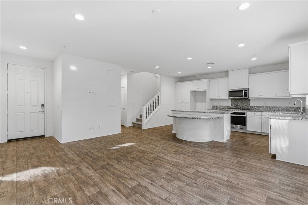 Located in the desirable Encore at Providence gated community in North Fontana, this beautifully maintained home offers 3 bedrooms, 2.5 baths, and 1,642 sq ft of comfortable living space. The spacious living room flows seamlessly into the kitchen, where a center island, stainless steel appliances, granite countertops, and a generous breakfast nook create an open, connected space ideal for everyday living and family gatherings. Bright and inviting with large windows throughout, the home also includes recessed lighting, an individual upstairs laundry room, and a generous primary suite with a walk-in closet. The second floor offers a versatile loft area that can serve as an additional living space or a work-from-home office. Additional highlights include a tankless water heater, a leased solar system for energy efficiency, and a private backyard with a perfect for relaxing or entertaining. This gated community features two neighborhood parks and play ground provides convenient access to the Sierra Lakes Shopping Corridor, Costco, Victoria Gardens, Ontario Mills, golf courses, and schools.