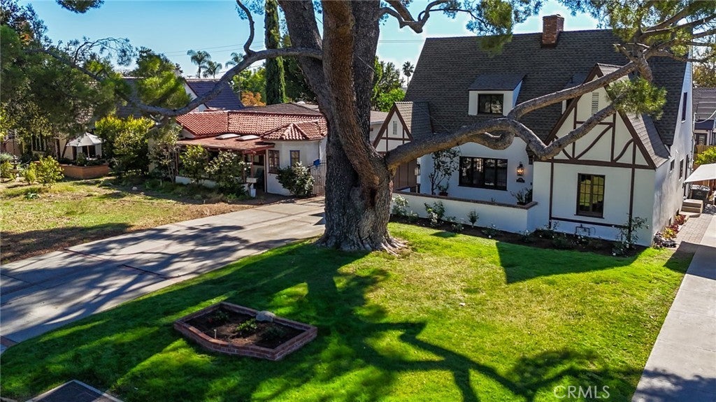 Welcome to 1578 Morada Place, a soulful and timeless 1928 storybook English Tudor that exquisitely blends historic pedigree with today's luxuries. Located on a classic NE Altadena tree lined street surrounded by architecturally beautiful homes and estates awaits this joyful forever home ready for its next chapter. Updated systems, thoughtful finishes, warm wood flooring and pristine craftsmanship! With four well appointed bedrooms, three baths and a spacious finished basement (that doubles as a moody lounge area, office or wine tasting room) the layout flows effortlessly while still maintaining the gorgeous architectural character and built-ins that have been thoughtfully restored to pay tribute to its original era. The spacious, sun-filled living room is anchored by built-in window seating, custom bookshelves, a stucco fireplace, and dramatic wood beam ceilings. From here, French doors open to a large covered porch overlooking the expansive backyard—perfect for a magical outdoor dining experience and endless family memories! The formal dining room, accessed through restored French doors is both classic and elegant. The chef’s kitchen is an absolute dream overlooking the lush backyard and featuring a custom built oval shaped island, high-end appliances, floating shelving and designer lighting. Two bedrooms and a full bath with romantic finishes complete the main level, while upstairs you'll find two more spacious bedrooms and bathrooms. The upstairs guest bedroom boasts charming built-ins and a classic window bench overlooking the yard below. The primary suite is a true retreat with its own fireplace, built-in shelving, walk-in closet, and a dreamy spa-like ensuite bath with a generous soaking tub and separate glass shower. Rich in architectural history, lovingly restored and located in a picturesque neighborhood backed by the majestic San Gabriel Mountains, this rare Altadena beauty is quite a special find.