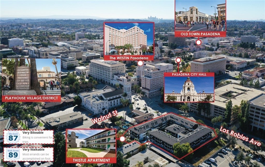 Turnkey, Design Centric Mid-Century Modern 93-unit Apartment in Playhouse Village. Class A Location, Completely Renovated, almost brand-new MEP. All Units fully upgraded, Overparked w/ 173 parking, RUBS in Place. Below replacement cost for an Asset of this quality and location. THE THISTLE – 262 N Los Robles Ave, a Design Centric 93-unit Mid Century modern luxury apartment investment opportunity located in the highly desirable City of Pasadena, CA. The property is located within Pasadena Village District, an eclectic cosmopolitan community rich in history and architecture. Because of this superb location, it has a Walk Score 89 out of 100, demonstrating “walker’s paradise” location to a variety of nearby amenities such as restaurants, shops, health clubs and entertainment venues. The property has been completely upgraded from top to bottom between 2018-2020 and provides a turn-key investment offering. It has a superb location south of FWY 210, across the street from Kaiser Permanente Pasadena, and several lots away from The Westin Pasadena. Tenants enjoy walking distance to Paseo Colorado, Pasadena City Hall & Library, Old Town Pasadena, and almost all amenities City of Pasadena has to offer. The property is a three-story garden style apartment community with an expansive center courtyard on two levels of subterranean parking. The community offers excellent amenities such as Leasing Office, On-site manager, fitness center, BBQ/picnic area, fire pit, controlled access, security cameras, courtyard, dog wash, subterranean parking, secured bike storage, storage units, secured package room with parcel pending lockers, complete convenient towel service, boutique catering kitchen appliances, elevator, and laundry room. The current ownership have completely upgraded the community from top to bottom in 2018-2019 and replaced all the systems which includes: new roof, new mechanical system, new electrical, new plumbing & sewer system, new elevator, new landscaping, new security camera system, new parking gate, new entry system, and others (buyer to verify during inspection), making this property a truly turnkey investment. The property offers an attractive unit mix with seven (7) 2 bedroom+1 bathroom, fifty-five (55) large 1 bedroom+1 bathroom, seven (7) 1 bedroom+1 bathroom, sixteen (16) studio, and eight (8) small studio/micro units. All the units have been completely upgraded with tastefully design upgrades.