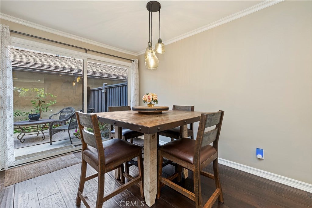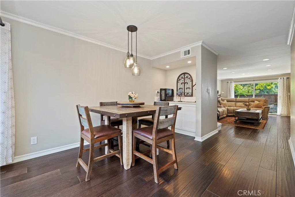 Nestled in the heart of Sierra Madre — “The Village of the Foothills” — this beautifully updated 1,650 square-foot townhome offers a peaceful setting and effortless move-in appeal. Step through elegant double doors into a welcoming living room featuring engineered hardwood floors, crown molding, recessed lighting, and a cozy fireplace — perfect for relaxing or entertaining. The light and bright kitchen boasts crisp white cabinets, quartz countertops, and sleek stainless steel appliances, thoughtfully designed to meet the needs of today’s homeowner. Adjacent to the kitchen is the dining area, complete with a dry bar and additional storage. Both the kitchen and dining area open onto the rear private patio via a sliding glass door and a separate French door, offering seamless indoor/outdoor flow for entertaining or dining al fresco. Beyond the rear patio is the finished two-car garage with epoxy flooring. Downstairs, you'll also find an updated powder room and dual coat closets. Upstairs are two spacious bedrooms, each with its own renovated ensuite bath, newer carpeting, generously sized closets, and plantation shutters for added charm and privacy. The expansive primary suite includes a versatile flex space ideal for a home office or fitness area, as well as a private balcony with tranquil skyline and treetop views. Separating the two suites is the convenient upstairs laundry and built-in storage, completing the home's functionality. Located just moments from Sierra Madre’s beloved shops, cafes, parks, and hiking trails, this exceptional townhome blends comfort, style, and location — a truly special place to call home that is not to be missed!