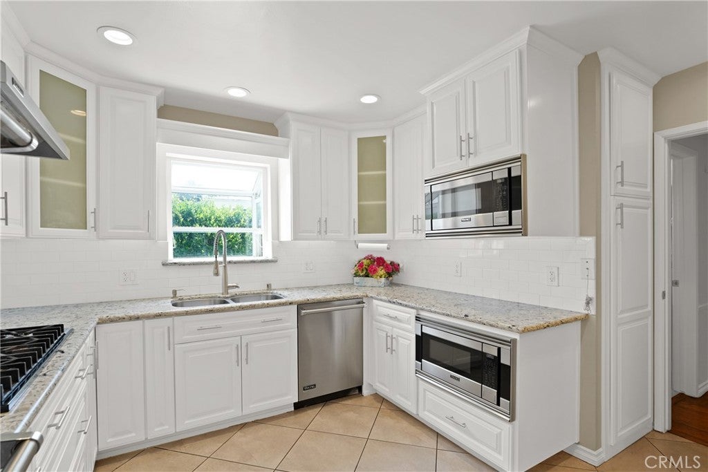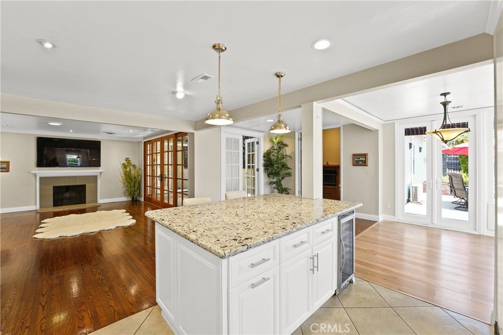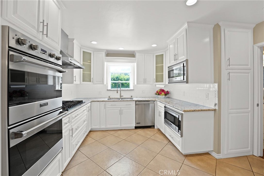 Turnkey North Monrovia charmer featuring an open floor plan and beautiful hardwood floors throughout. The inviting living room with fireplace, enclosed sunroom ideal as an office or optional fifth bedroom, and dining area flow into a remodeled chef’s kitchen with high-end Viking appliances—including a six-burner range, double ovens, two microwaves, and a wine cooler. The home offers three spacious bedrooms plus a large master suite with walk-in closet, second fireplace, and a newly renovated ocean-inspired bath. French doors open to a peaceful garden patio with gas fire pit. A three-car garage provides both double and single spaces separated by a full wall, with the single bay offering flexible use options. Attached bonus guesthouse includes a private entrance, kitchen, bedroom, and bath, with optional garage access. Additional highlights include a high-tech security system with video surveillance, backup electricity generator, and beautifully landscaped yards with sprinkler and drip systems. Conveniently located near shops, restaurants, schools, and freeway access.