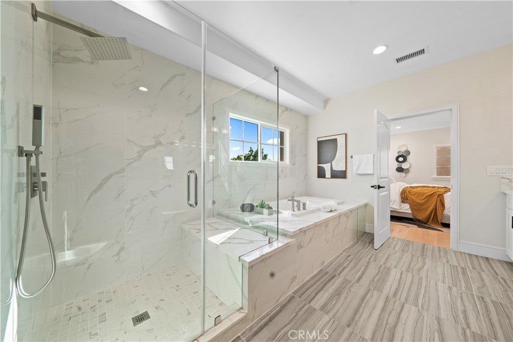 Two new luxury homes on one lot | Ideal for multi gen living or additional income in San Gabriel. Welcome to this brand new 2025 construction, a beautifully designed two story gated home on a corner lot in the heart of San Gabriel. Built with high end finishes and modern comfort in mind, this property features a 4 bed, 4.5 bath 2686 sq.ft in the main house with a 2 car garage. All four bedrooms include their own ensuite bathrooms, complemented by recessed lighting throughout. The interior showcases elegant washed color hardwood flooring, creamy wall paint, and detailed moulding for a warm, timeless look. The gourmet kitchen includes Thermador appliances, quartz countertops, a waterfall island, and abundant shaker cabinetry, opening into a spacious social zone separate from the main living room, perfect for gatherings and everyday family life. Upstairs, the primary suite offers a walk in closet, dual sinks, a jetted tub, a frameless shower, and a bonus loft with balcony. The property also includes a 1,200 sq ft two level ADU with 3 bedrooms, 3 bathrooms, a private 1 car garage, separate driveway, and its own address, ideal for extended family or generating rental income. Both homes feature private gated driveways, separate entrances, owned solar panels, individual utility meters, EV chargers, tankless water heaters, security cameras, and fire sprinklers. Located within the Temple City Unified School District, close to popular restaurants, markets, and daily conveniences, a rare opportunity to own two new luxury homes with privacy, flexibility, and income potential in one of San Gabriel’s most sought after neighborhoods.