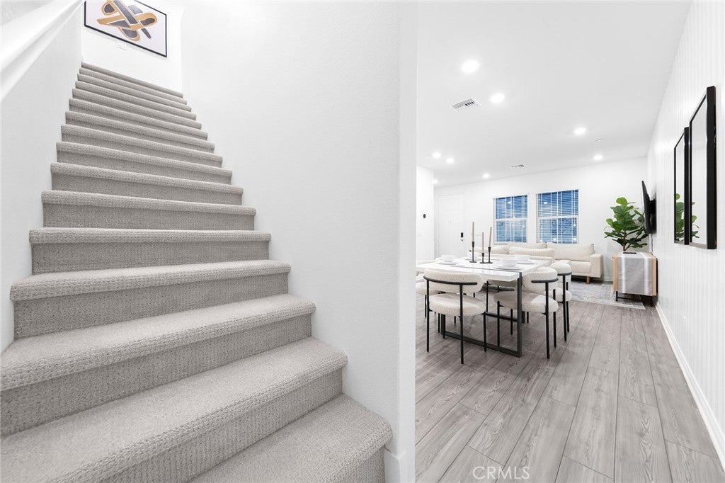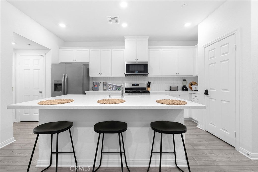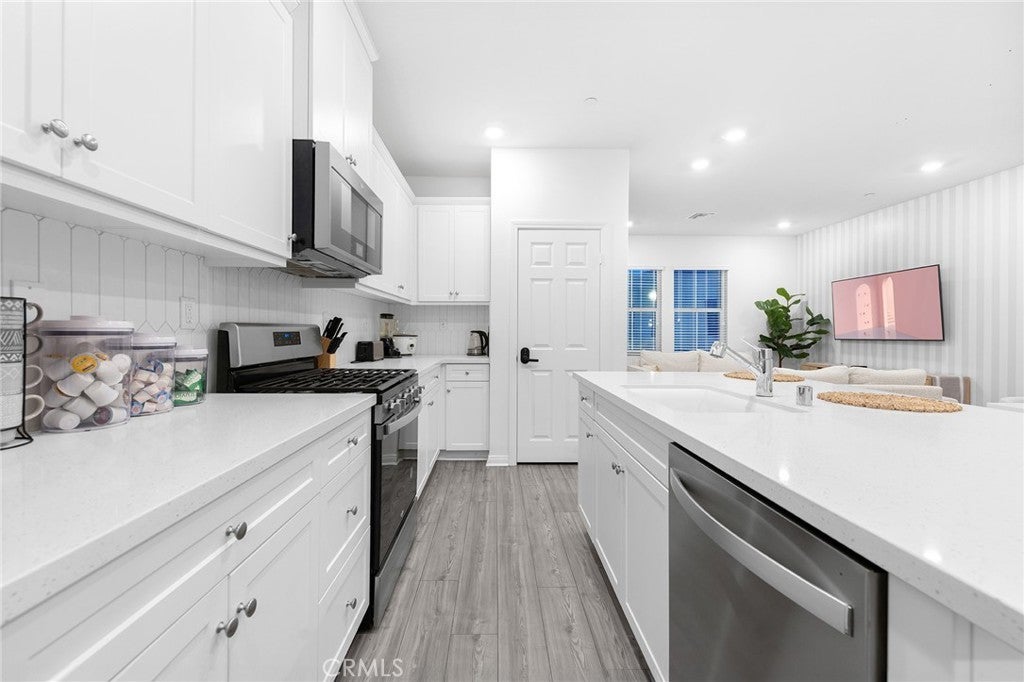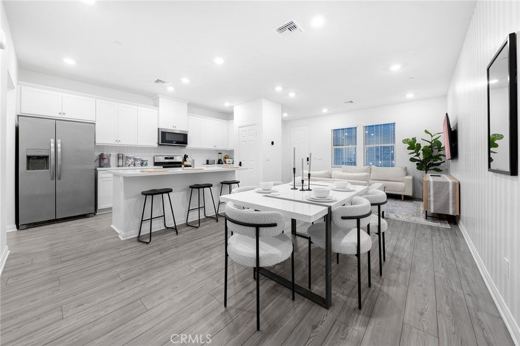 This condo has driveway and a small front patio and it is gas stove! ALL Frunitures included in the sale! This home is a two-story, 1,555 sq ft townhouse/condo built in 2023 in the Moonstone community. It offers 3 bedrooms and 2.5 bathrooms — a layout with all bedrooms upstairs. On the main floor, an open-concept living area and kitchen benefit from extra side windows that bring in abundant natural light. The kitchen has white shaker-style cabinets, quartz countertops, a central island with stainless-steel sink, and stainless-steel appliances including a gas stove, dishwasher, and vented microwave.Upstairs, the primary suite features a walk-in closet and a spa-style en-suite bathroom with dual sinks and a walk-in shower. The two other bedrooms are across the hall, plus there’s a full bathroom and a laundry room on the upper level. As part of the community, residents may enjoy upcoming amenities including parks, a dog park, pickleball courts, and a resort-style pool and spa.