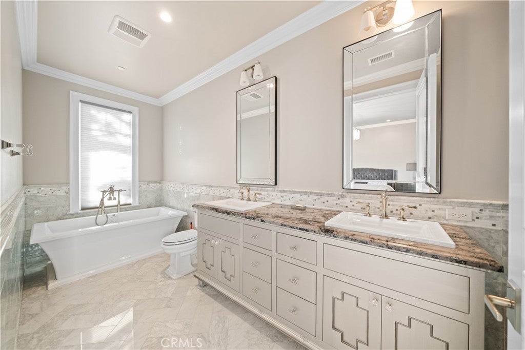 Welcome to this exquisite luxury residence located in Arcadia’s prestigious Highland Oaks neighborhood. Designed by renowned architect Robert Tong and constructed by Bowden Development Inc. this stunning two-story estate exemplifies timeless elegance and exceptional craftsmanship. The home features 4 full-suite bedrooms and 4.5 bathrooms, all uniquely designed for comfort and luxury. Each additional bedroom is enhanced with its own en-suite bathroom, with the primary suite boasting its own wet bar and private lounge. While this estate was thoughtfully constructed for privacy and convenience, it also offers grandness and elegance. The expansive open-concept living areas flow seamlessly across the main level, creating a welcoming environment for gatherings of all sizes. The chef-inspired kitchen, complete with a separate wok kitchen, is designed with high-end finishes and appliances to meet the needs of culinary enthusiasts and entertainers alike. The home is equipped with an advanced iPad-integrated automation system, providing intuitive control over all major functions of this remarkable estate. The outdoor living area is equally impressive, offering a custom grilling station, built-in media center, and covered patio designed for year-round enjoyment. Nestled along a serene tree-lined at the foothills of the San Gabriel Mountains, this property provides an exceptional blend of natural beauty and designed for modern living. Located within the award-winning Highland Oaks school district and the natural beauty of one of Arcadia's most sought-after communities. This Arcadia residence represents a rare opportunity to experience luxury living in an area known for its tranquility, prominent district, and enduring appeal.
