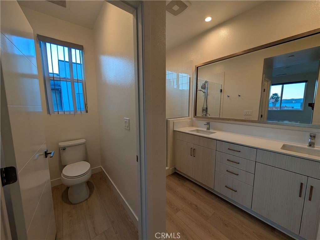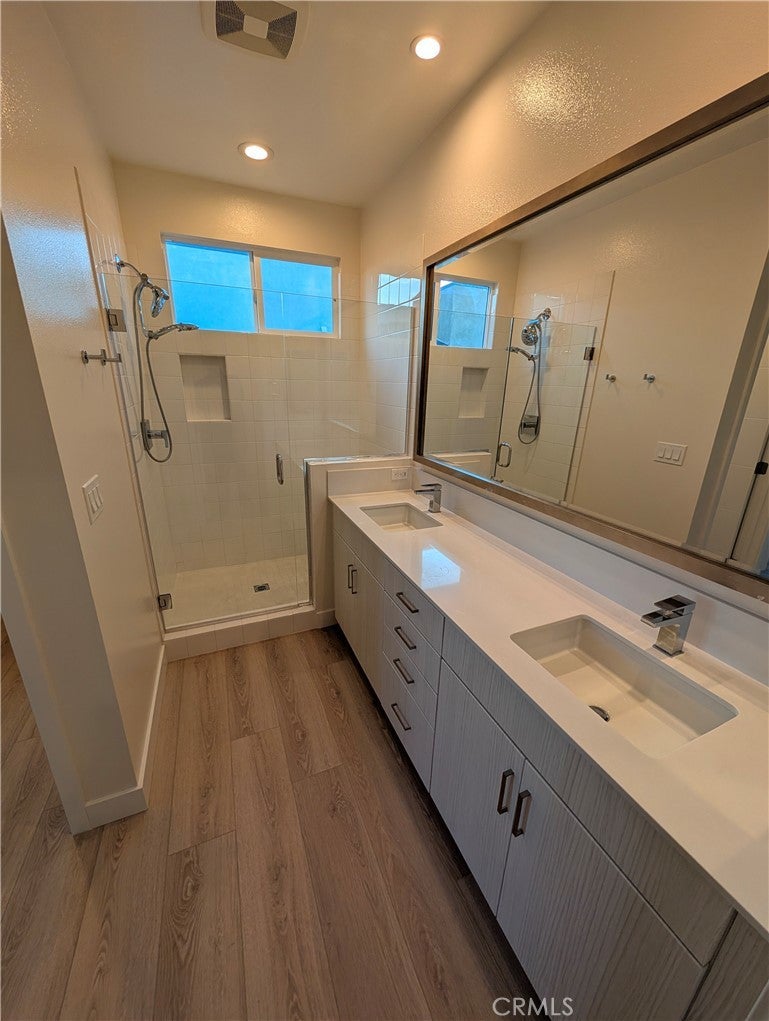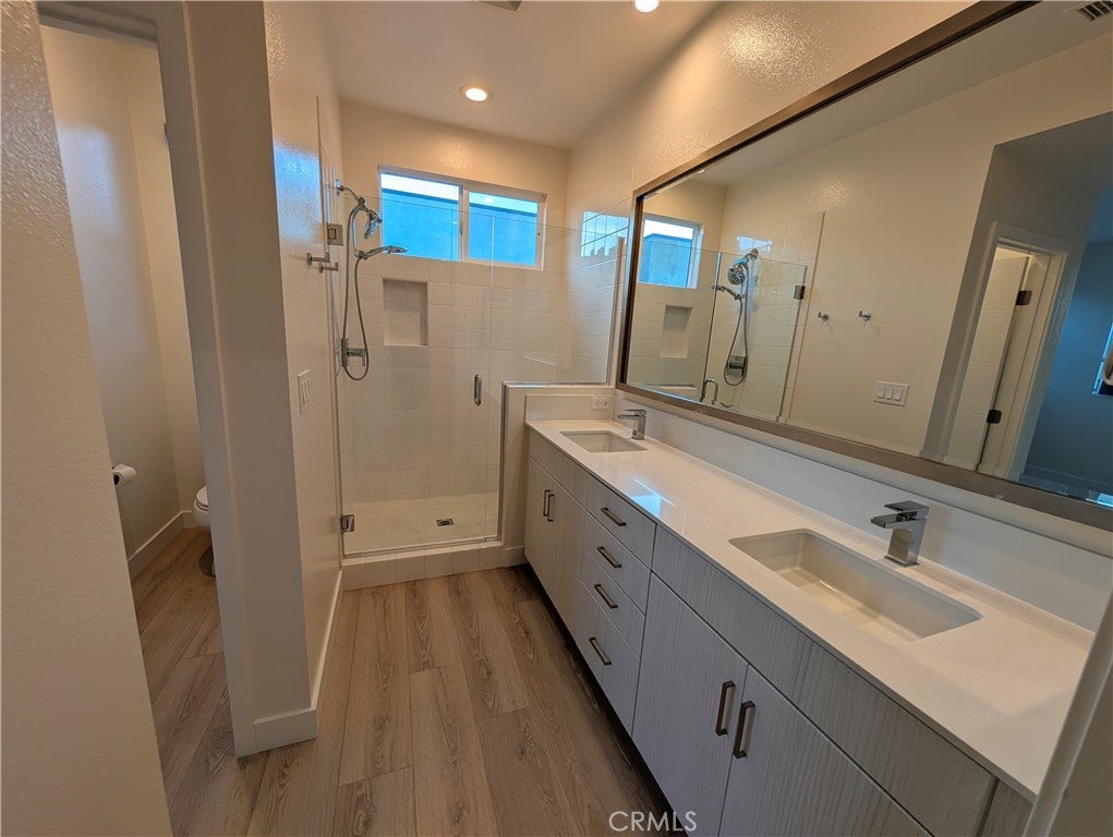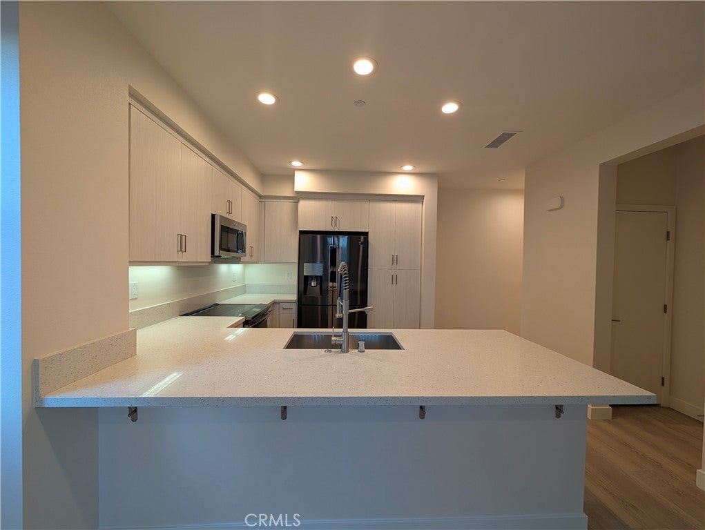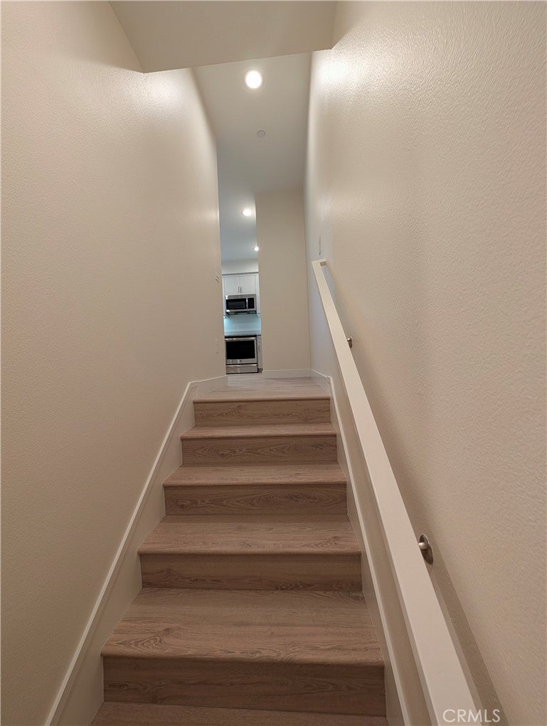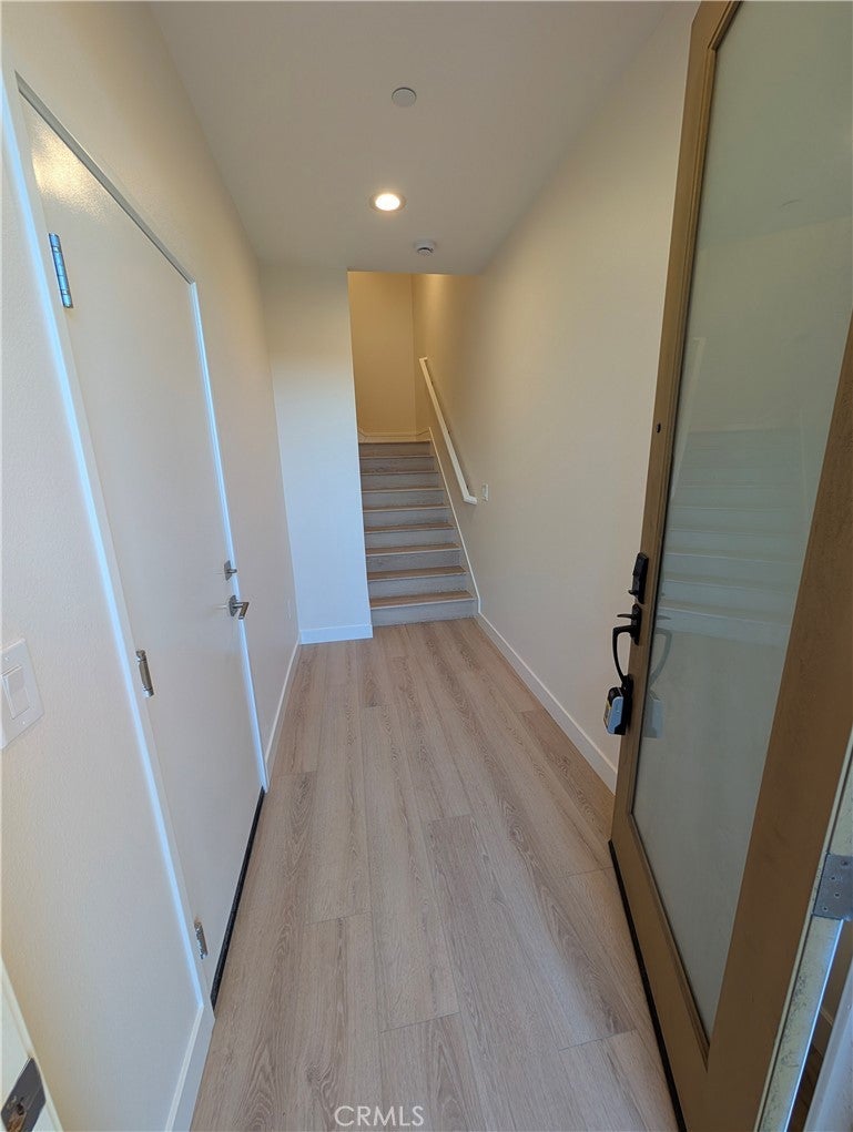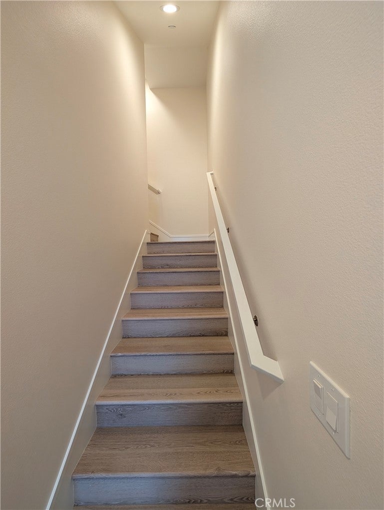 Modern and stylish, this tri-level El Monte townhome—built in 2018 and located in the heart of the San Gabriel Valley—offers a perfect blend of comfort, efficiency, and convenience for renters seeking a sophisticated lifestyle. The first level features a welcoming entry and direct access to a finished two-car garage with extra storage, a trash-bin cutout, and a NEMA 14-50 outlet for fast EV charging. On the second level, an open-concept living space showcases a beautiful kitchen with quartz countertops, a full suite of stainless-steel appliances, and a large counter with a breakfast bar that flows seamlessly into the dining area and living room; a covered balcony off the dining space provides a relaxing spot to unwind at sunset, and a half bath and coat closet complete this level. A final set of stairs leads to the third floor, where a generous laundry closet with a stackable washer and dryer accompanies two well-appointed bedrooms, including a primary suite with a walk-in closet, dual sinks, a private toilet room, and a large tiled shower with a built-in bench. The secondary bedroom sits across from a full hallway bath with a tub and shower. Additional features include dual-zone comfort with Nest thermostats on levels two and three, as well as paid-off solar panels that help reduce electricity costs. The community also offers inviting shared amenities, including a BBQ area, a dog park, and an on-site play gym for young children. Minutes from schools, shopping, dining, and with convenient access to downtown LA, this exceptional townhome delivers modern living in one of El Monte’s most vibrant communities.