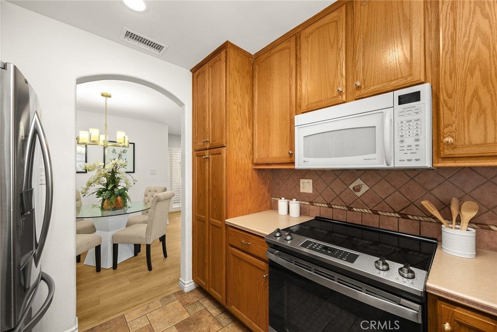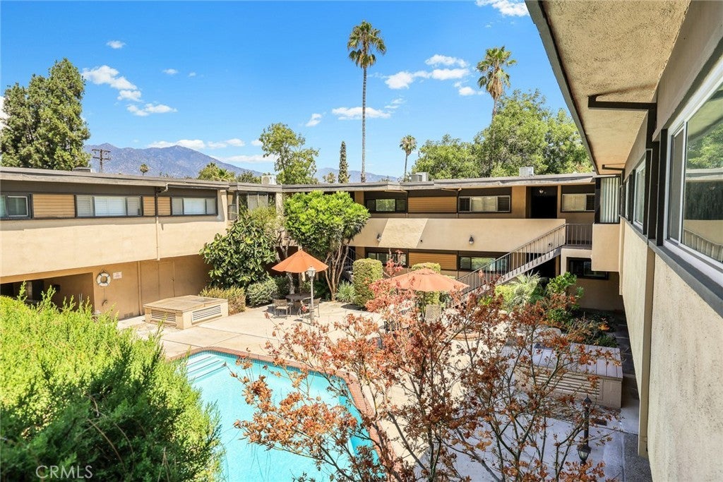 Welcome to Villa Fleurie—A quiet gated community offering comfort, convenience, and stunning views. This beautifully updated top-floor 2 bedrooms, 1.75 bathroom condo has no neighbors above or below, it features a spacious living room with sliding glass doors, plantation shutters, recessed lighting, and a private north-facing balcony overlooking the San Gabriel Mountains, pool, and spa. The remodeled kitchen boasts Corian countertops and deluxe appliances, flowing seamlessly into the formal dining area. The generous primary suite includes mirrored closets and an updated bath, while the guest bedroom offers built-in storage. Recent upgrades include fresh paint, new flooring, lighting, oven, garage door opener, and water heater. Additional highlights: central A/C and heat, in-unit laundry, all appliances included, and two parking spaces (garage + carport with storage) conveniently below. HOA ($428 per month) covers insurance, water, trash, pool/spa, landscaping, pest control, and common-area upkeep. Close to award-winning Arcadia schools, Santa Anita Mall, Racetrack, Arboretum, golf courses, shopping, dining, and parks—this is truly a serene sanctuary in a prime location!
